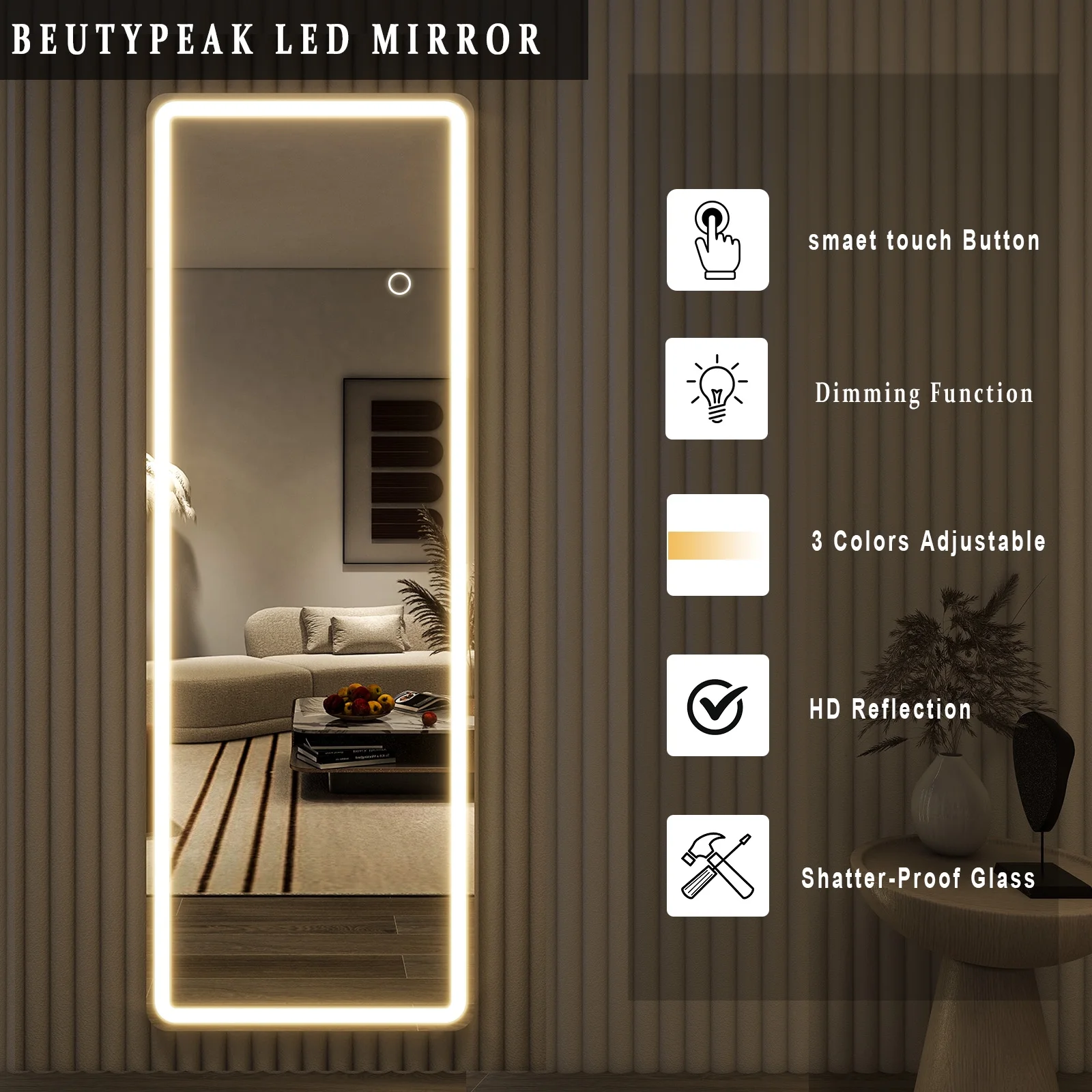 BEAUTYPEAK LED Full Length Mirror with Adjustable Lighting - Fashion Meets Function