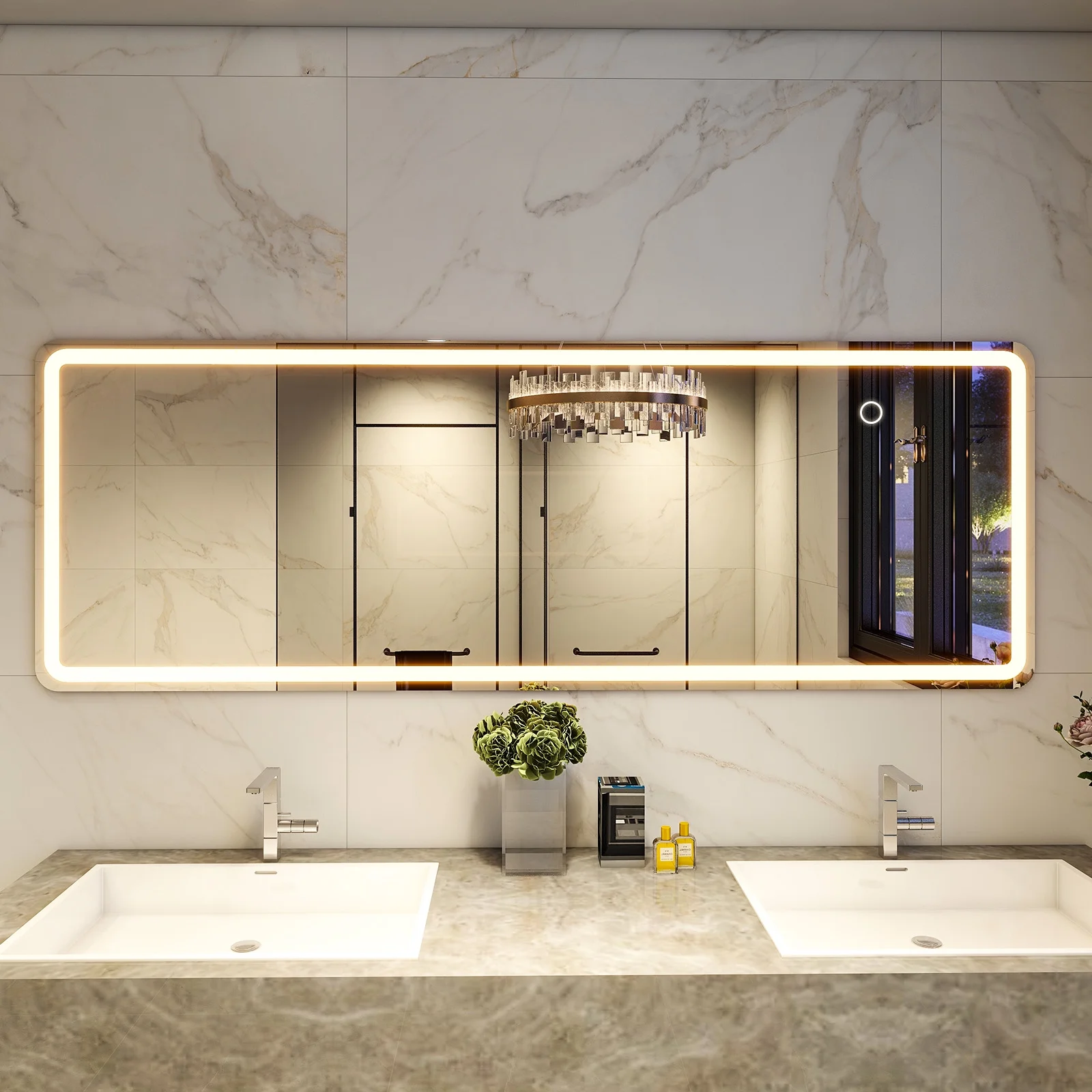��With its built-in LED light frame, you can easily adjust the lighting to suit your needs. Choose between three color temperatures - white, warm, and yellow - to create the perfect ambiance for any occasion. Whether you're getting ready for a night out or simply checking your outfit for the day, this mirror will ensure you always look your best.