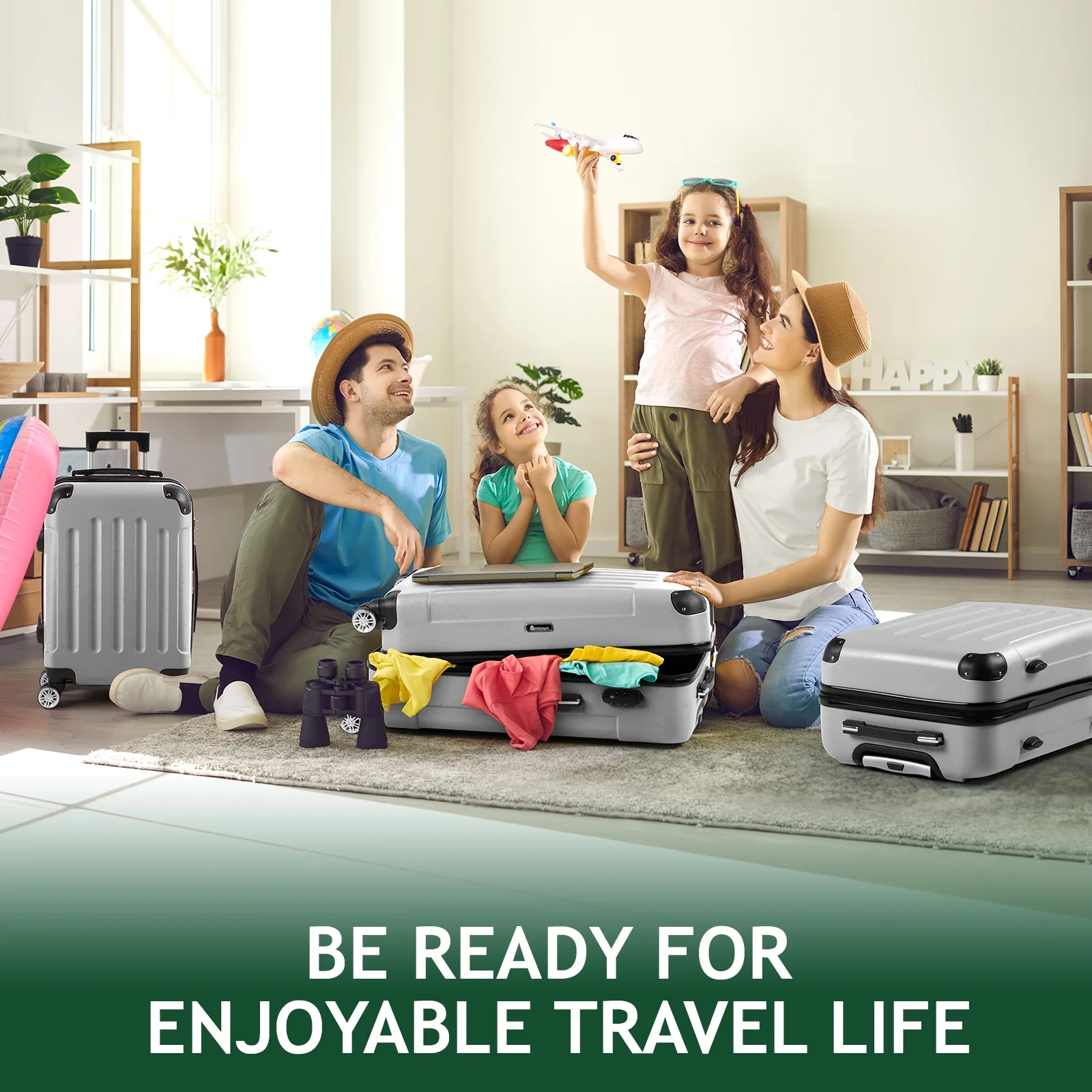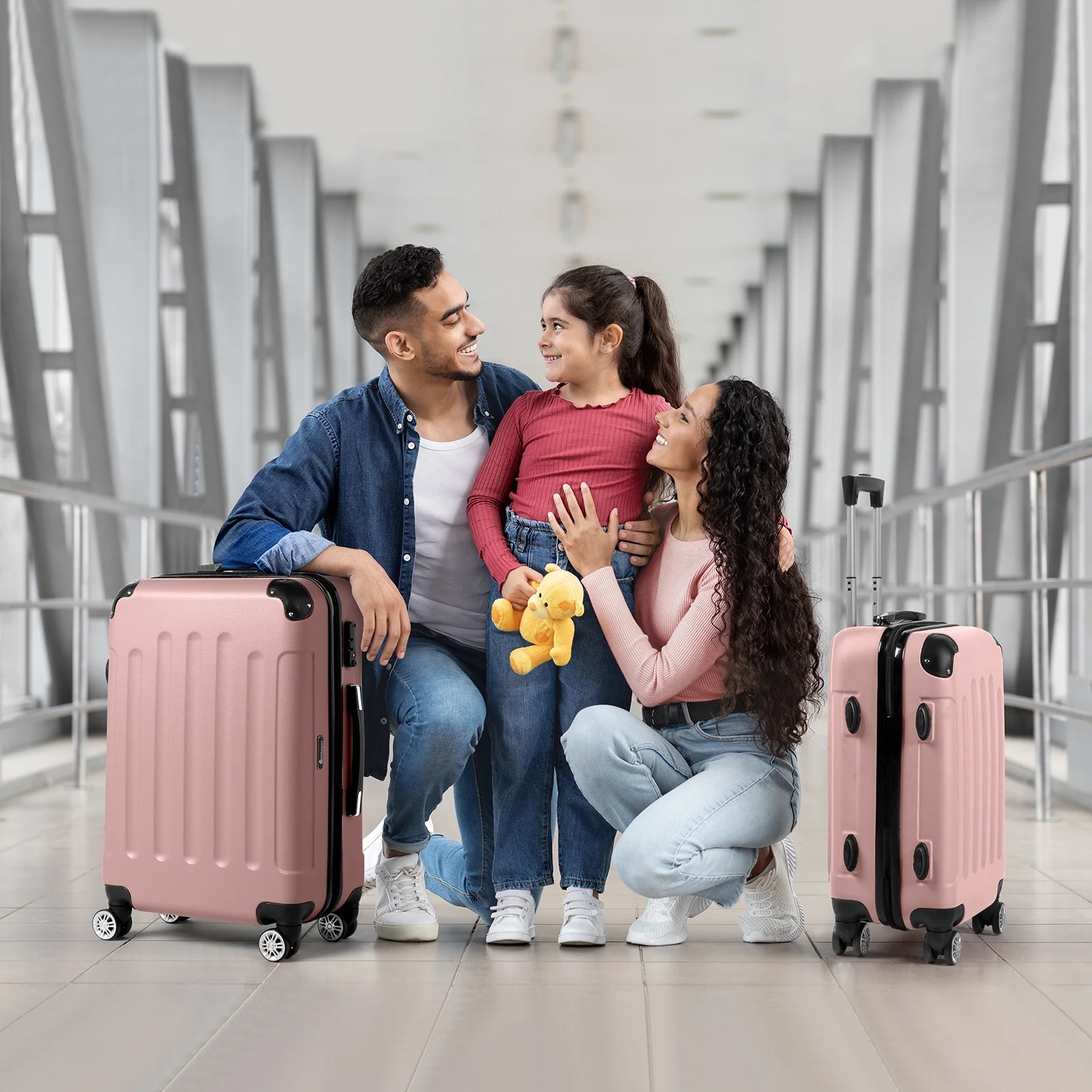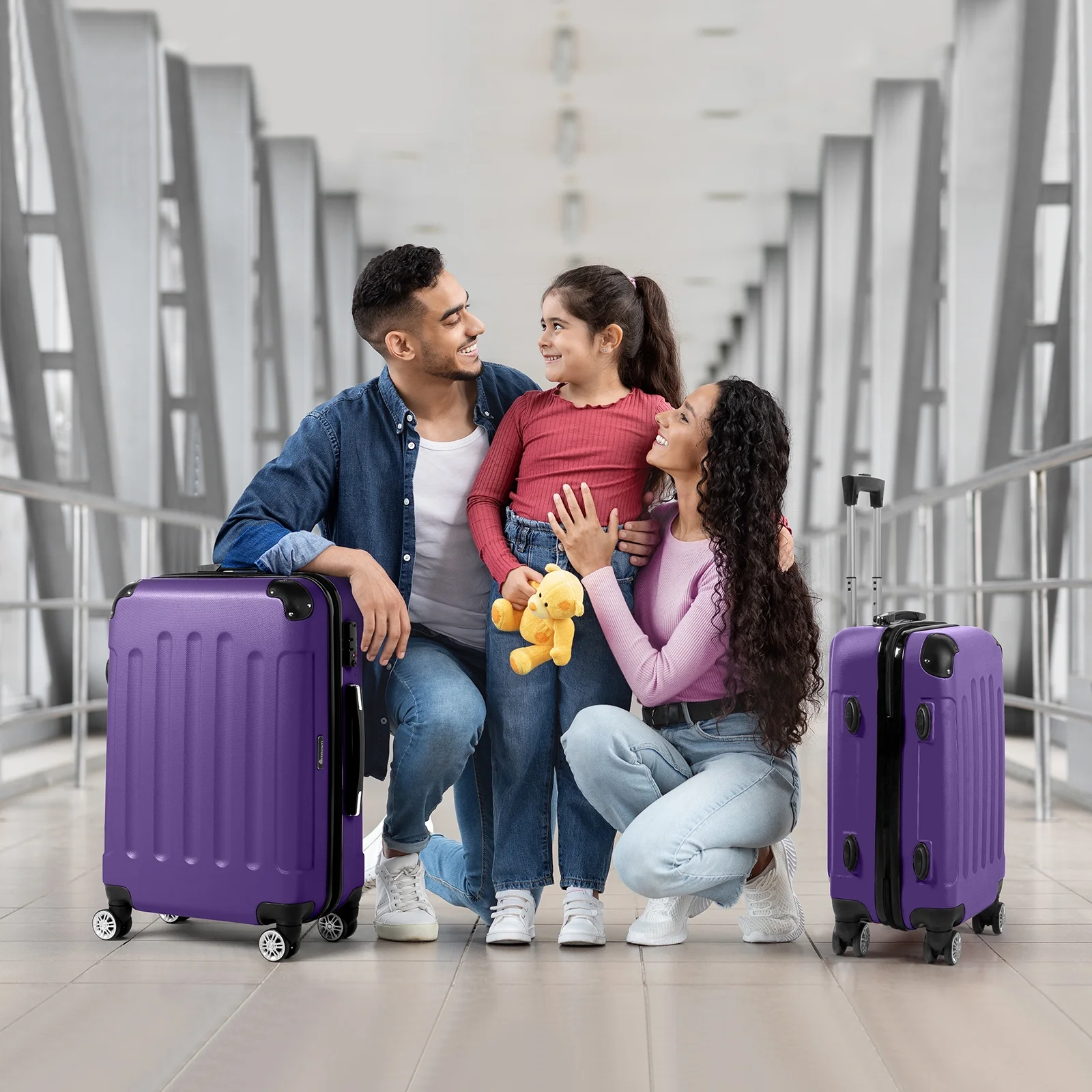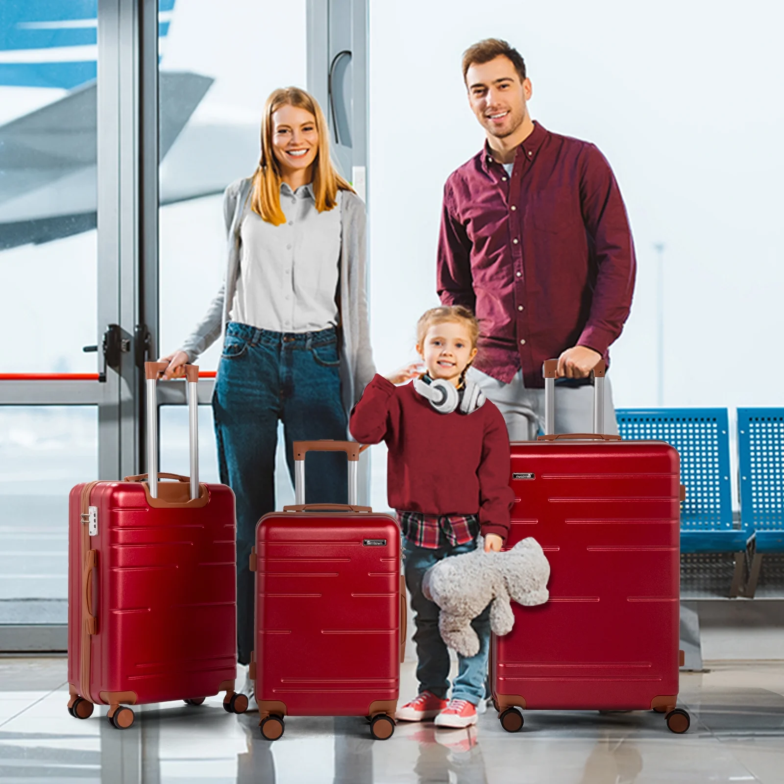 Lightweight & Durable ABS Construction: Made from 100% high-quality ABS material, this luggage is lightweight yet tough enough to handle the wear and tear of family travel. It's built to last through countless trips.