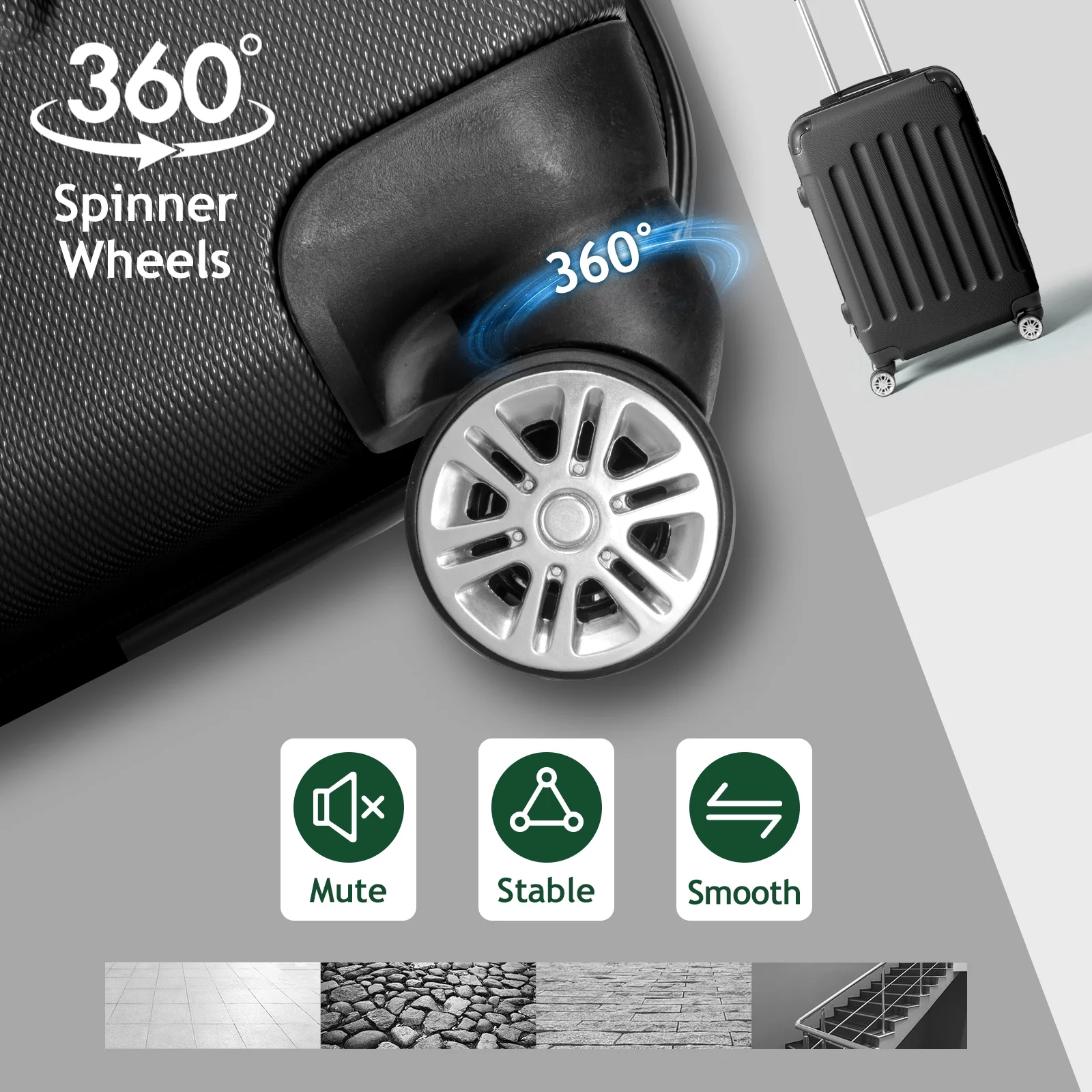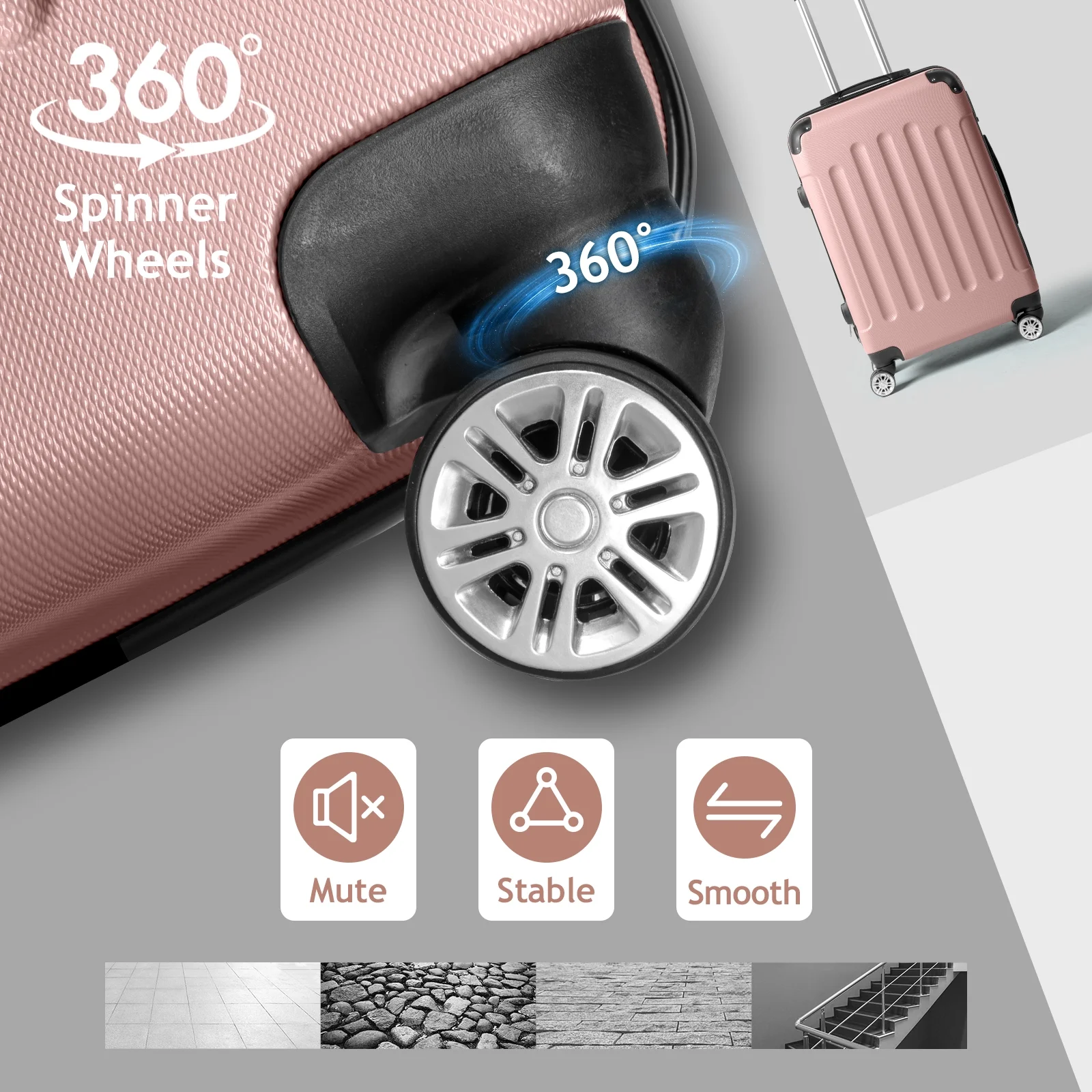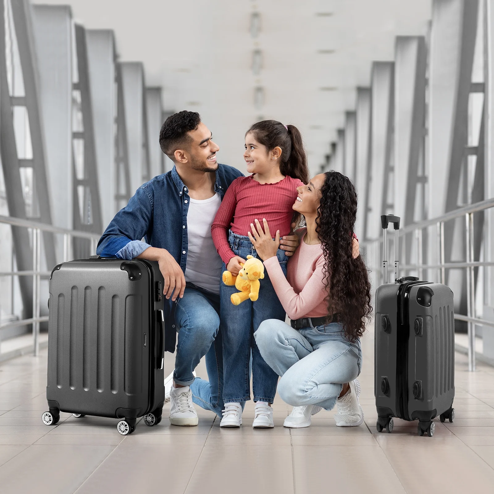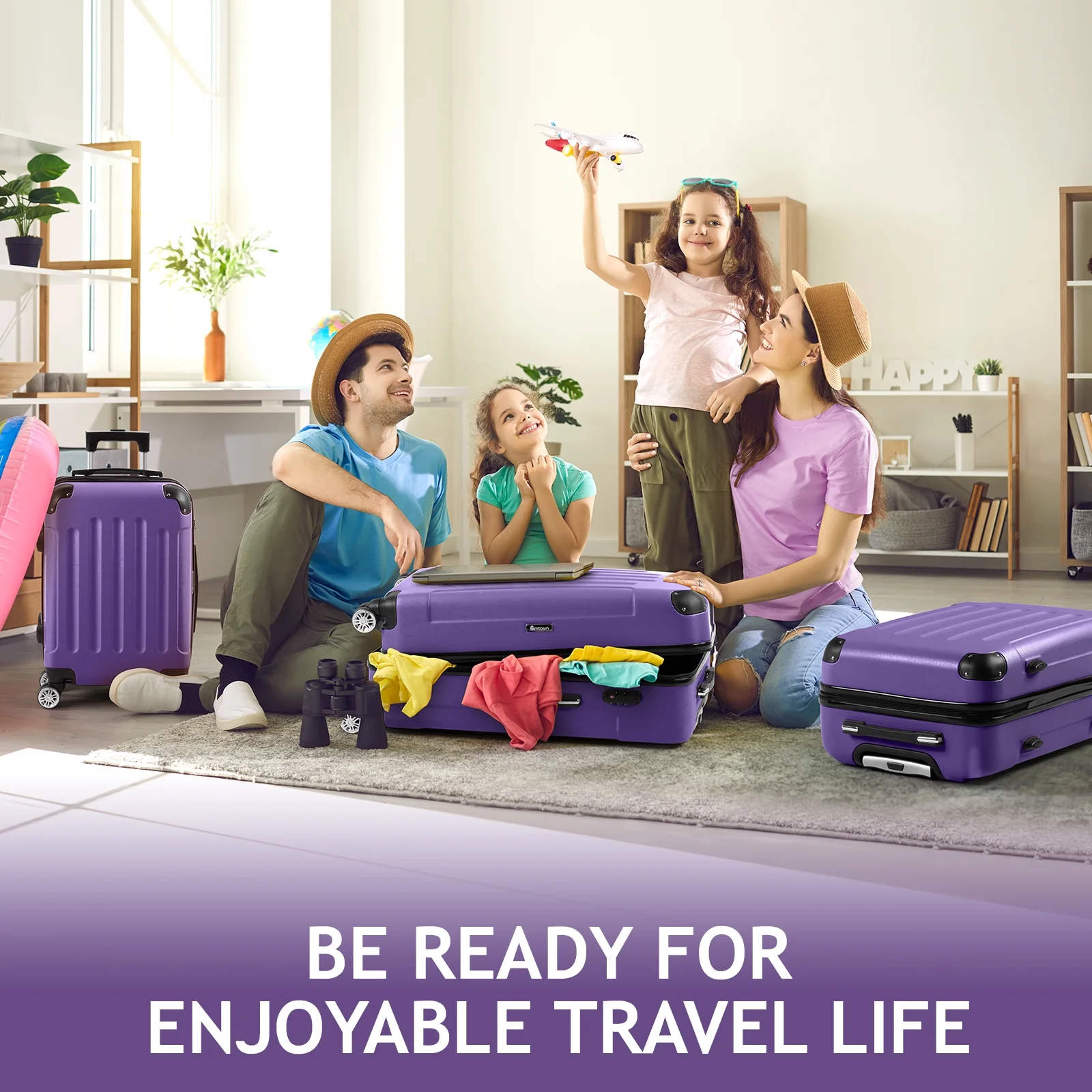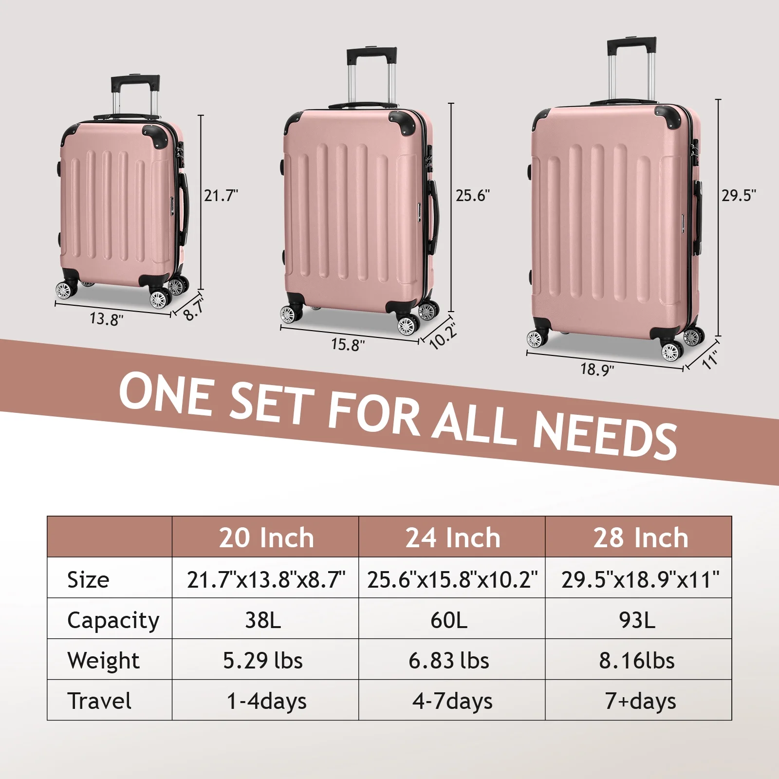 Lightweight & Durable ABS Construction: Made from 100% high-quality ABS material, this luggage is lightweight yet tough enough to handle the wear and tear of family travel. It's built to last through countless trips.
