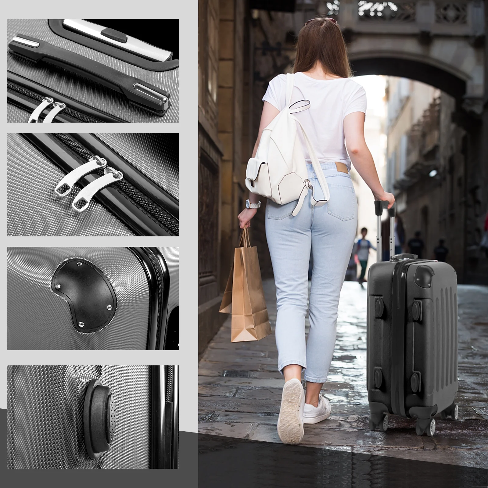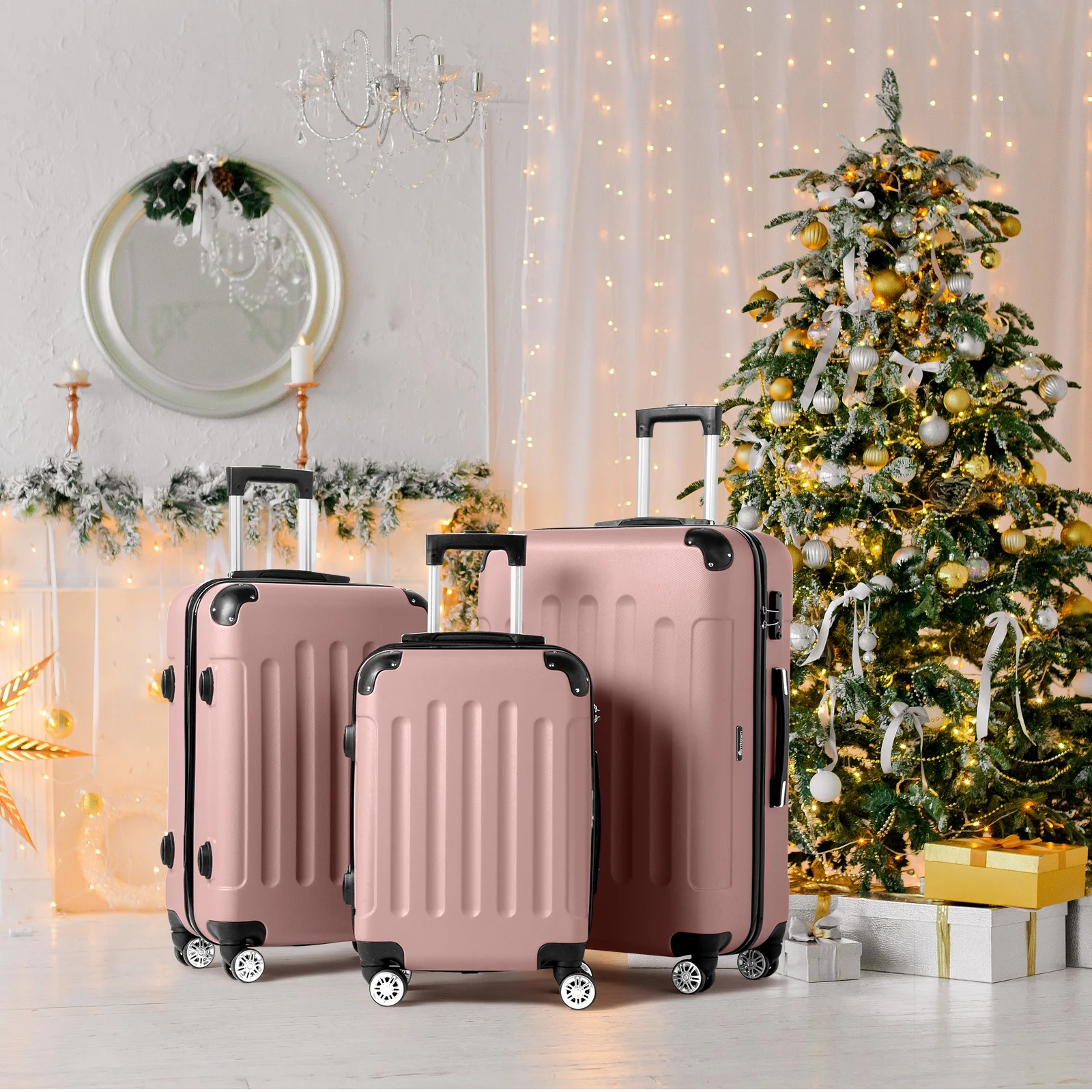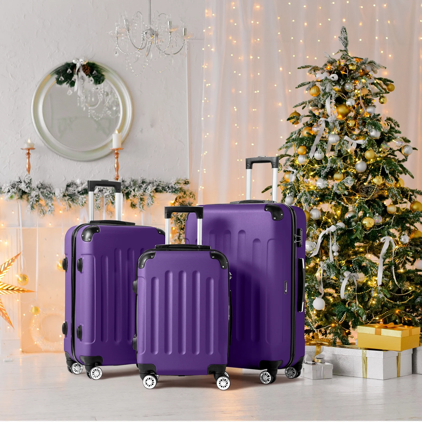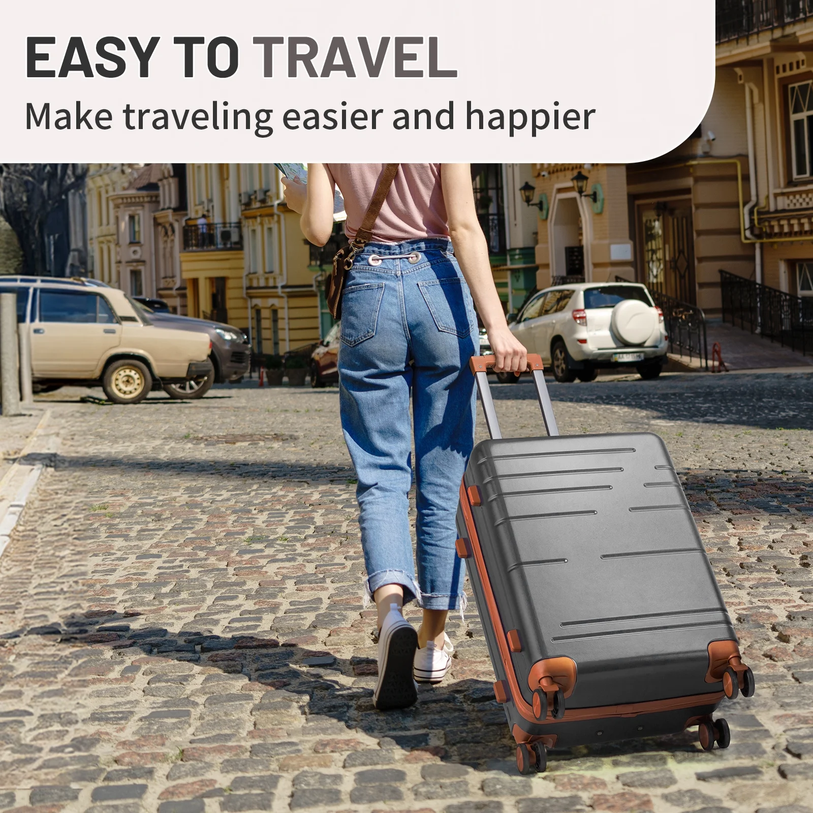 Lightweight & Durable ABS Construction: Made from 100% high-quality ABS material, this luggage is lightweight yet tough enough to handle the wear and tear of family travel. It's built to last through countless trips.