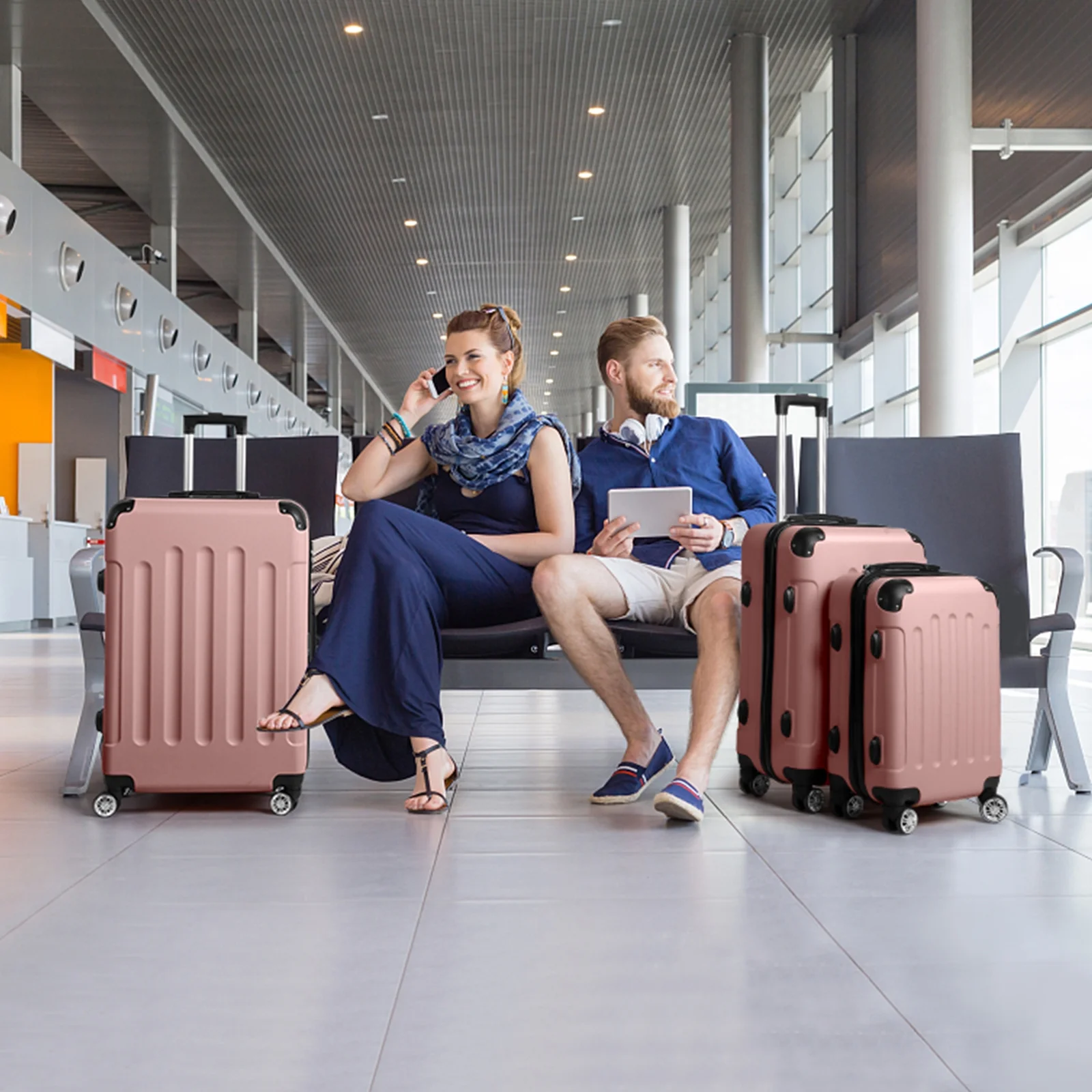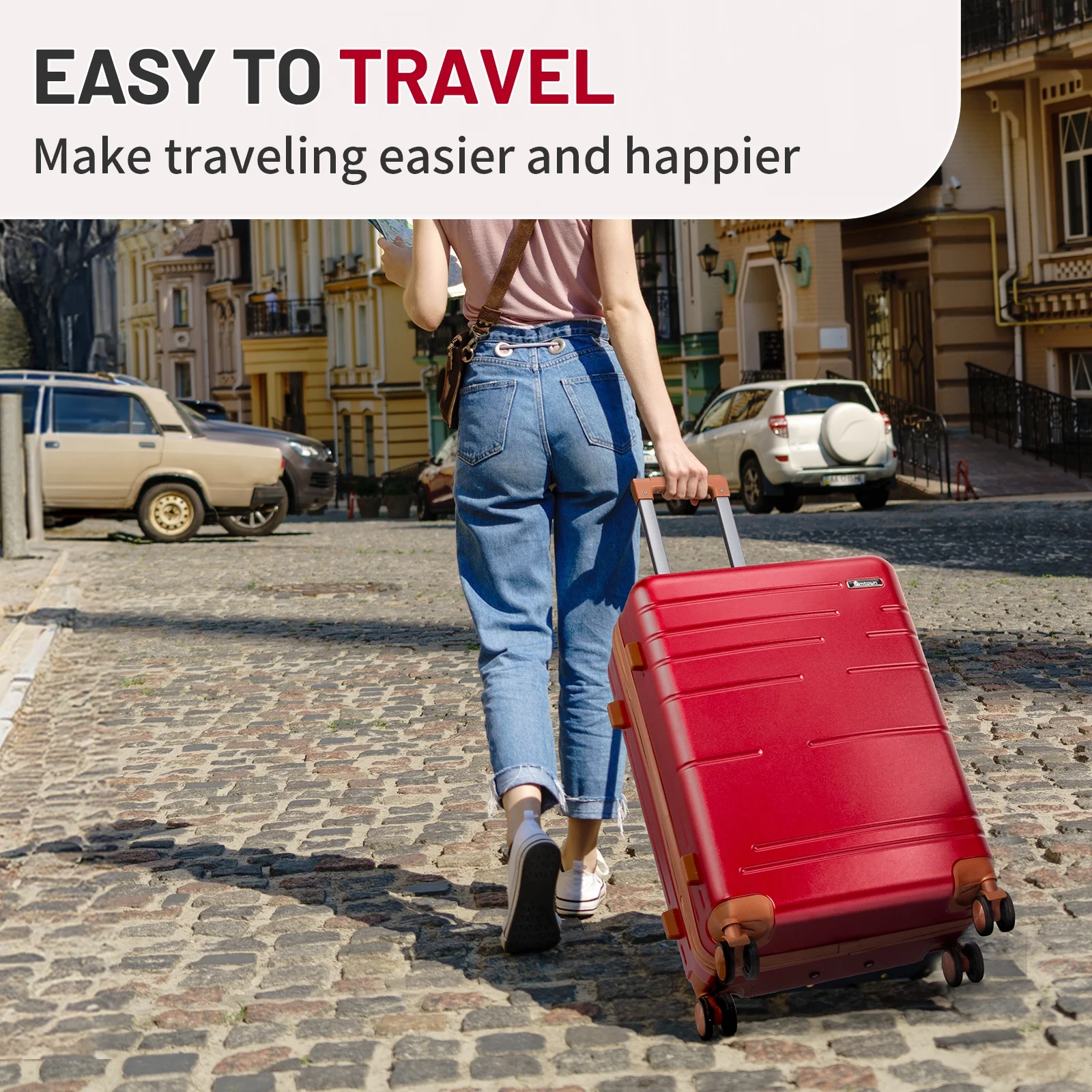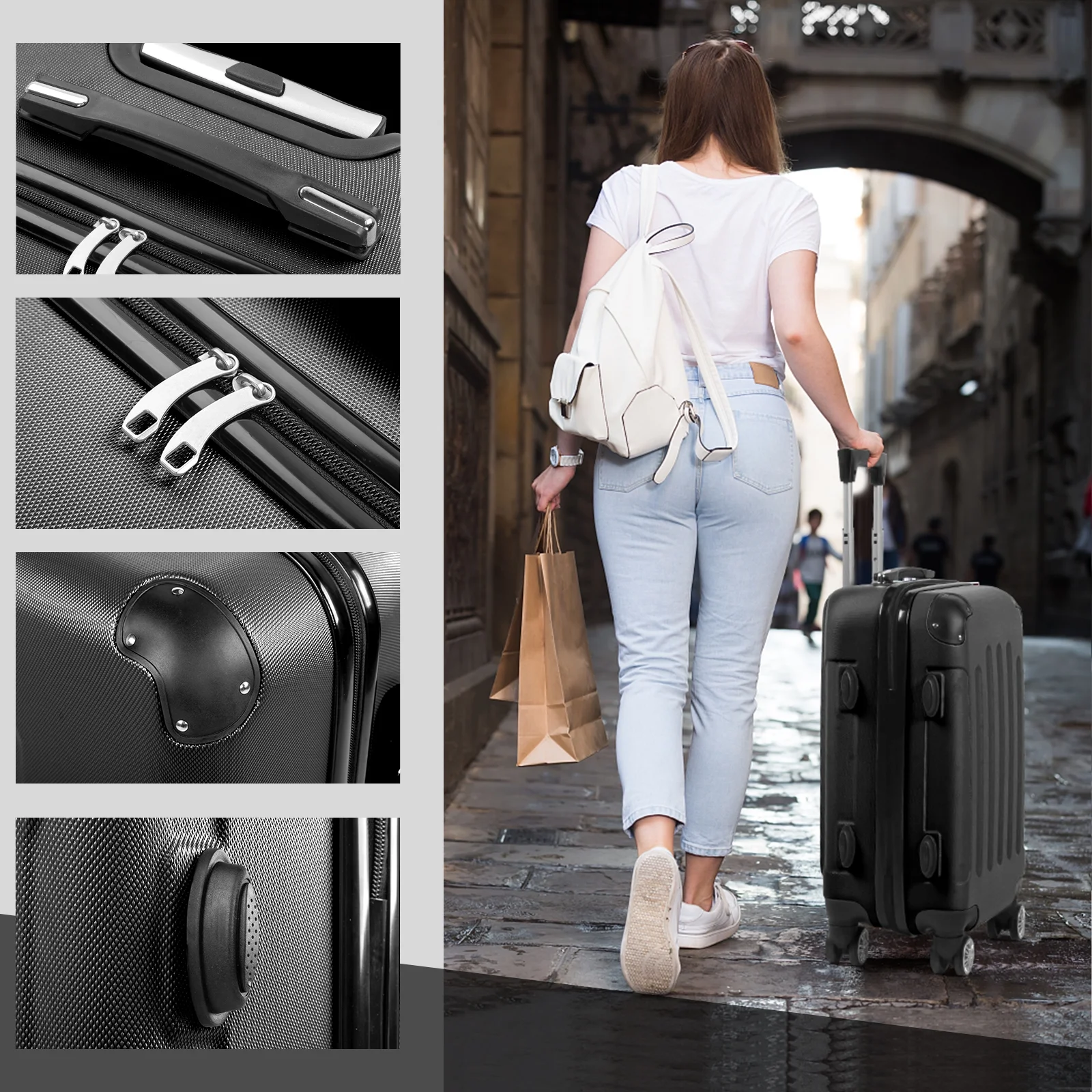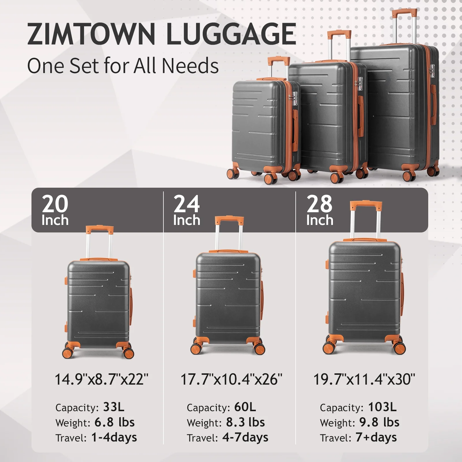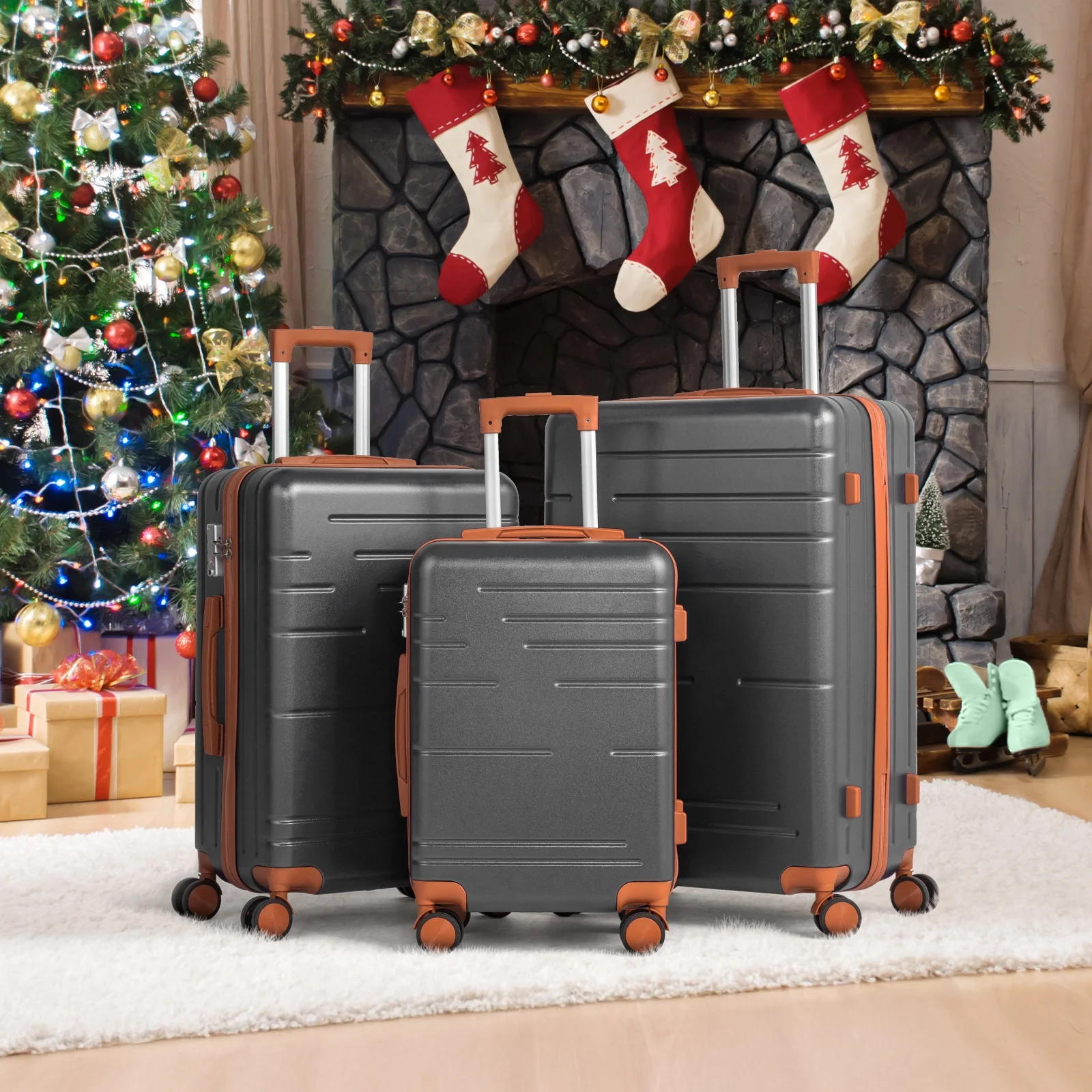 Lightweight & Durable ABS Construction: Made from 100% high-quality ABS material, this luggage is lightweight yet tough enough to handle the wear and tear of family travel. It's built to last through countless trips.