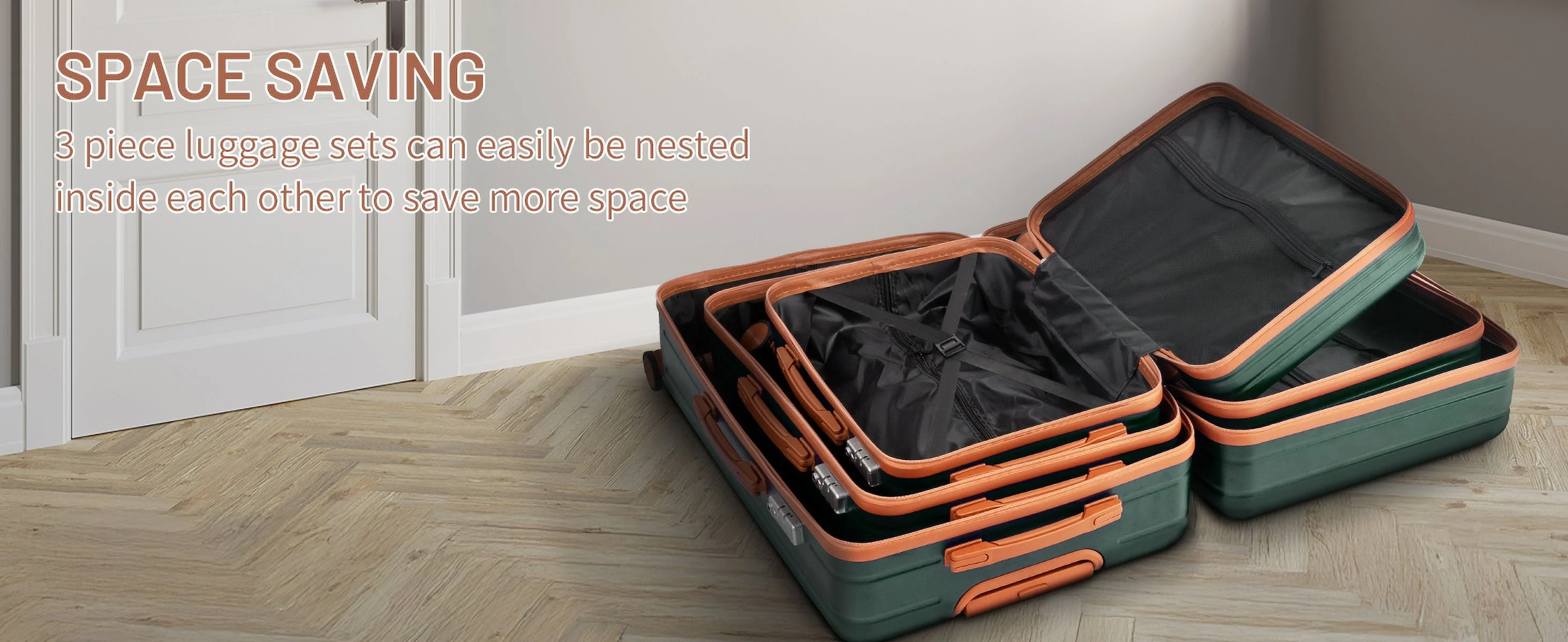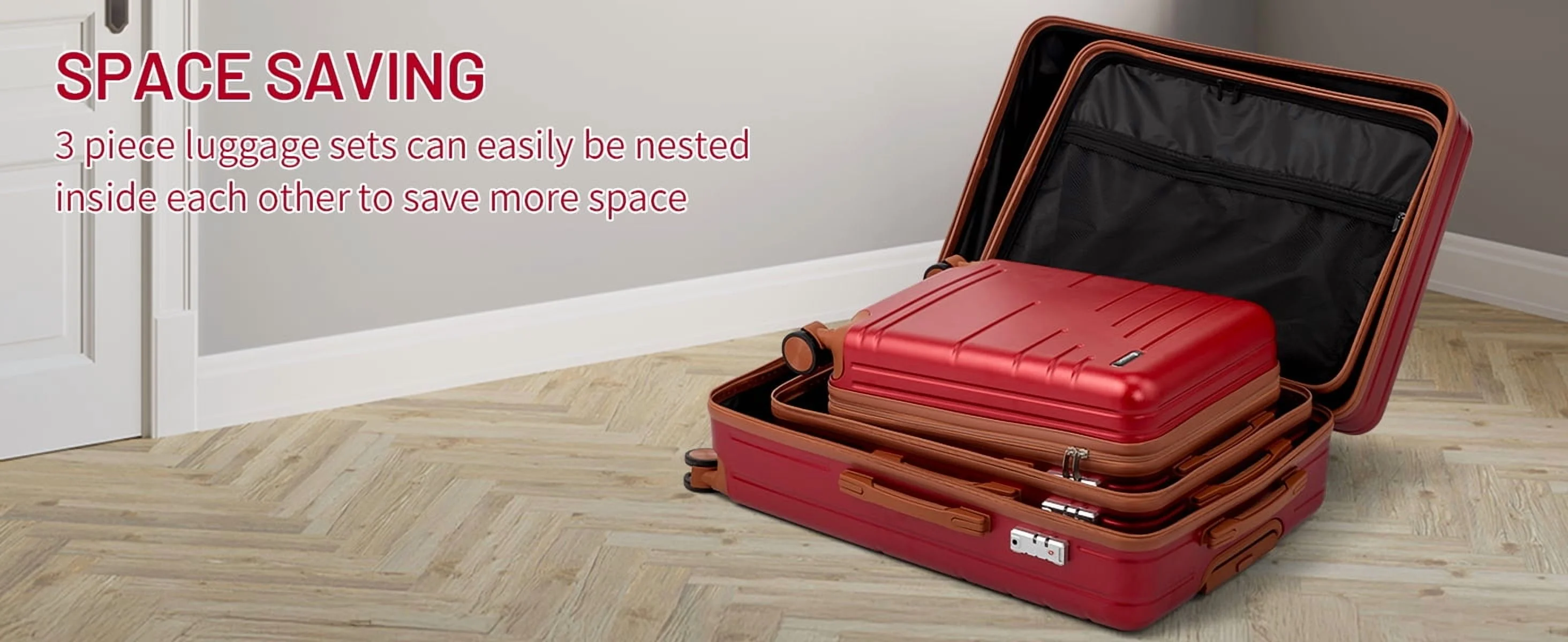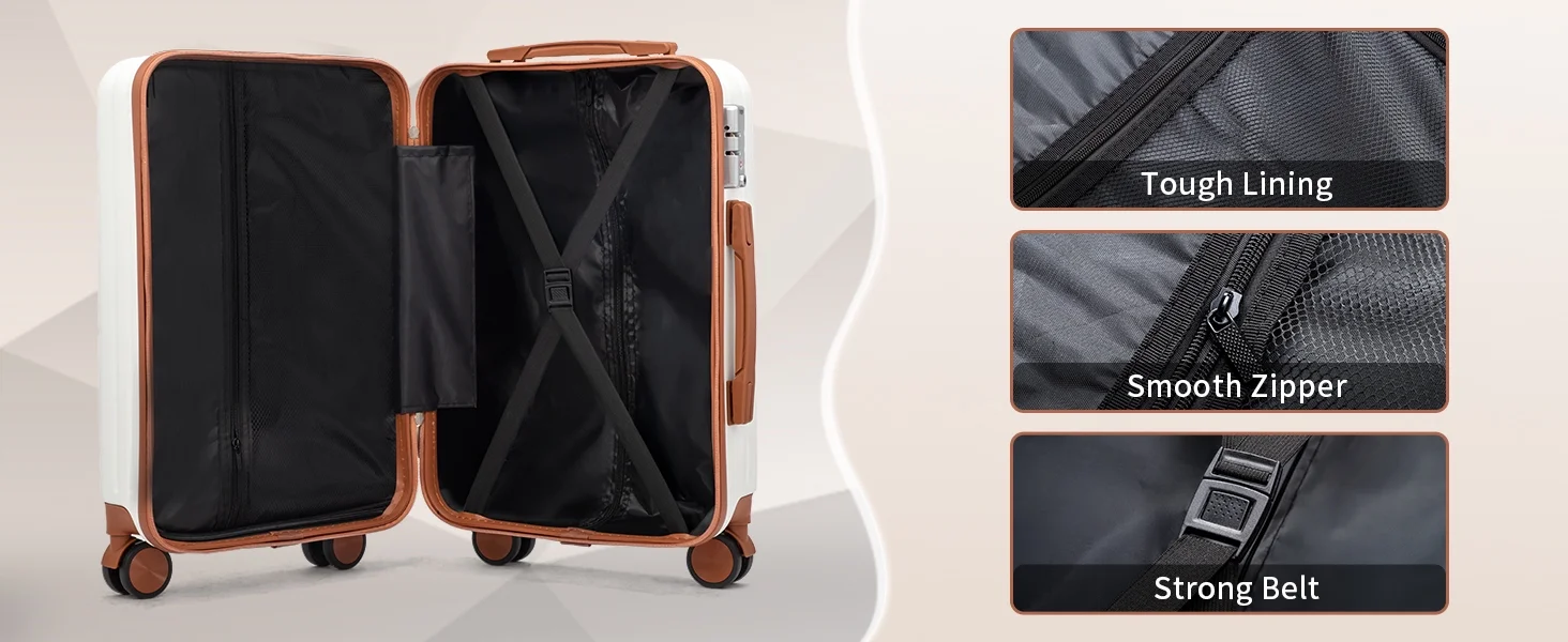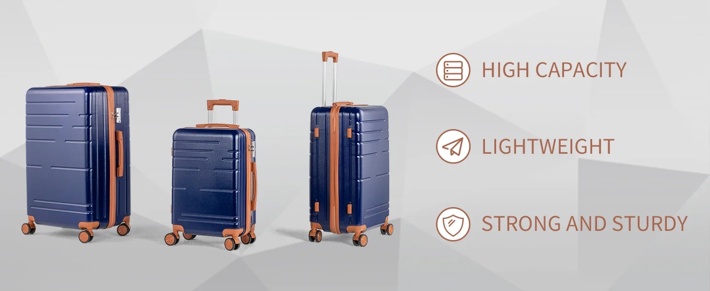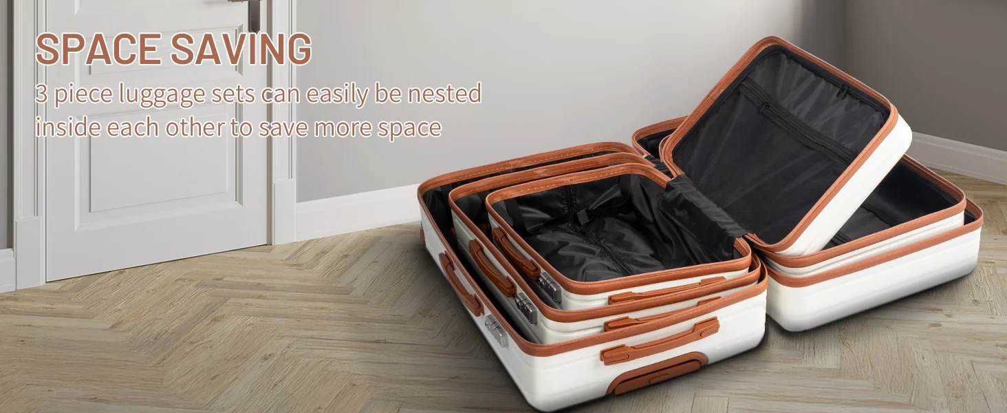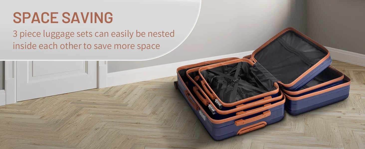 This 3-piece luggage set (20��, 24��, 28��) is designed to simplify your travels. Each suitcase nests neatly inside the other, saving space when not in use. Equipped with 360�� spinner wheels, they glide effortlessly in any direction, making airport navigation a breeze. Crafted from 100% lightweight ABS material, these suitcases are both durable and easy to carry. The TSA-accepted lock ensures your belongings are secure, while the ergonomic aluminum telescoping handle provides a comfortable grip for travelers of all heights. Inside, mesh zip pockets and elastic straps keep your items organized and secure. Whether you're packing for a weekend trip or a long vacation, this set offers versatility, durability, and style. Click "Add to Cart" and make every journey smoother and more enjoyable!
