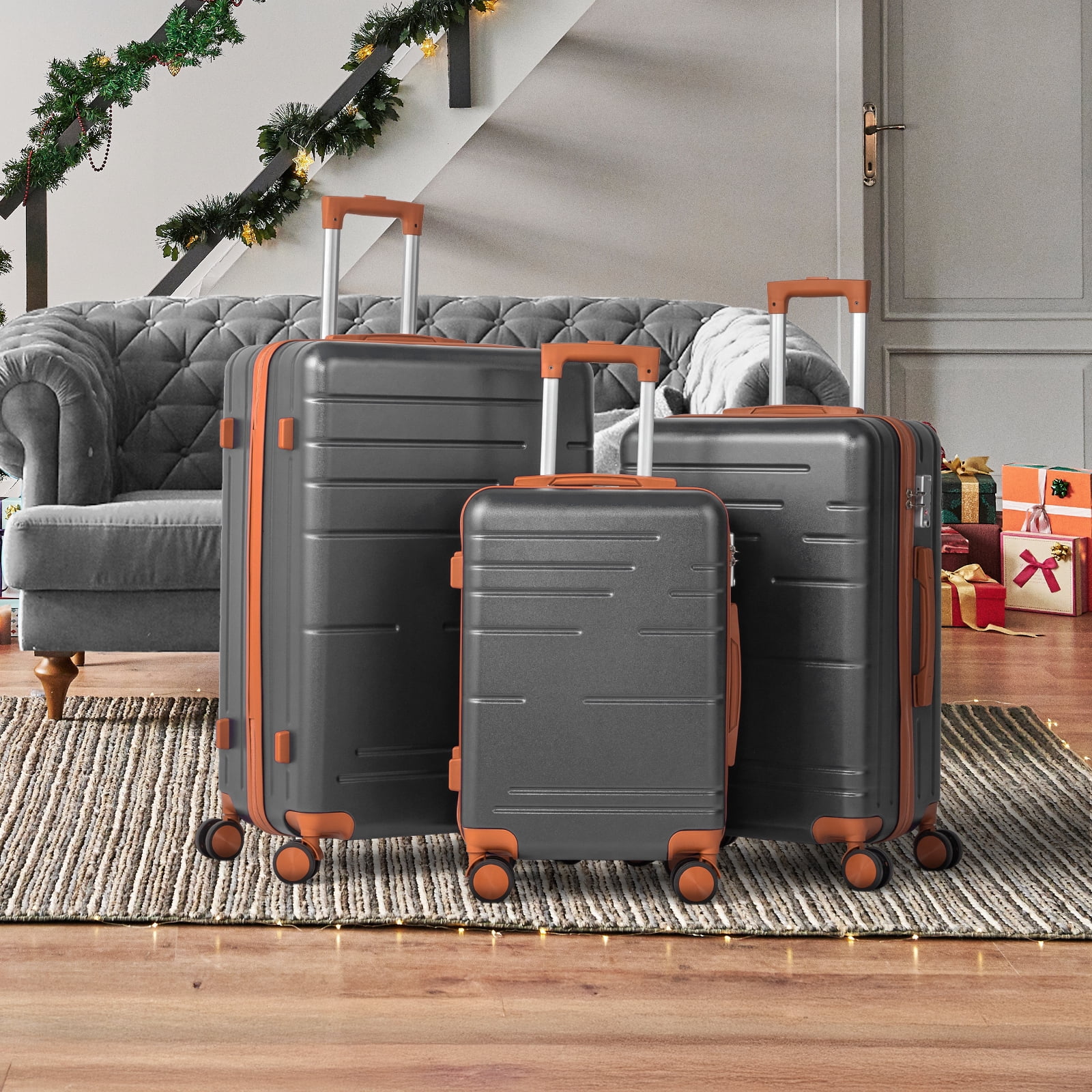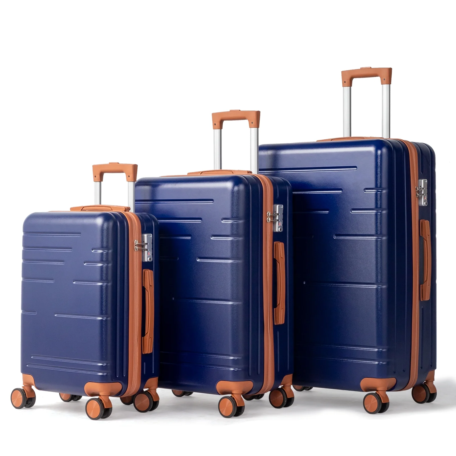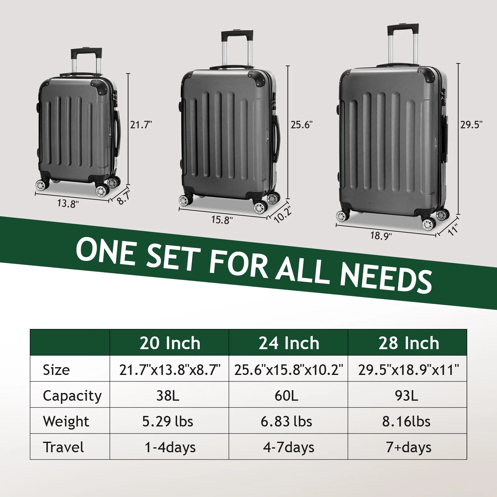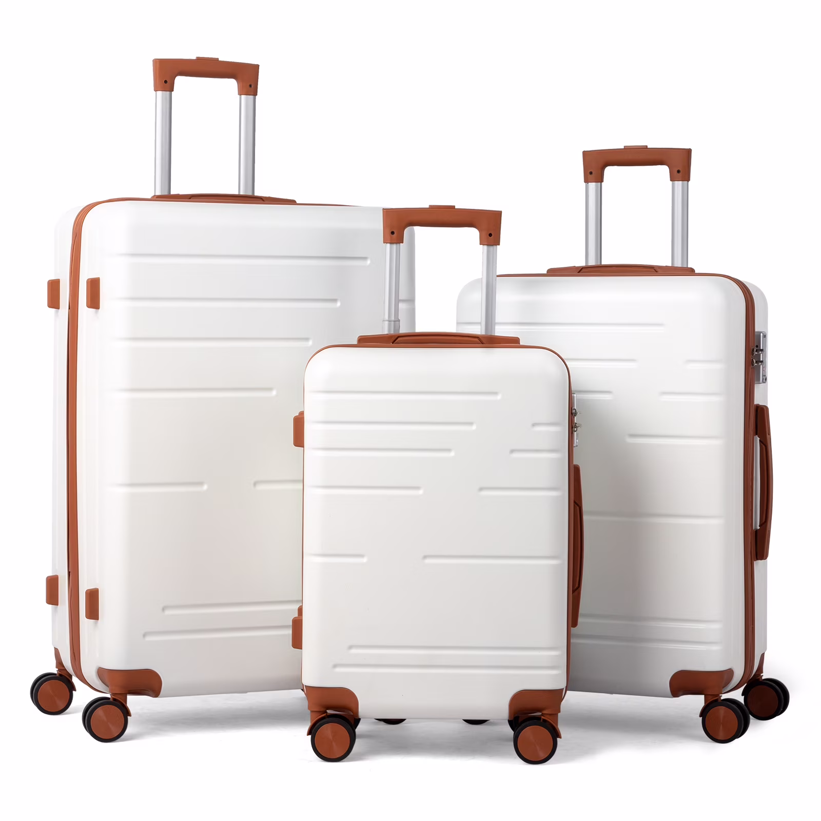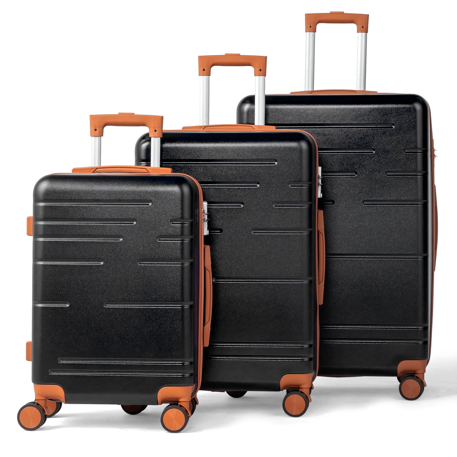 This 3-piece luggage set (20��, 24��, 28��) is designed to simplify your travels. Each suitcase nests neatly inside the other, saving space when not in use. Equipped with 360�� spinner wheels, they glide effortlessly in any direction, making airport navigation a breeze. Crafted from 100% lightweight ABS material, these suitcases are both durable and easy to carry. The TSA-accepted lock ensures your belongings are secure, while the ergonomic aluminum telescoping handle provides a comfortable grip for travelers of all heights. Inside, mesh zip pockets and elastic straps keep your items organized and secure. Whether you're packing for a weekend trip or a long vacation, this set offers versatility, durability, and style. Click "Add to Cart" and make every journey smoother and more enjoyable!