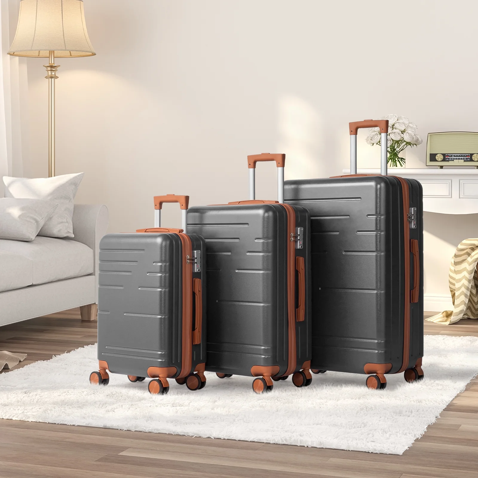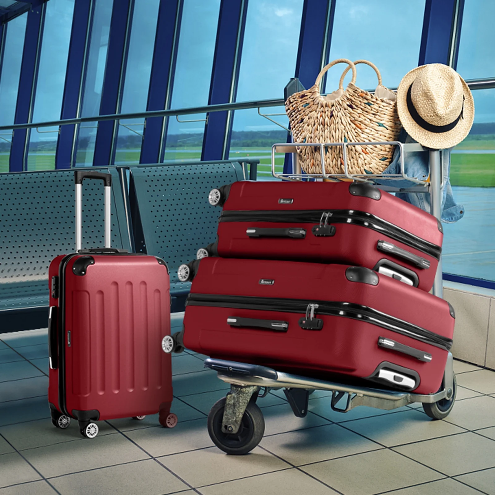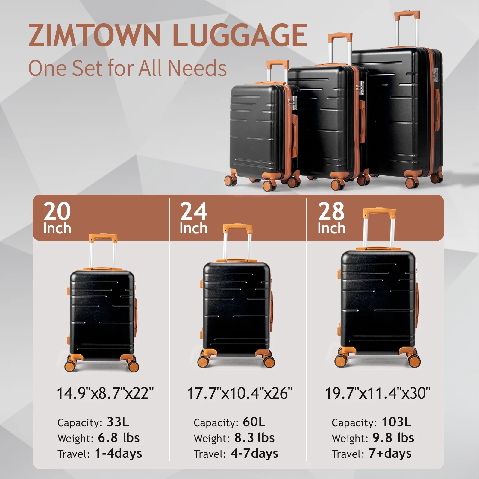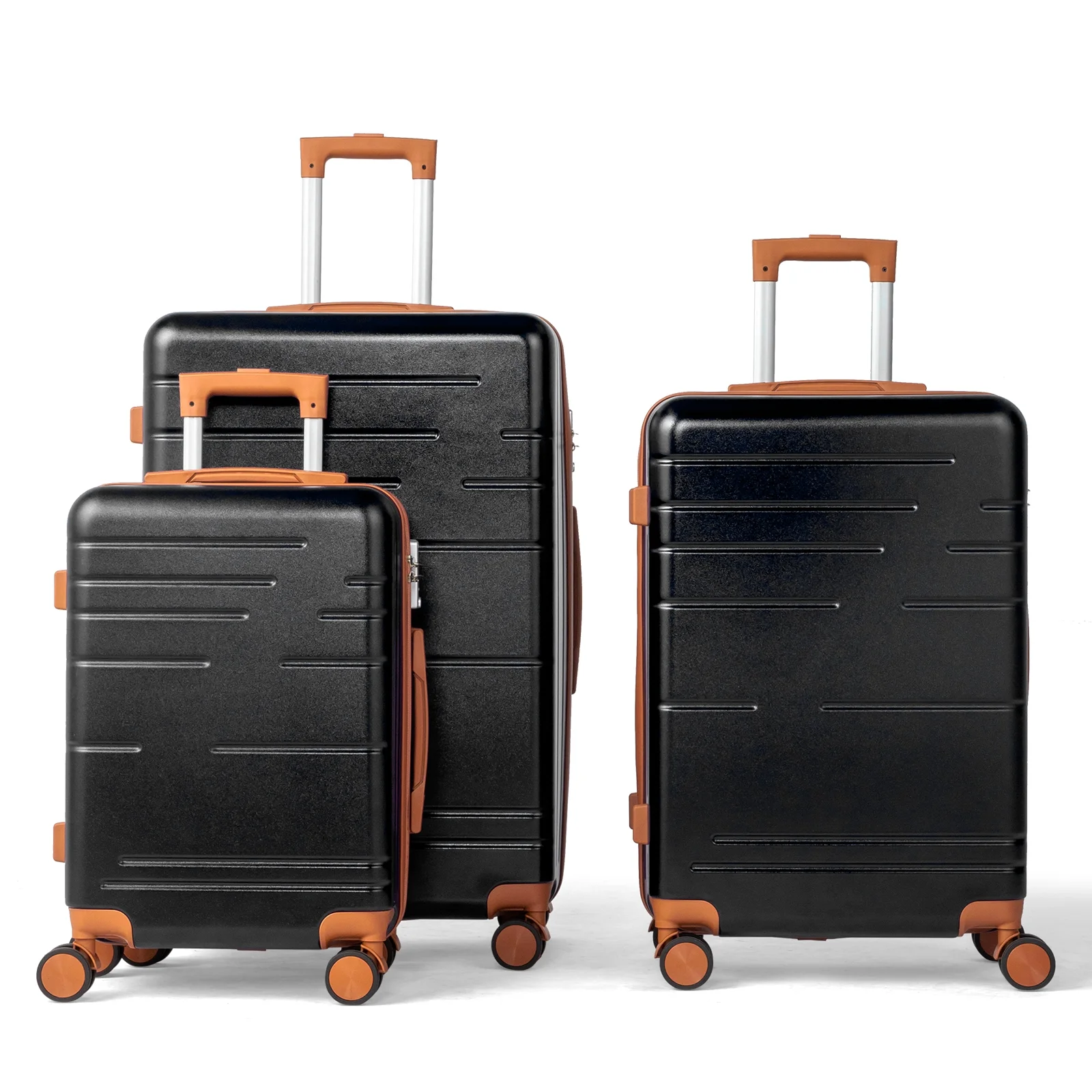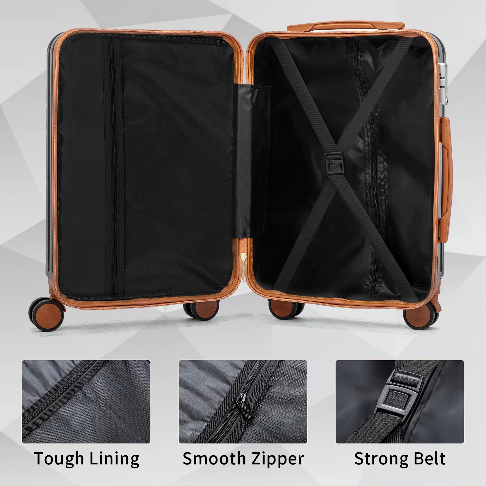 This 3-piece luggage set (20��, 24��, 28��) is designed to simplify your travels. Each suitcase nests neatly inside the other, saving space when not in use. Equipped with 360�� spinner wheels, they glide effortlessly in any direction, making airport navigation a breeze. Crafted from 100% lightweight ABS material, these suitcases are both durable and easy to carry. The TSA-accepted lock ensures your belongings are secure, while the ergonomic aluminum telescoping handle provides a comfortable grip for travelers of all heights. Inside, mesh zip pockets and elastic straps keep your items organized and secure. Whether you're packing for a weekend trip or a long vacation, this set offers versatility, durability, and style. Click "Add to Cart" and make every journey smoother and more enjoyable!