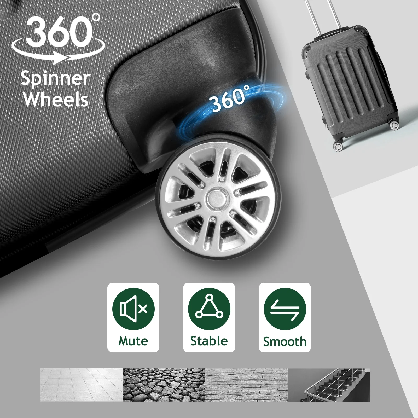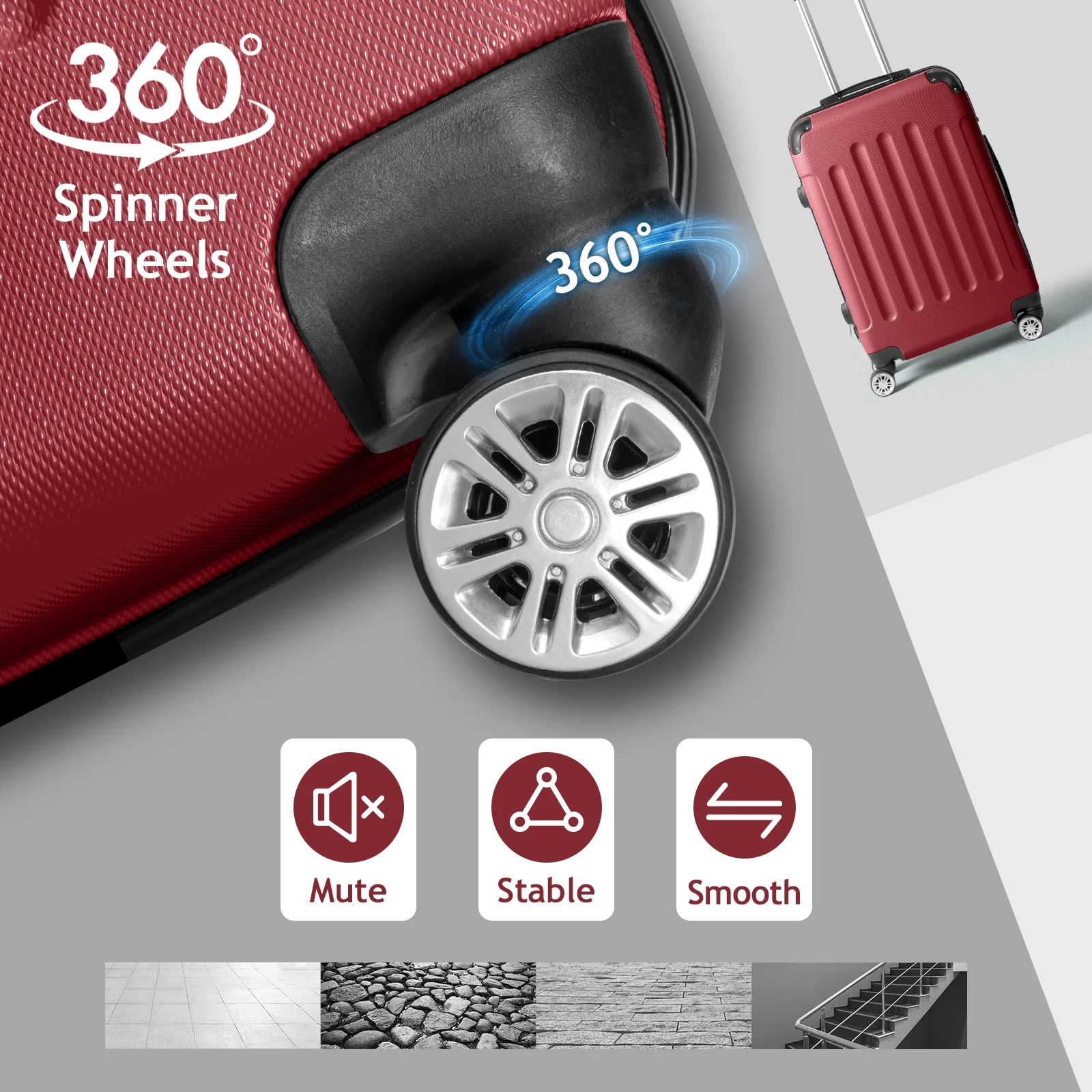Smooth 360�� Spinner Wheels: Navigating busy airports or crowded streets is a breeze with our multi-directional spinner wheels. They roll effortlessly in any direction, making it easy for kids and adults alike to handle.