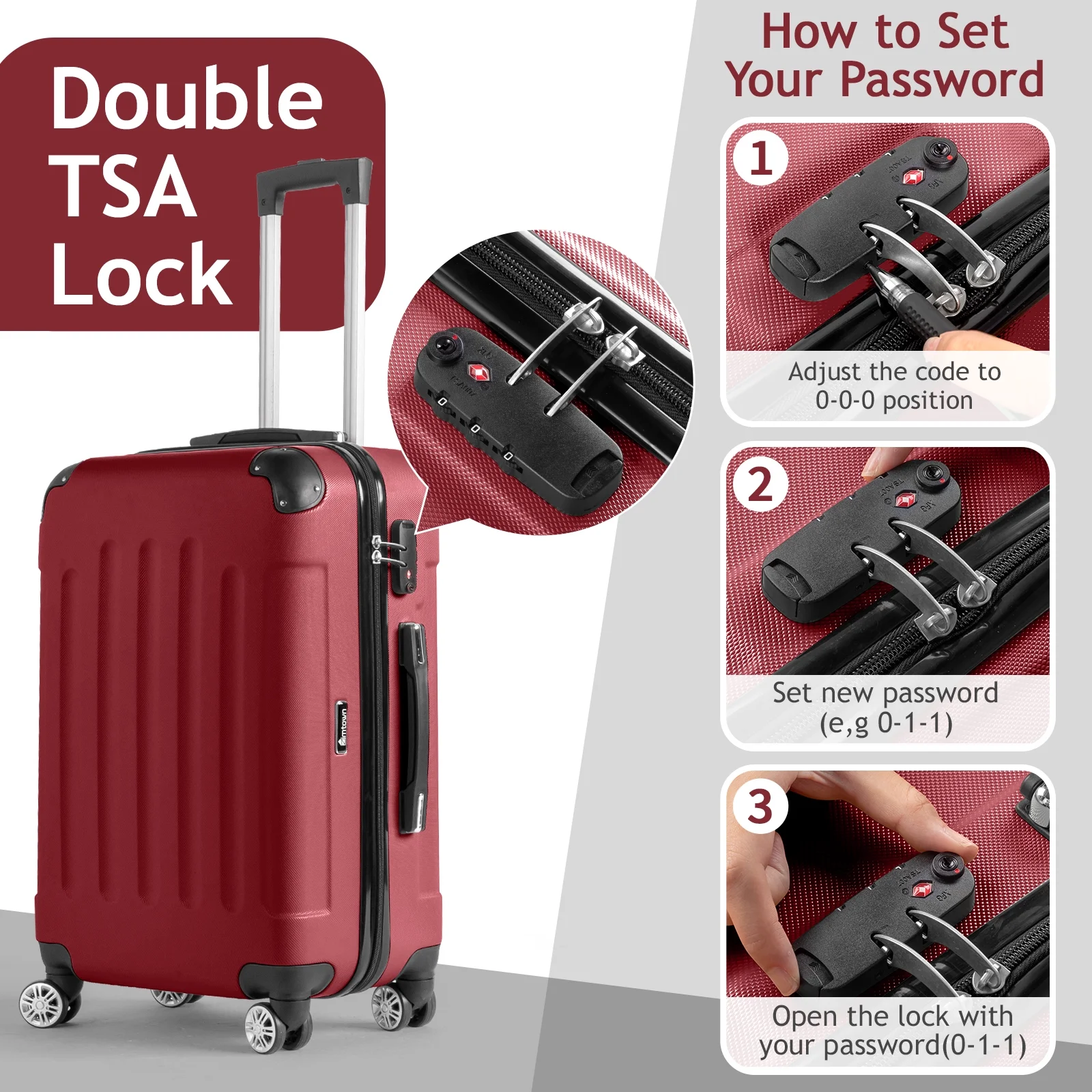 TSA-Approved Lock for Peace of Mind: Keep your family's belongings secure with the built-in TSA-accepted lock. No more worrying about lost keys or broken zippers��your luggage is safe and sound.