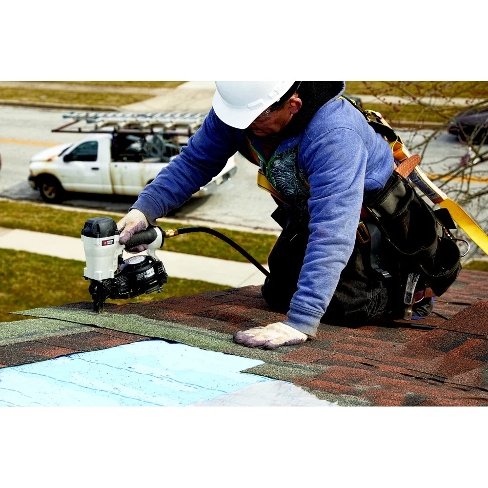 - Includes: Roofing nailer, 1/4" air fitting, Manual