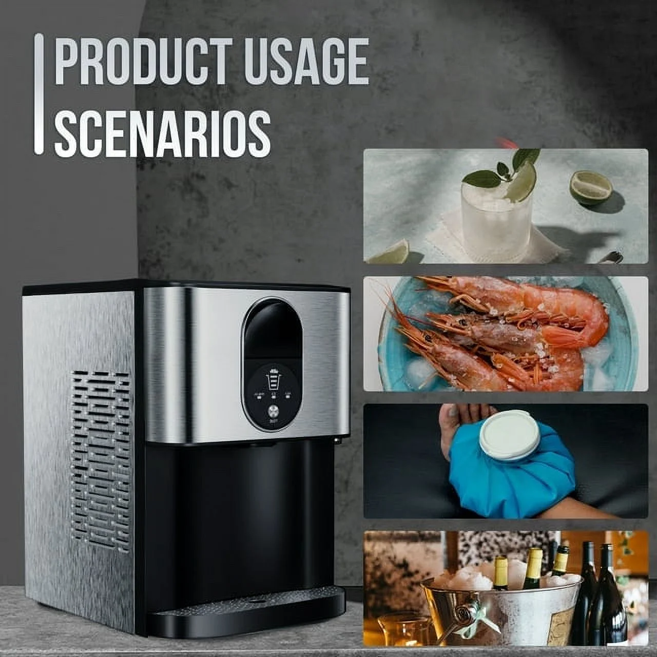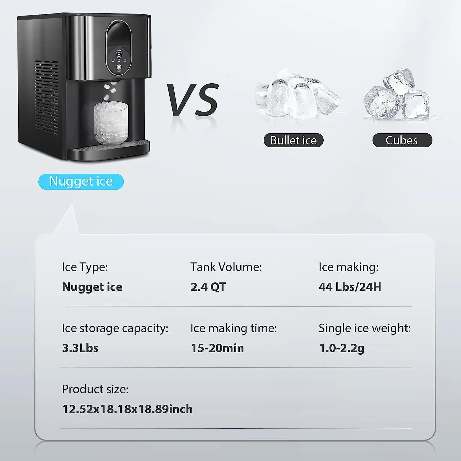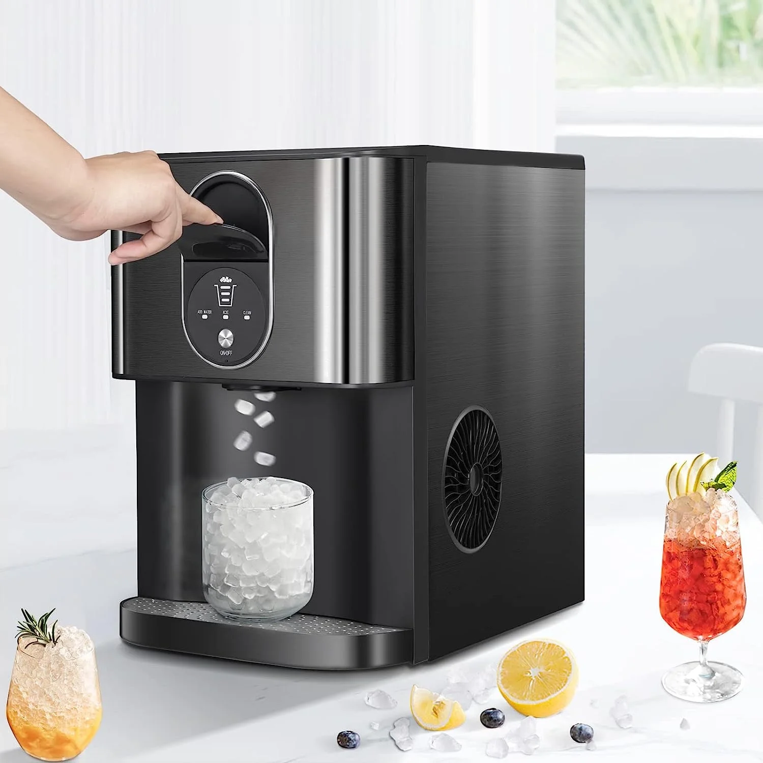- [Tasty, Chewable Nugget Ice] Say goodbye to hard, unchewable ice blocks. Our ice maker produces delightful nugget ice that��s crisp and retains your drinks�� flavors, perfect for any beverage from whisky to soda.