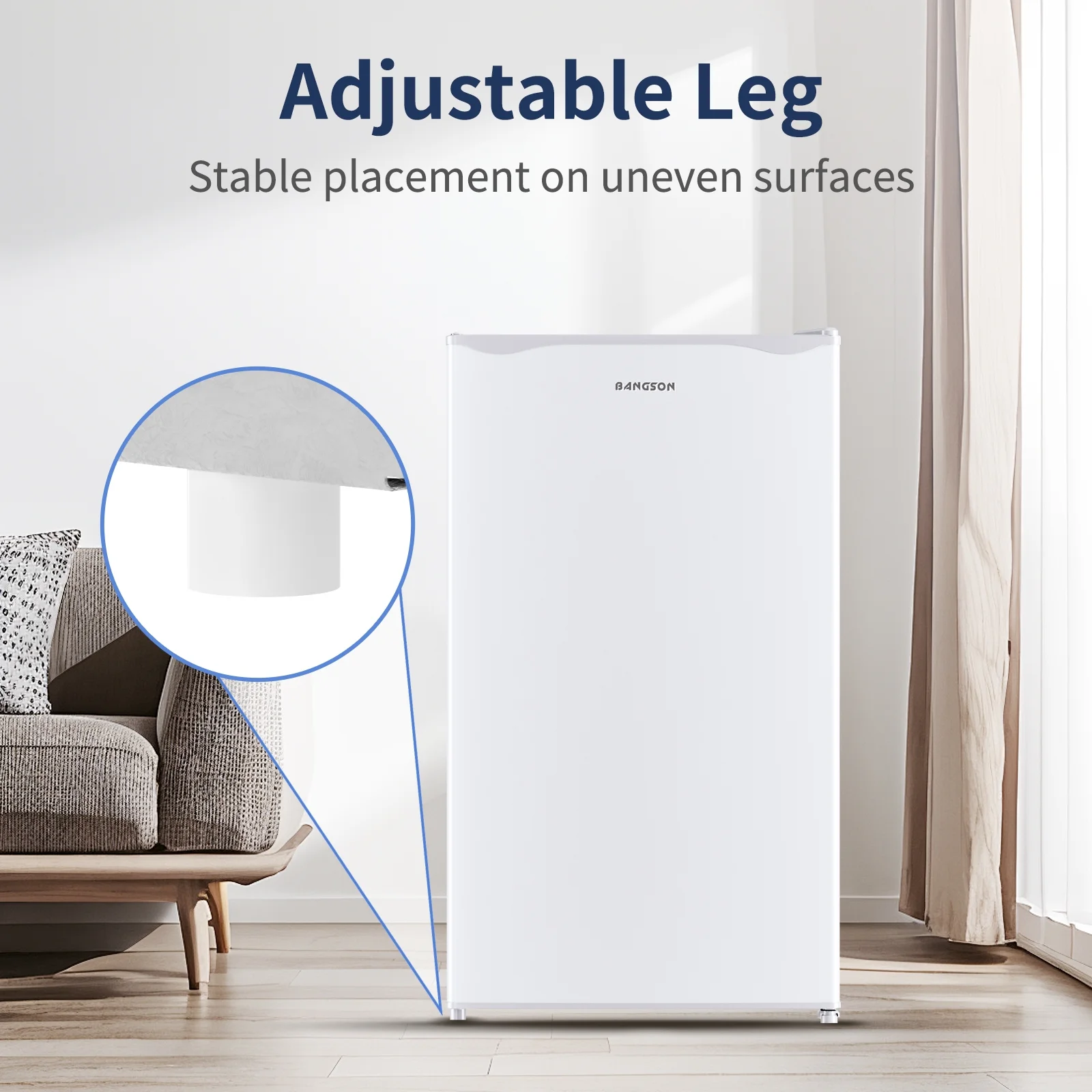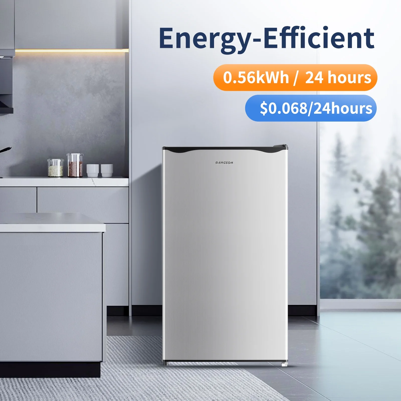 BANGSON 3.2 Cu.Ft. Mini Fridge, Compact Refrigerator with Reversible Door, Silver