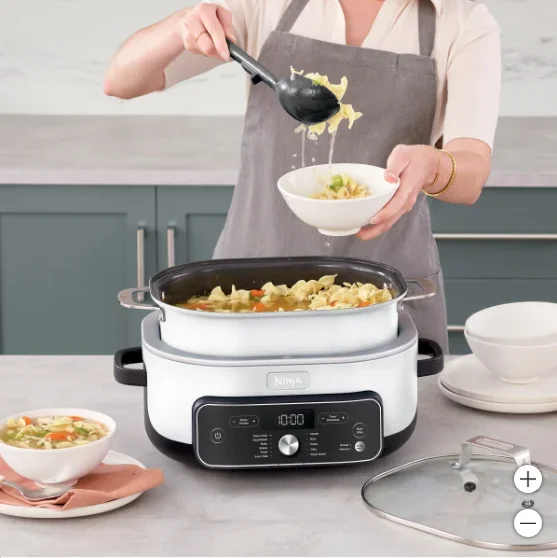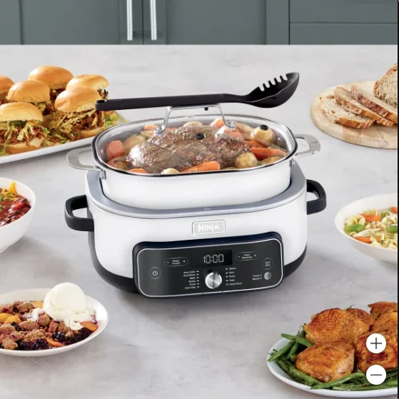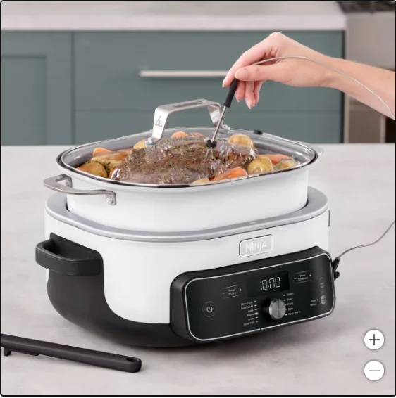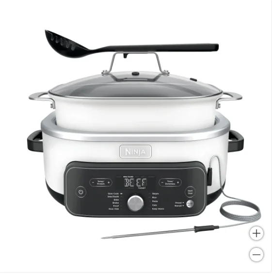 - ?Features:11-In-1: Slow Cook, Sear/Saut��, Bake, Braise, Proof, Sous Vide, Steam, Rice, Pasta, Oats, And Keep WarmCustom Temperature Control: Dial Into Temperatures, Up To 400��FSmart Cook System: Select Your Protein and Doneness - Ninja? Smart Thermometer Handles the Temp For YouPowerful 1400-Watt Base: Lock In Flavor With High-Temp Searing And Saut��ing Directly In The PotIncludes: Dishwasher Safe 8.5 Qt Table-Ready Pot, Spoon, And Lid. Bonus Value Smart Thermometer & Steam Rack