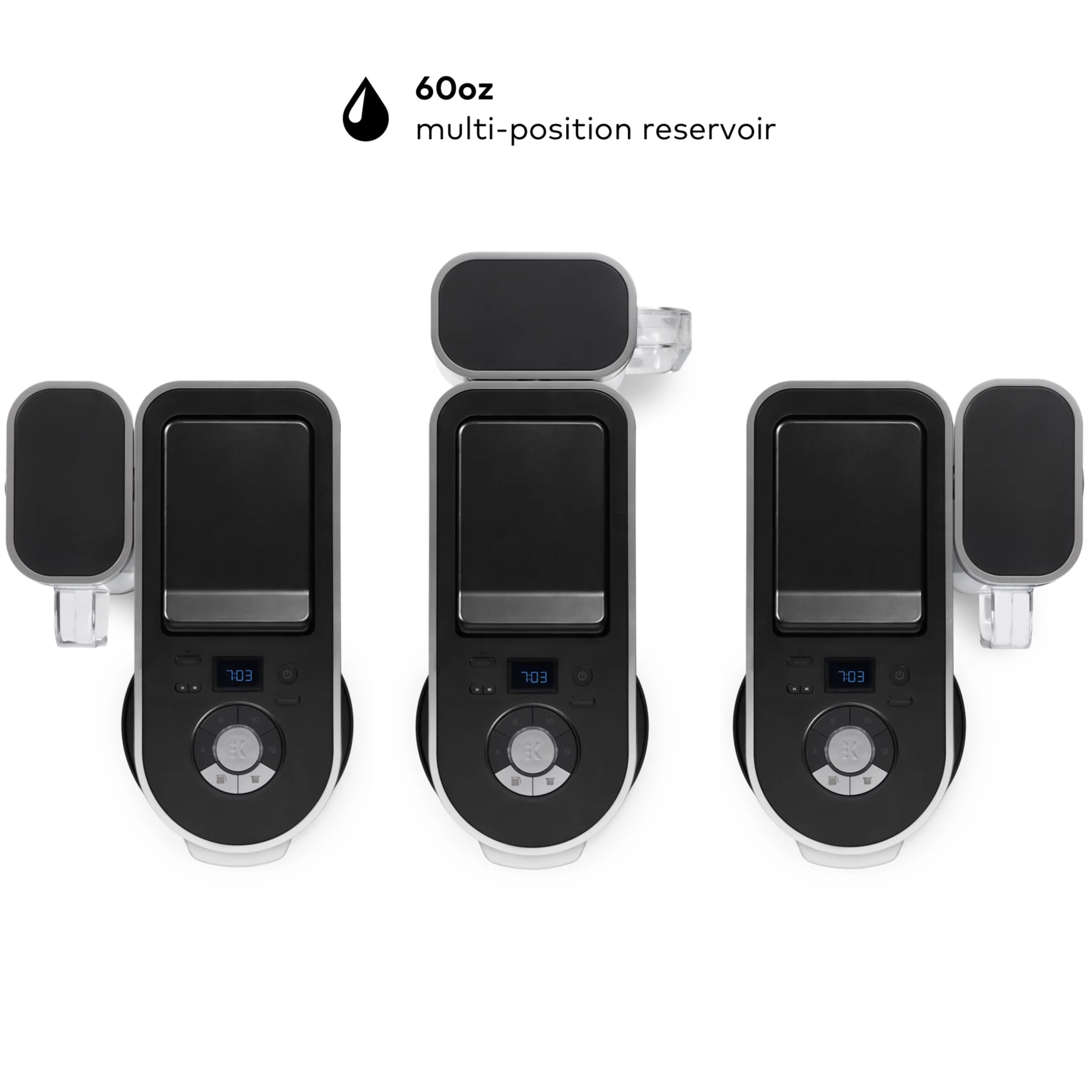 - MULTI-POSITION 60 oz. WATER RESERVOIR: Can be positioned to the right, left, or along the back of the brewer to optimize counter space.