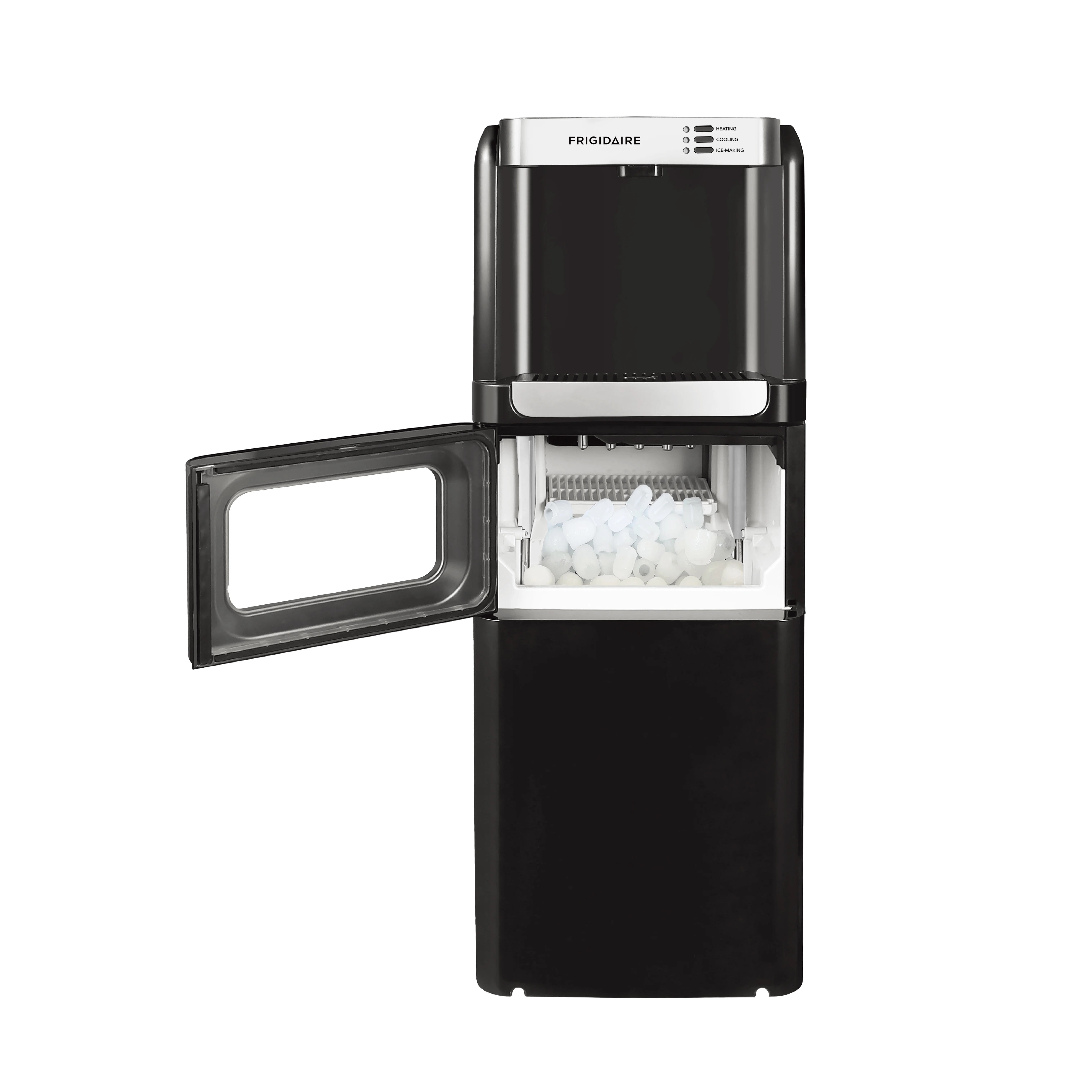 - 3-in-1 Design Water Cooler For Multi-Use: The 3-in-1 Ice and Water Machine, combines a water cooler, hot water dispenser, and built-in ice machine in one compact, space-saving unit.
