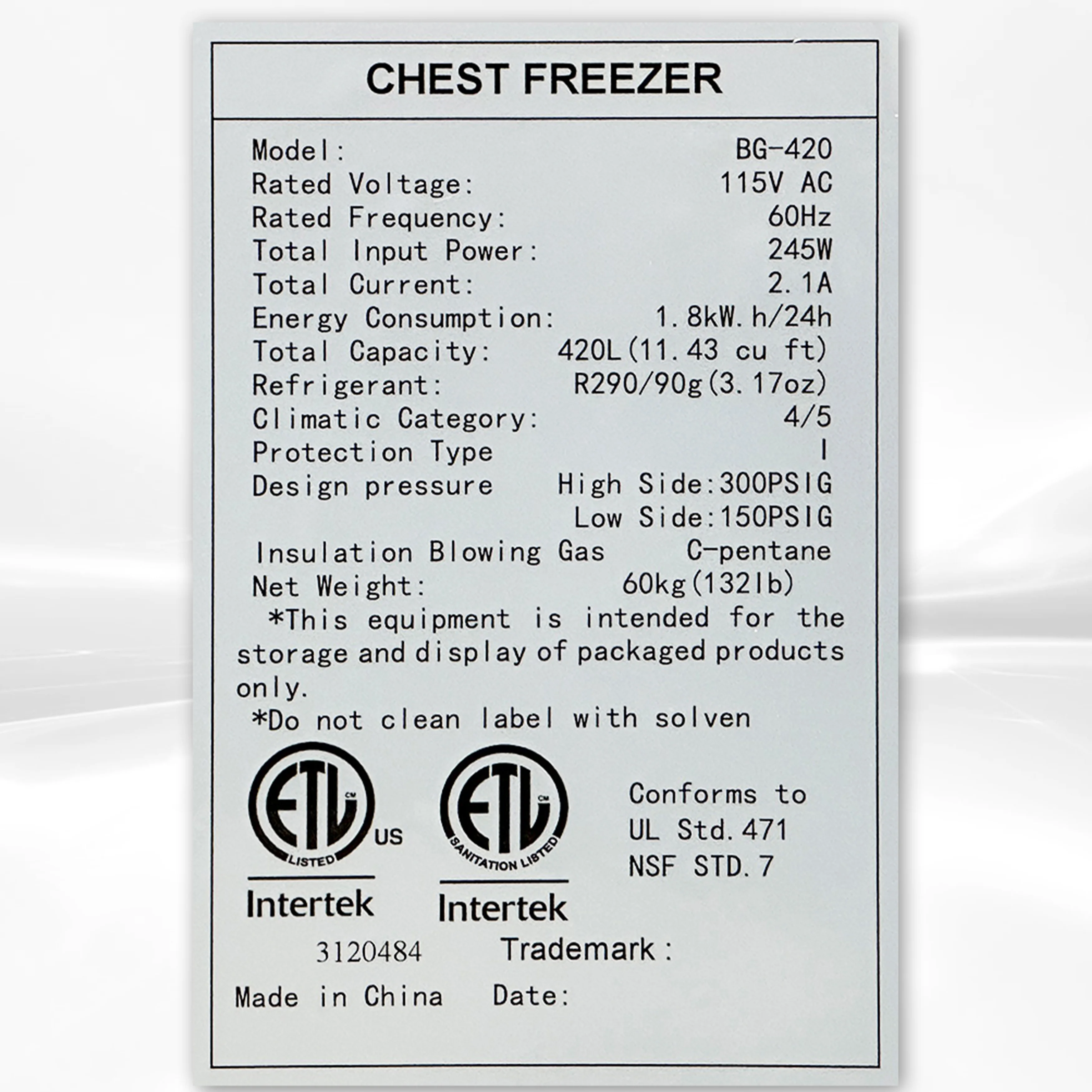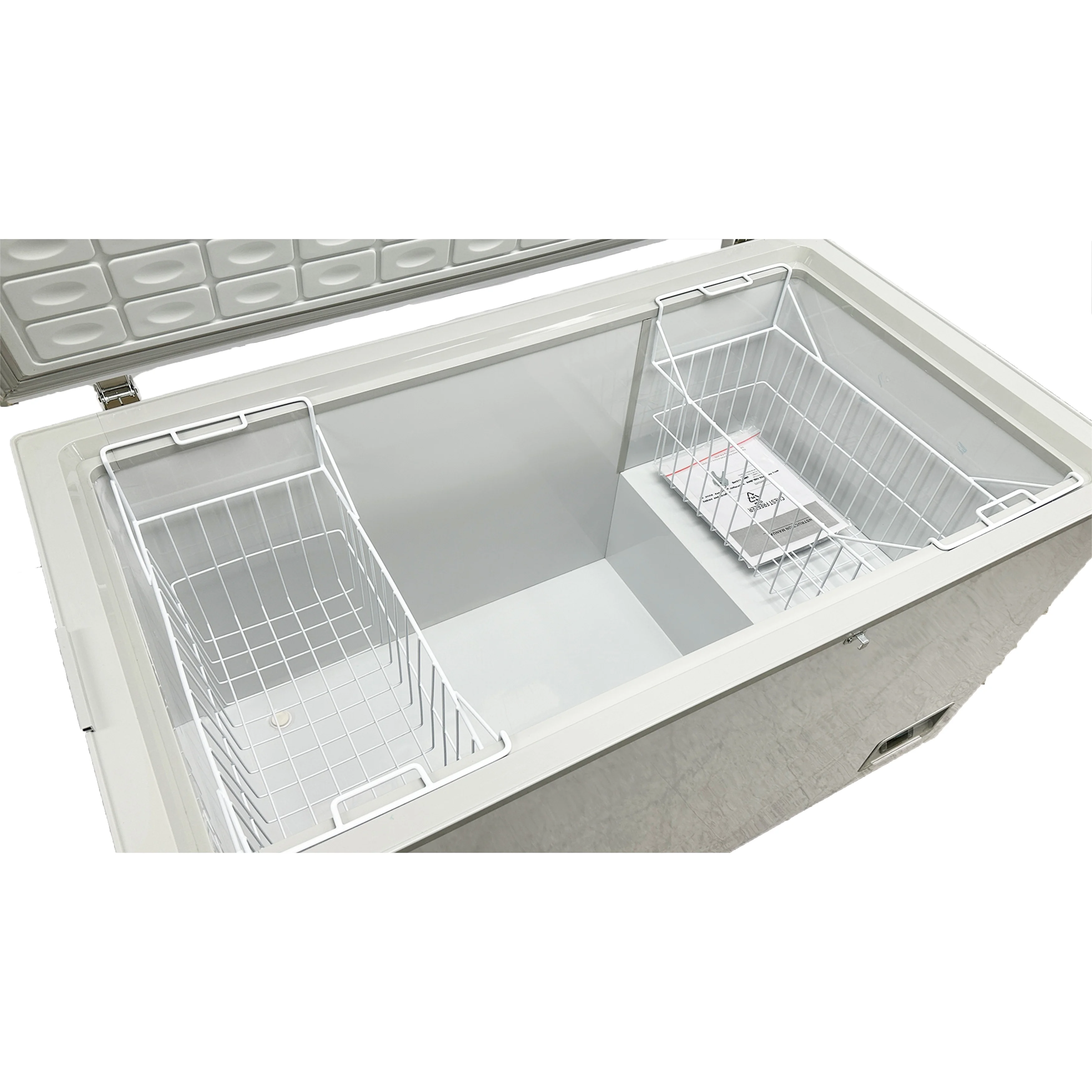 - Spacious 12 Cu.Ft. (420L) capacity chest freezer provides ample storage for all your frozen goods Top open-door design allows for easy access to your itemsAn energy-saving design with a total input power of 245W helps reduce your electricity costs