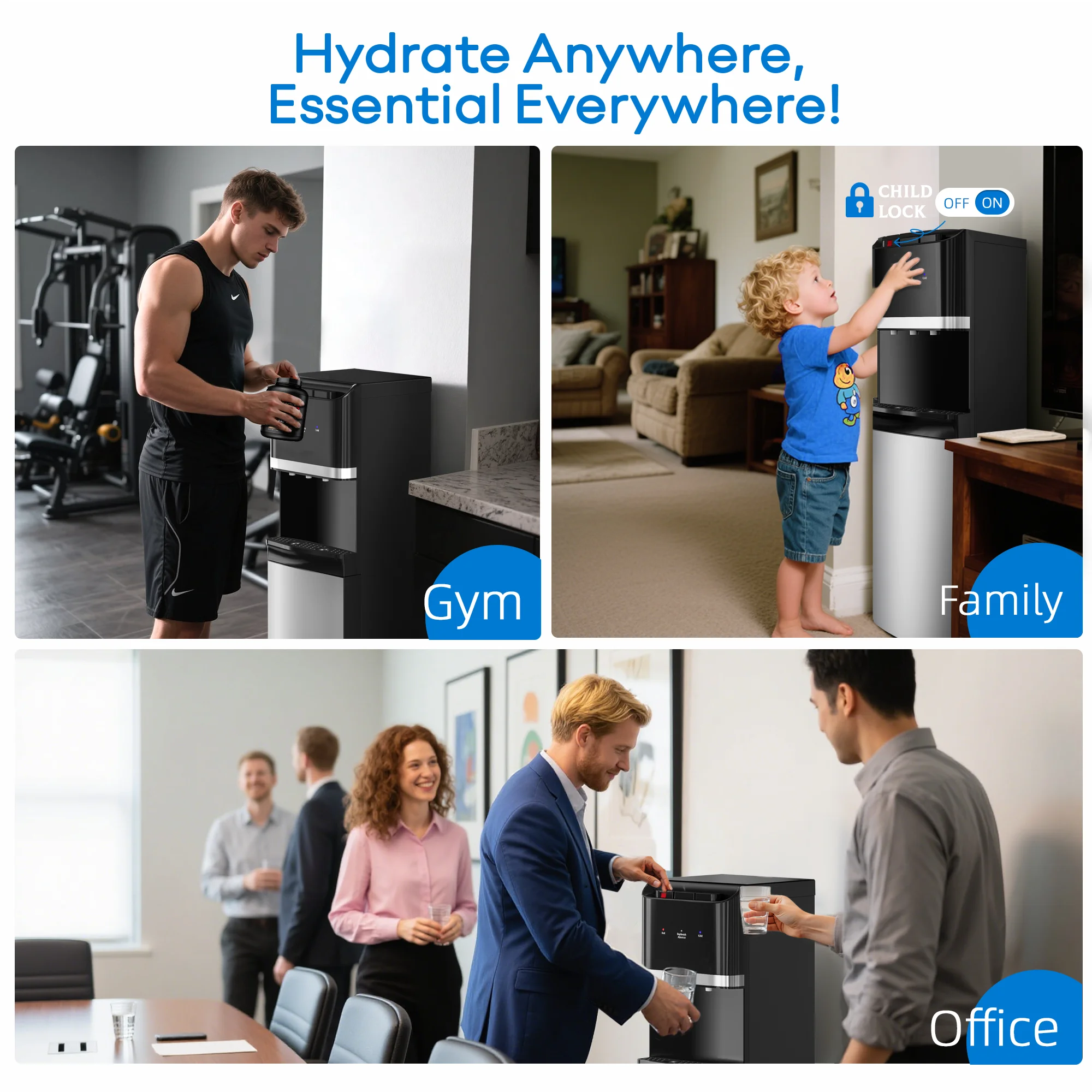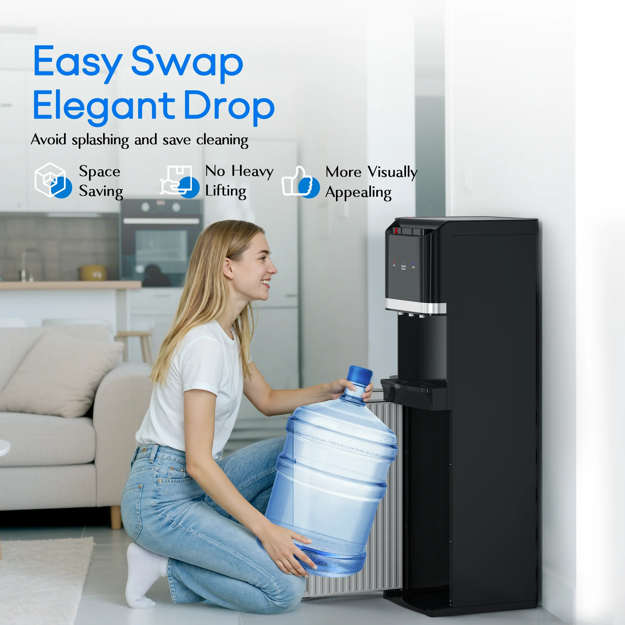 - 💧[15-SECOND BOTTOM LOADING]: Skip heavy lifting—our stainless steel cooler fits 3-5 gallon jugs with bottom loading, 3x faster than top-loading models, making bottle changes strain-free and swift.
