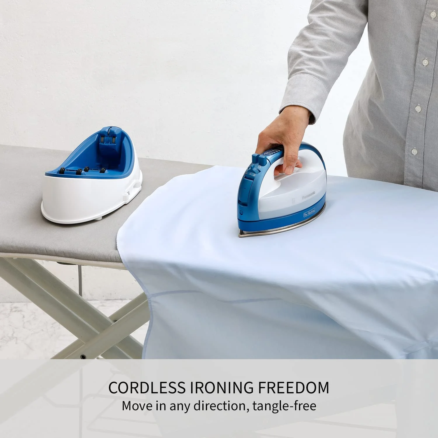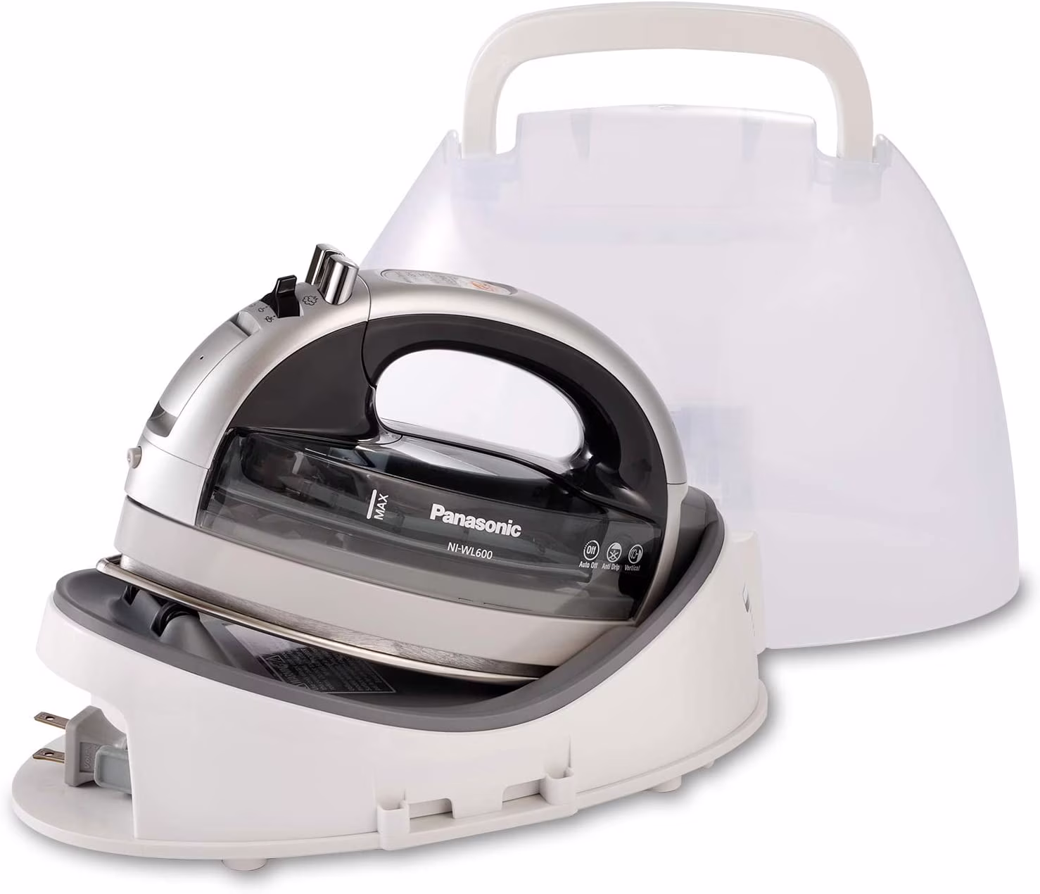 You will like the flexibility and practicality of the Panasonic NI-QL1000 Iron, whether you are a home sewer, crafter, quilter, or simply want to keep your clothing and home furnishings neat and wrinkle-free. The cordless design allows for a 360-degree range of motion, and the double-tipped soleplate is ideal for precise work. Built-in the iron is an auto shut-off that kicks in after 30 minutes. Retract the cord into the heat-resistant power base, which clips into the carrying case, for simple storage. Ultra-Smooth Glide with a Curved, Non-Stick Soleplate The nickel-coated stainless-steel soleplate gently glides over clothes and treasured handmade pieces; a nonstick-coated surface ensures that glue is removed easily. With a nonstick soleplate combined with the powerful vertical steamer, you get an ironing experience unlike any other. Steam vents along the entire soleplate allow for even, powerful steaming to rid curtains or hanging garments of wrinkles without drips. There's also an anti-calc system to protect your fabrics from stains. Natural 360 �� Movement with Precision Tips The Freestyle QL1000 Iron moves effortlessly in any direction to quickly cover even large surface areas. Plus, the double-tipped soleplate makes detail work a snap. Safe and Portable, with Go-Anywhere Case Bring your Panasonic Iron along to quilting and sewing meet-ups. When not in use, you can store it neatly anywhere at home. The cord retracts into the power base, which snaps into the lightweight, heat-resistant carrying case Easy Water Tank Re-fill Panasonic's irons have a generous reservoir tank that allows you to keep ironing longer. You can use a measuring cup to fill the tank or hold it under a faucet; make sure the iron is unplugged before you fill it. These irons are meant to be used with regular tap water. If you have hard water, you may want to use bottled water.N/A