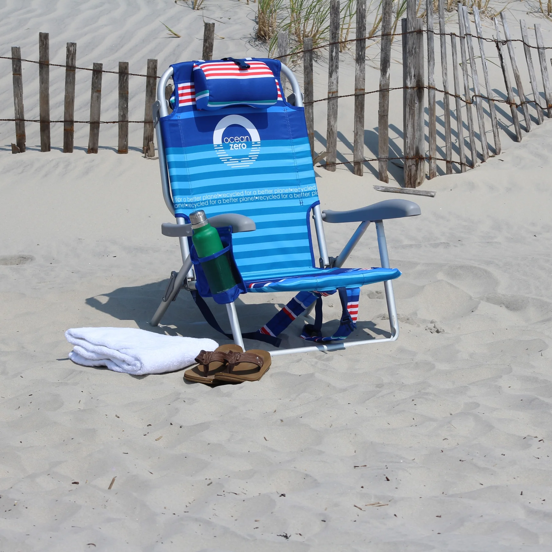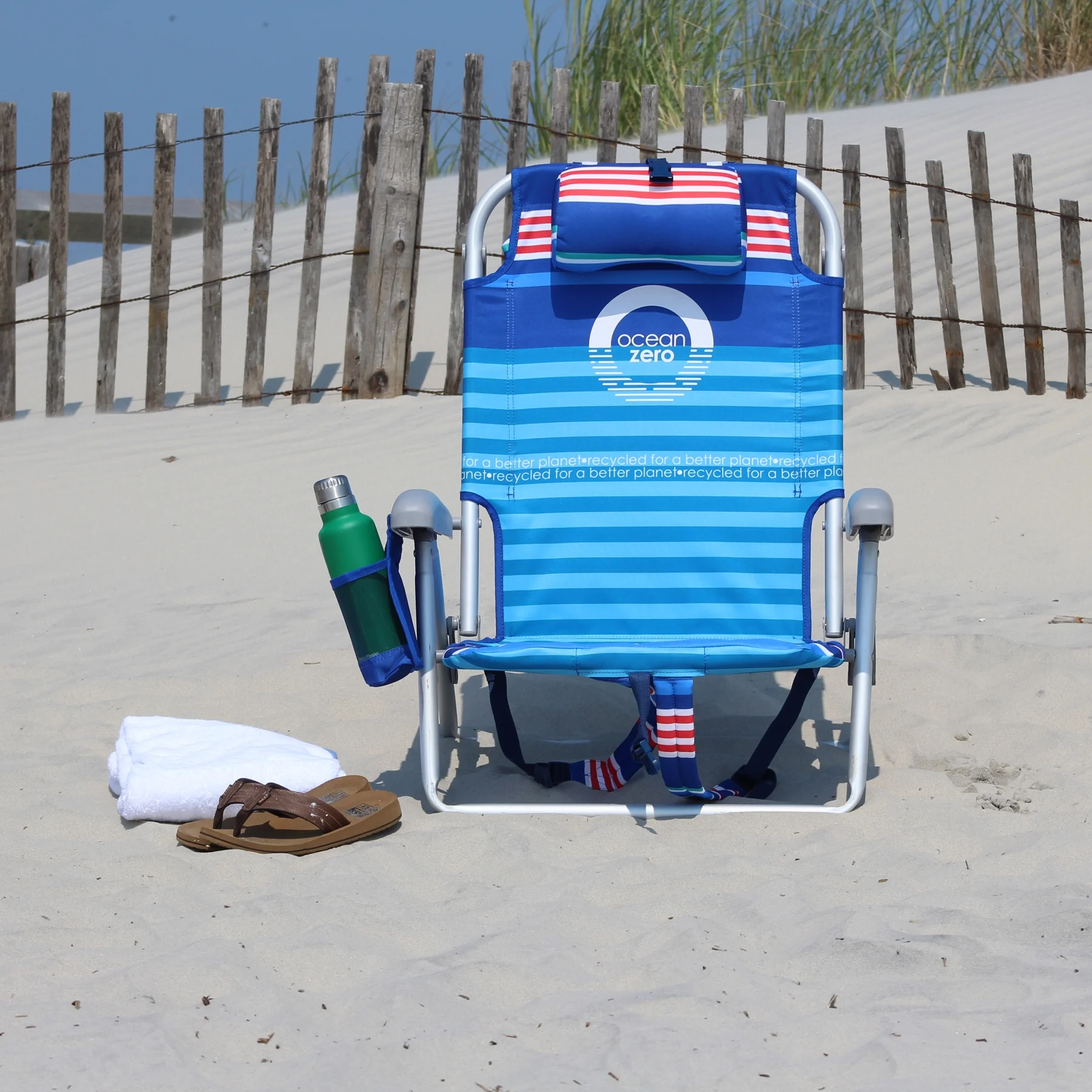 - For each Ocean Zero beach chair or umbrella made approximately 2 pounds of plastic is reclaimed and recycled