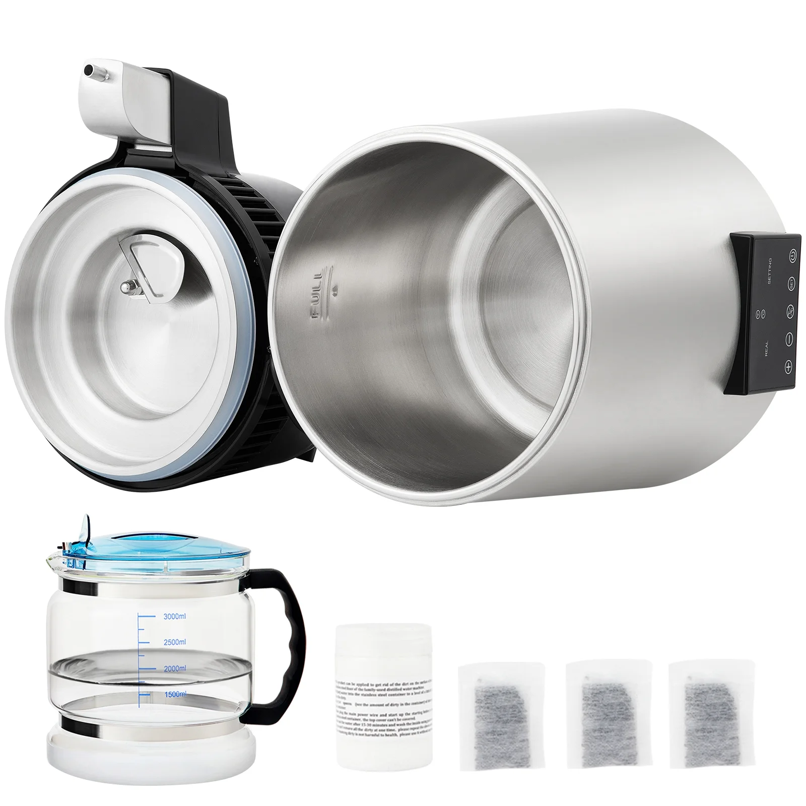- User-Friendly Accessories: To enhance your user experience, we provide a bottle of cleaning powder and 3 replaceable carbon packages. Cleaning the internal tank is hassle-free with the cleaning powder. Leaving some water at the bottom after each distillation can minimize limescale buildup. Installing the carbon pack at the water outlet further purifies the distilled water and improves its taste.