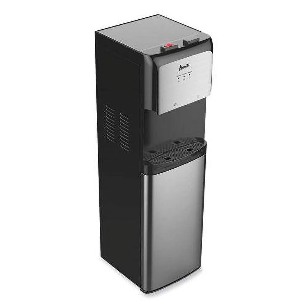 Save time and money with this UV disinfecting light dual tap water cooler from Avanti. With a sleek stainless steel finish, this is the perfect water cooler for the office, kitchen, worksite, warehouse, gym, or anywhere you want to add access to water. Enjoy instant access to a refreshing glass of cold drinking water or easily prepare your favorite hot beverage, soup, or oatmeal from the dual faucet dispenser. No more lifting heavy water jugs, this bottom loading water dispenser accommodates three- or five-gallon water bottles, helping reduce waste from single-serve bottles.