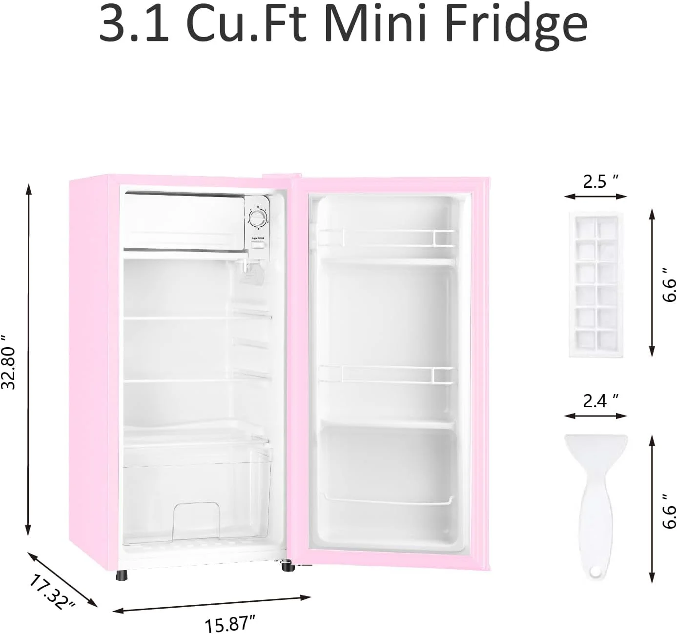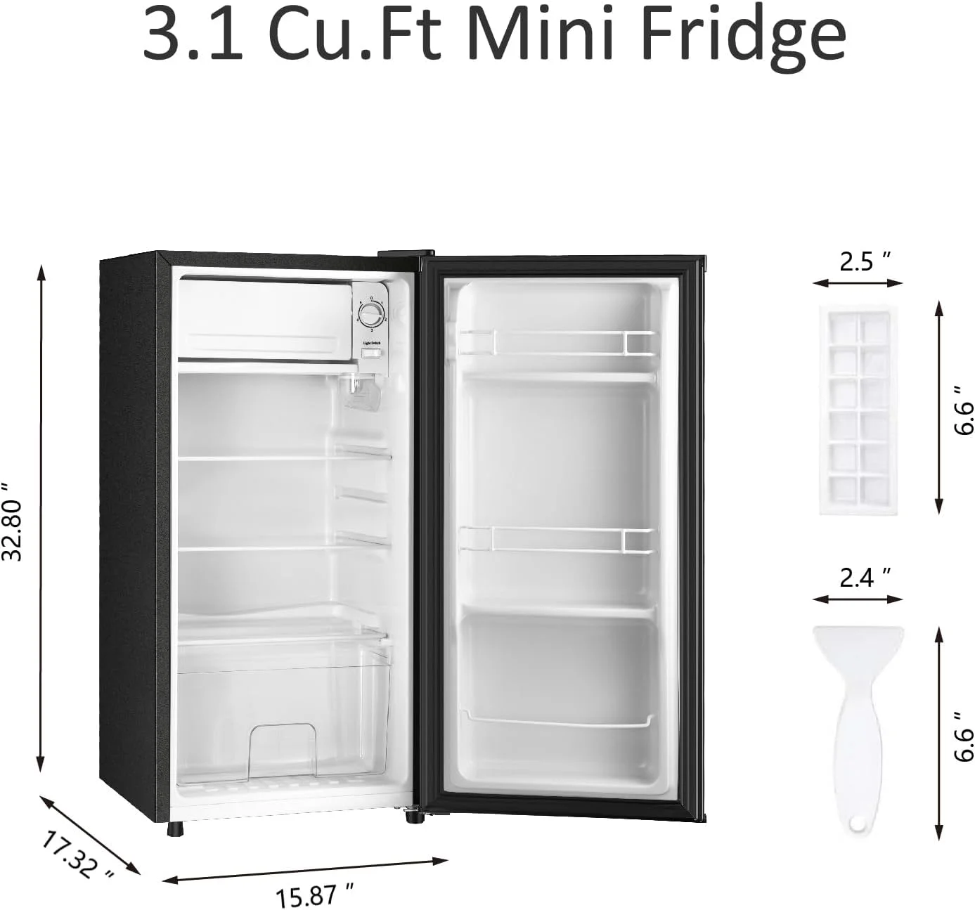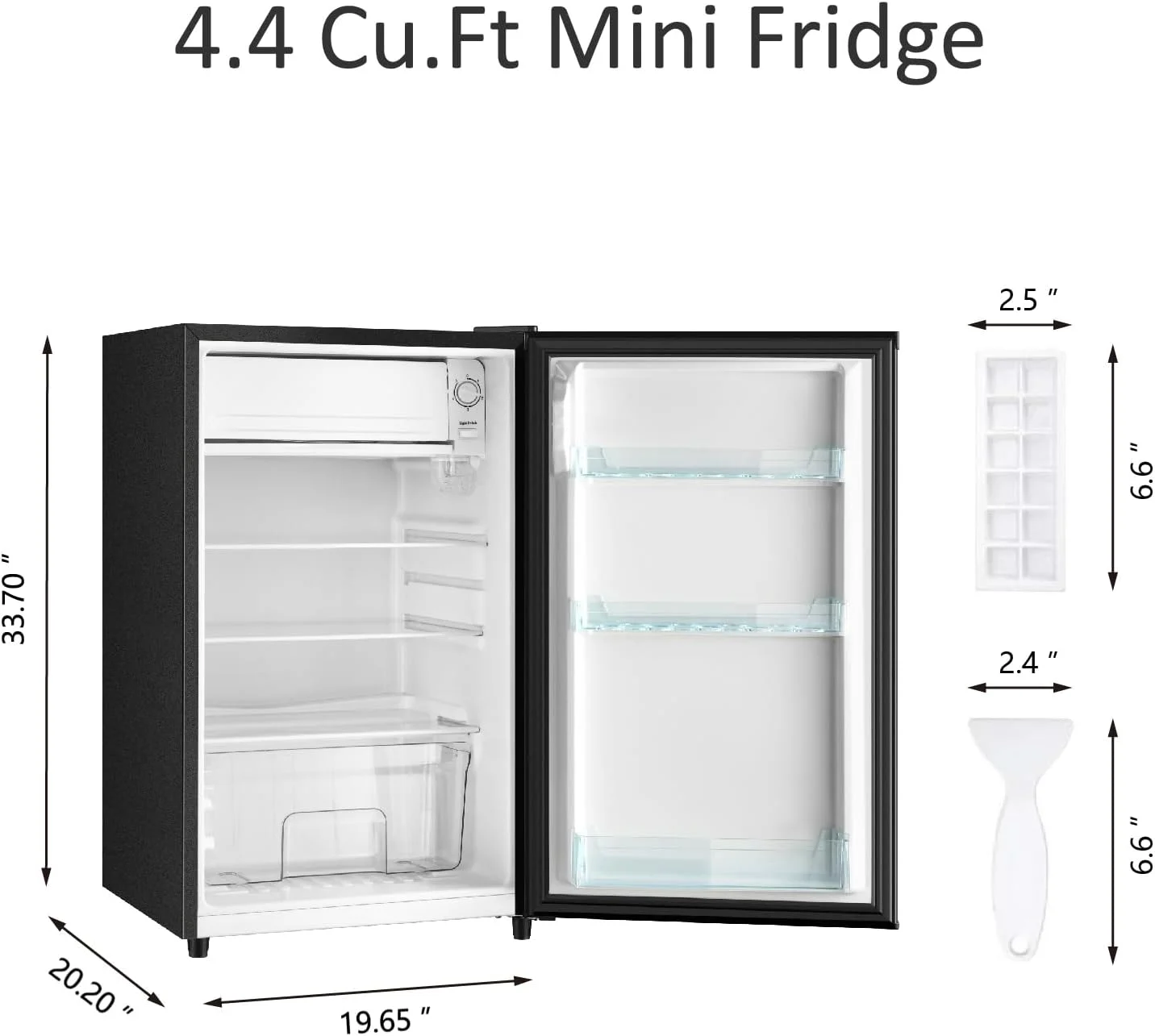 - Includes accessories: Ice tray for homemade ice cubes + de-icer scraper for frost maintenance.