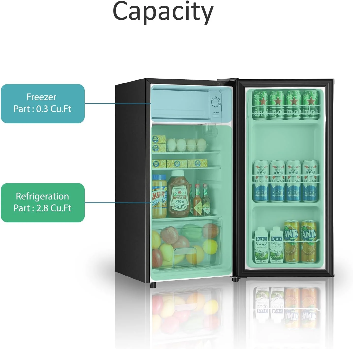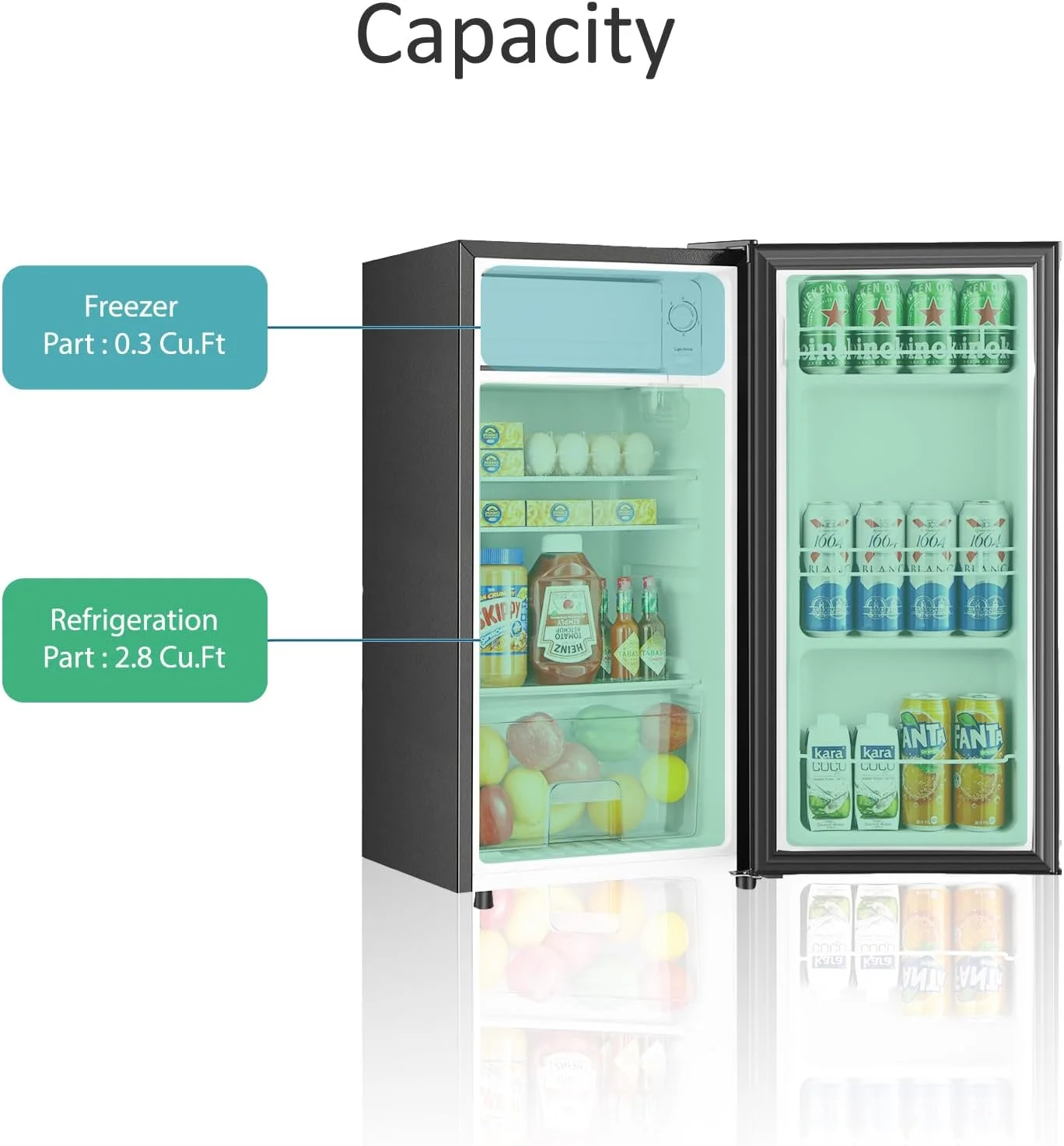 - 2.8 Cu.Ft fridge + 0.3 Cu.Ft freezer �C ideal for snacks, drinks, and ice trays.