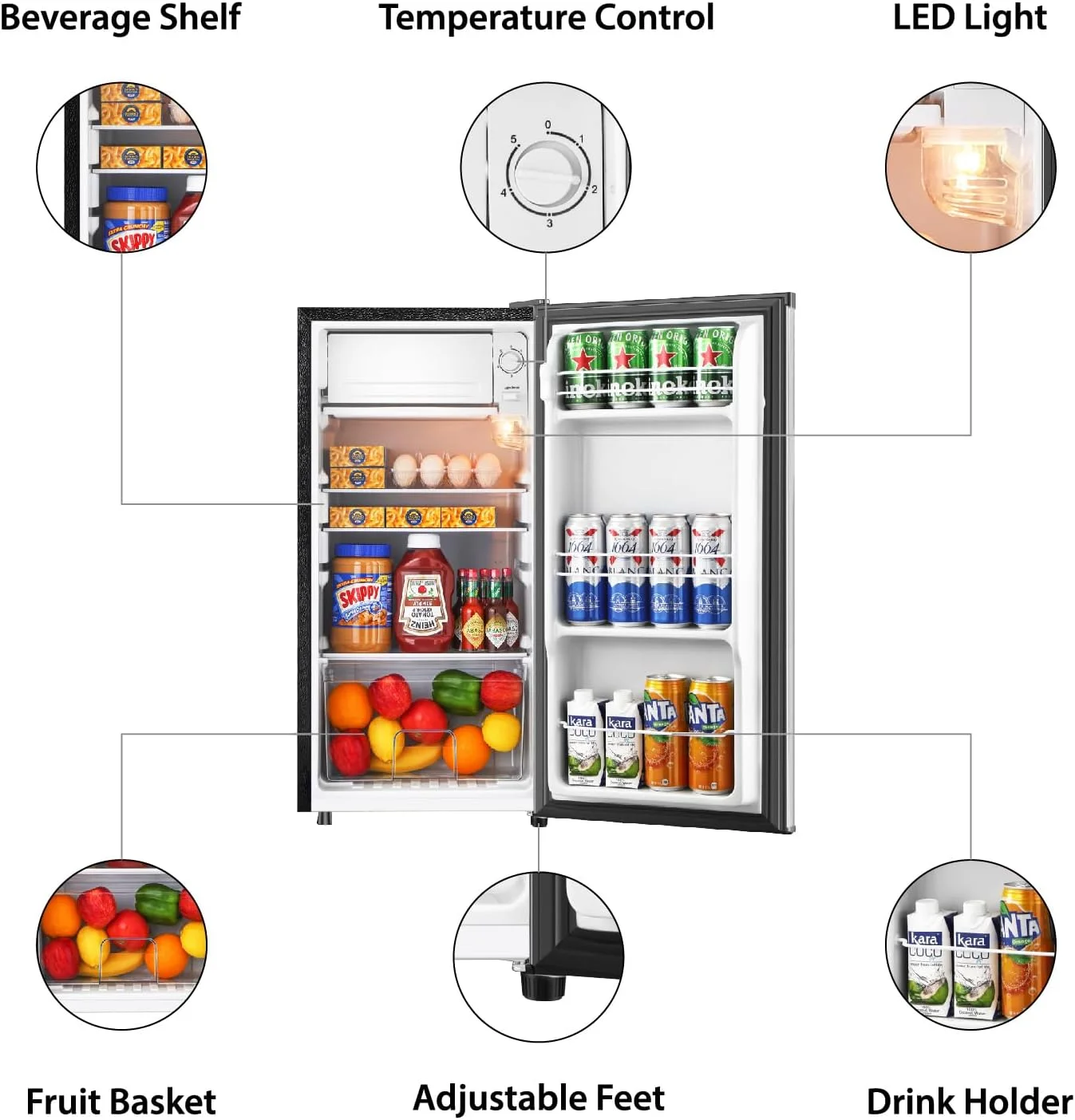 Take command with 5 precise temperature settings (32��F-50��F). The freezer zone keeps ice cream solid, while the main chamber chills up to 87 cans* using optimized airflow. No more warm sodas or melted treats!