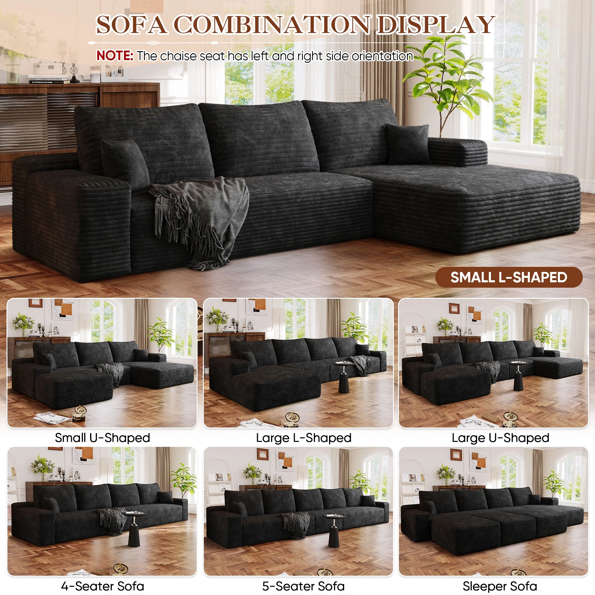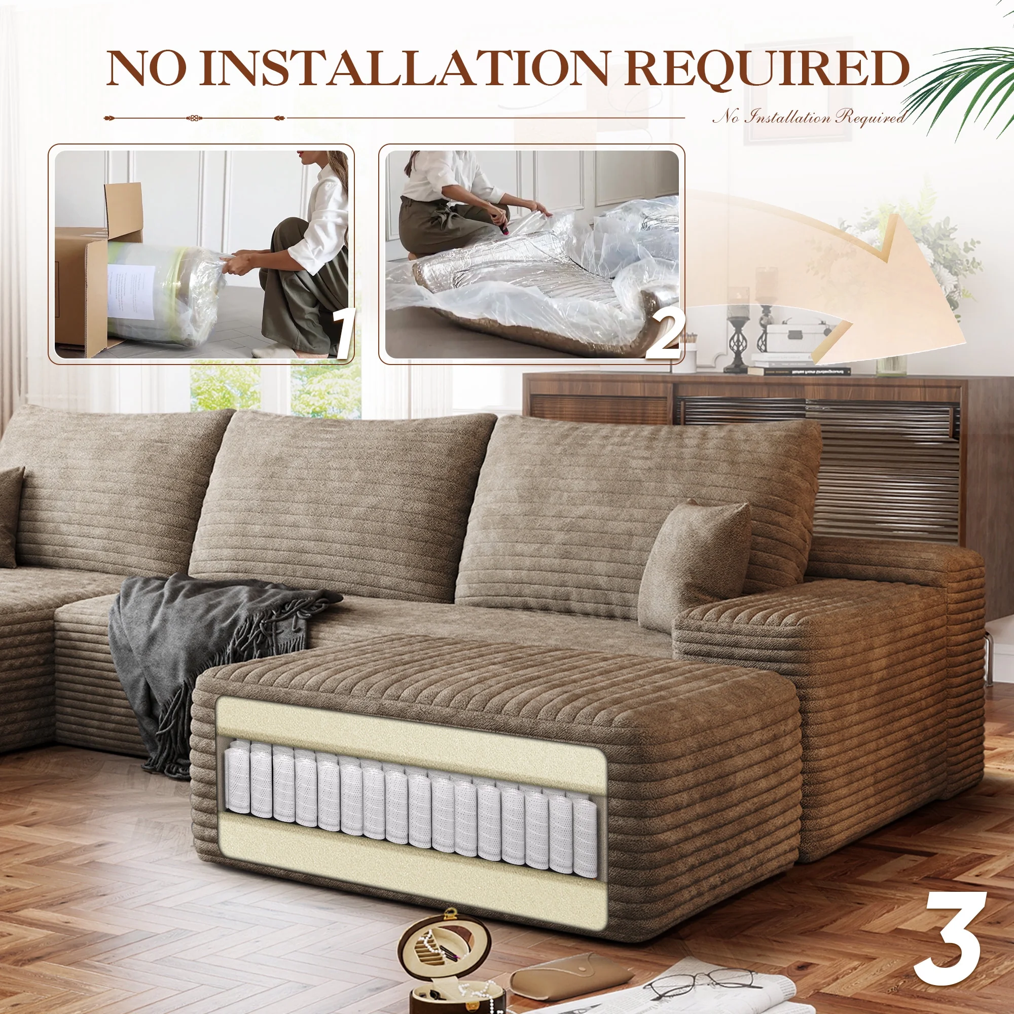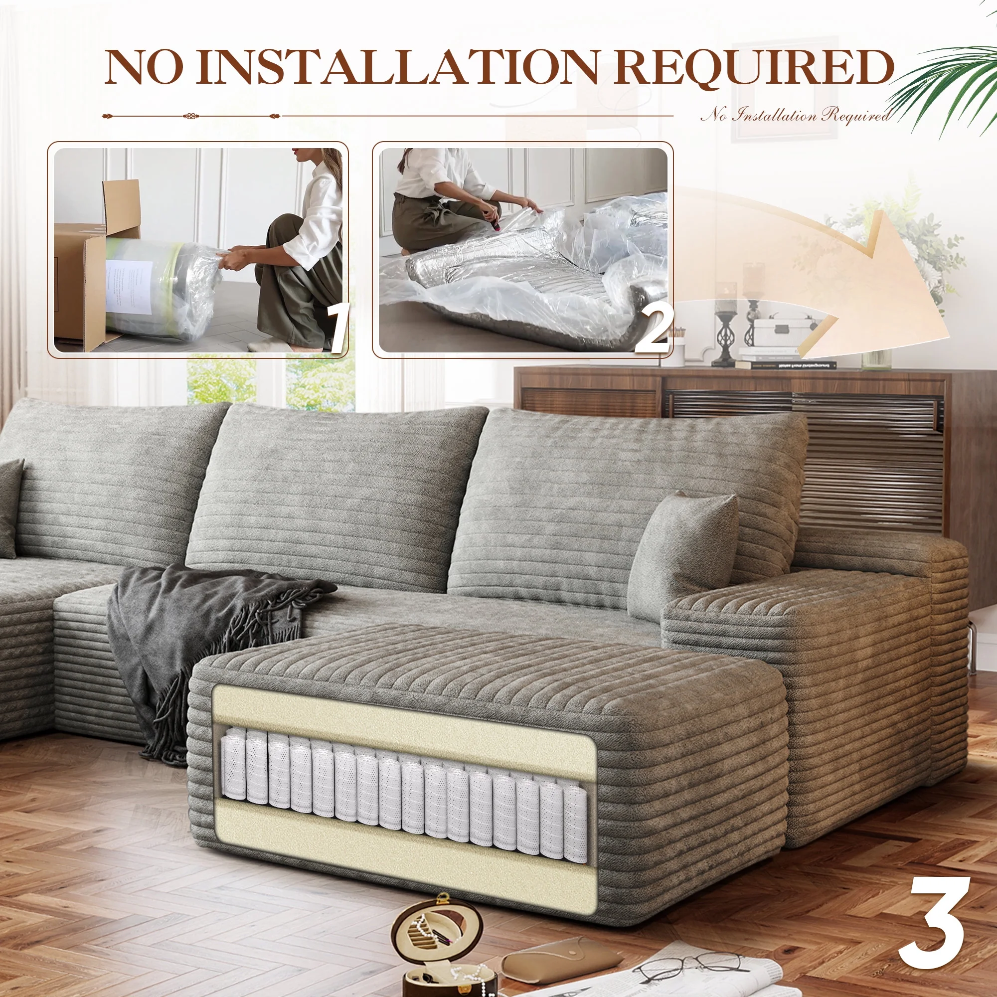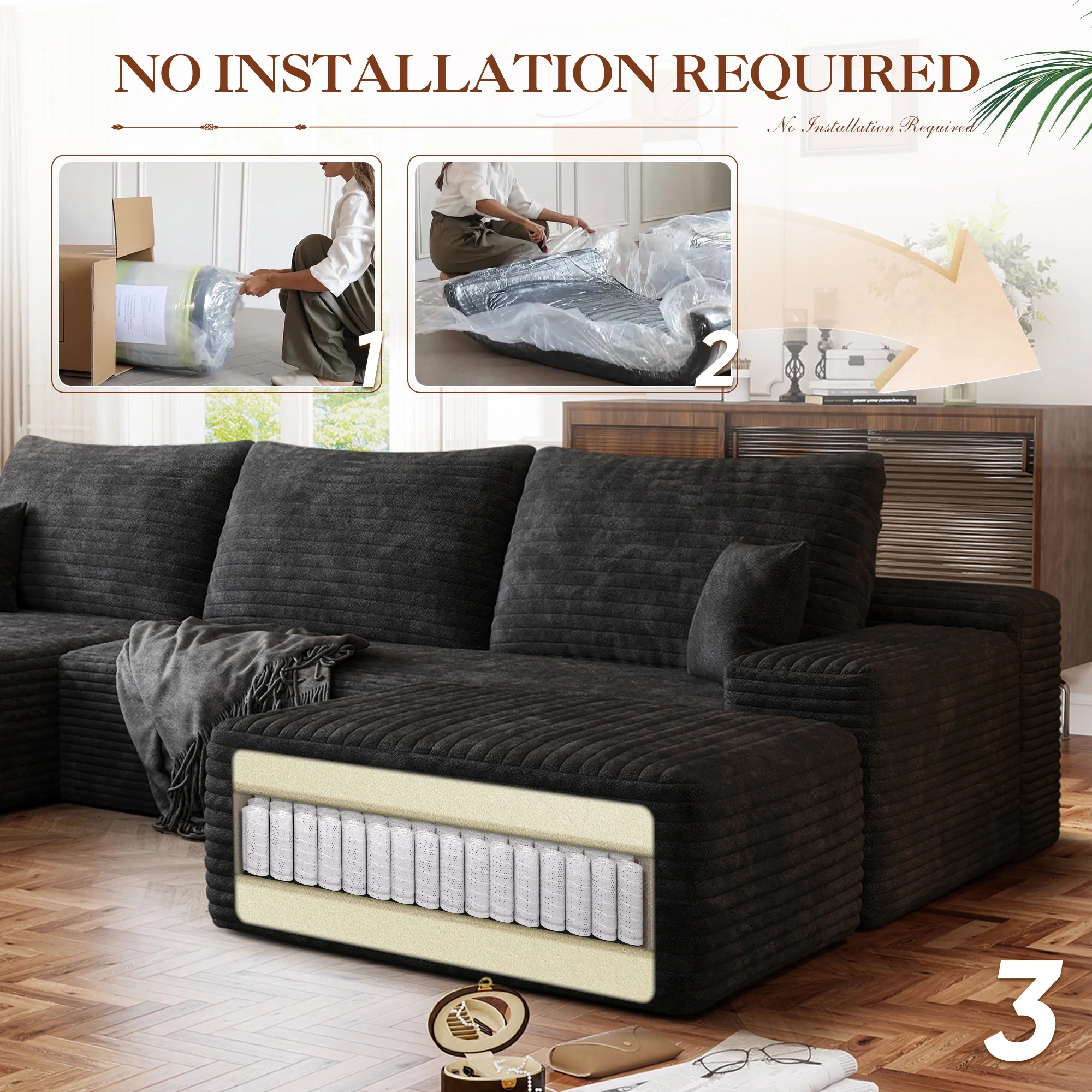 Ditch assembly stress��unbox your modular sectional sofa and dive into cloud-like comfort! This U-shaped sofa features plush corduroy fabric with a silky feel that resists daily wear and tear. It is made of full high rebound foam. Its modular design allows you to take it apart or use it in combination at will, making it superior to traditional sofas.