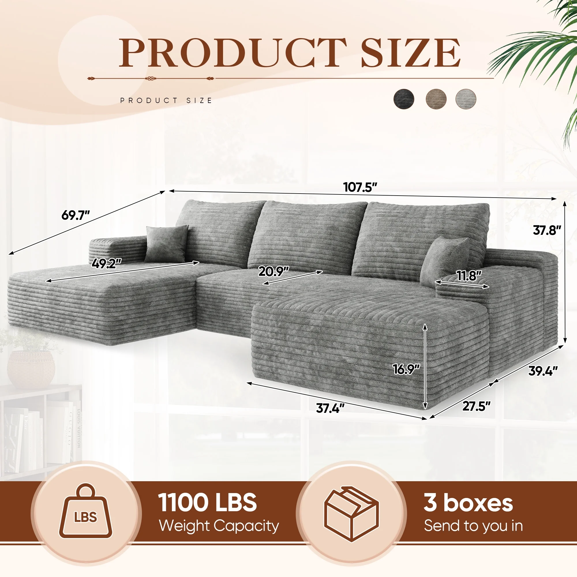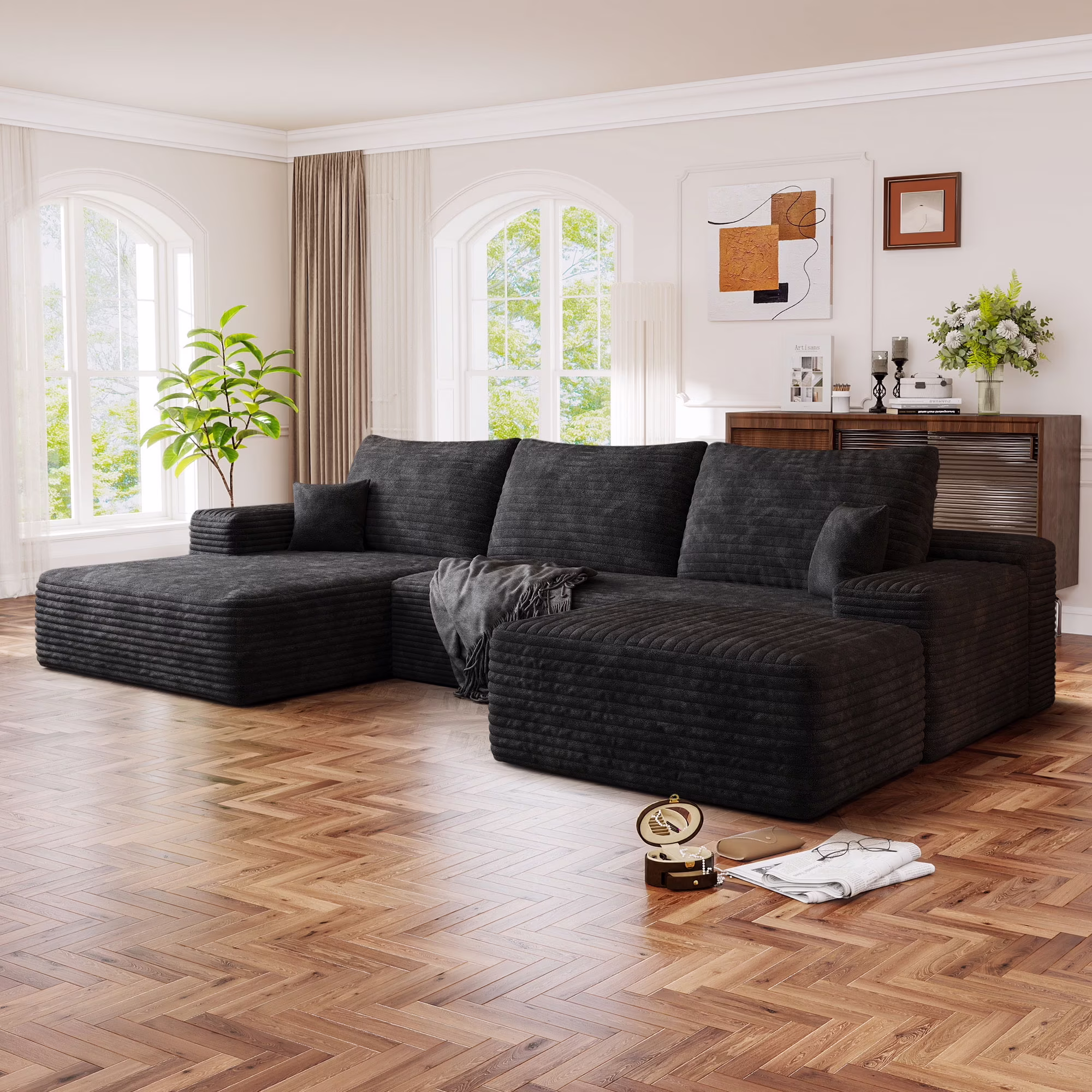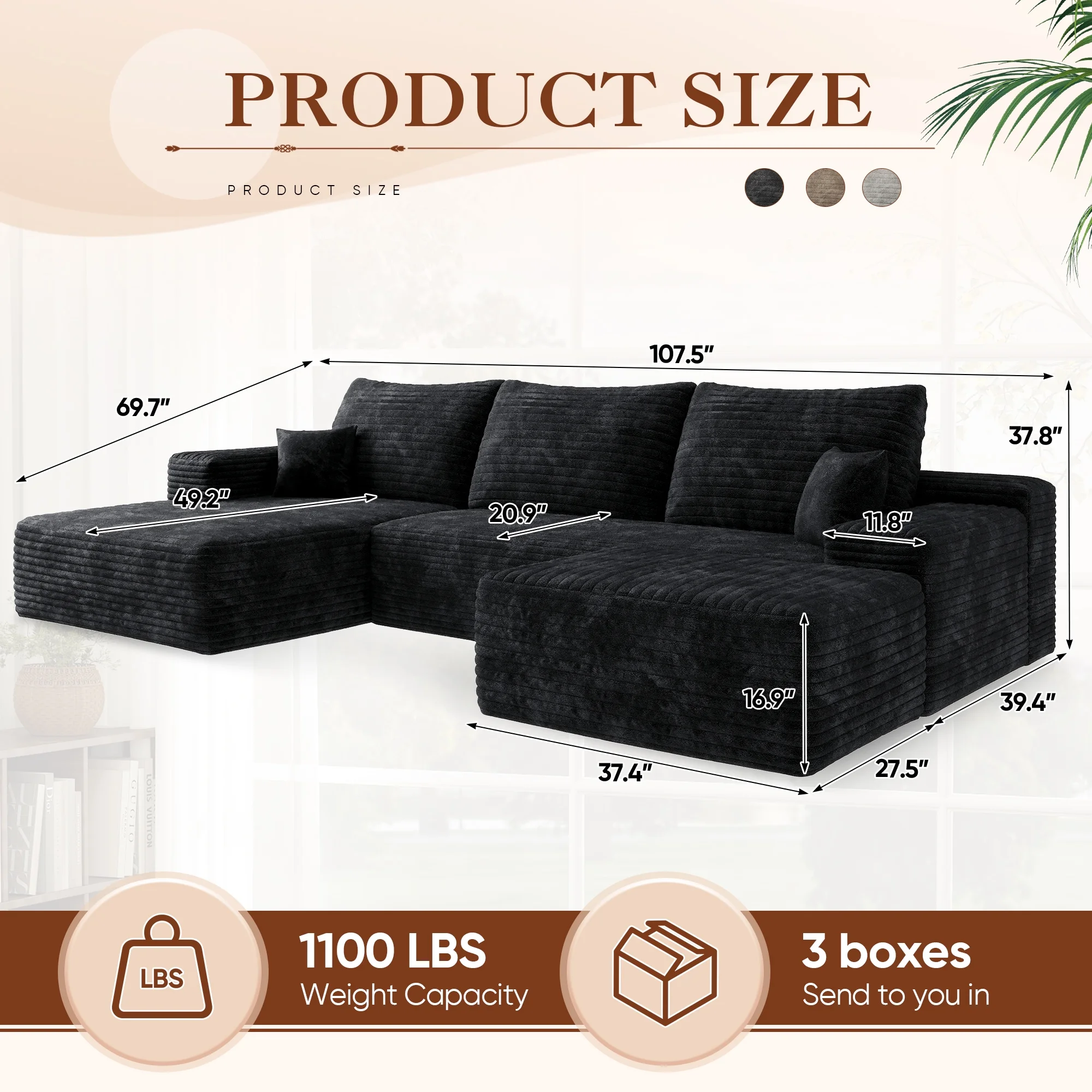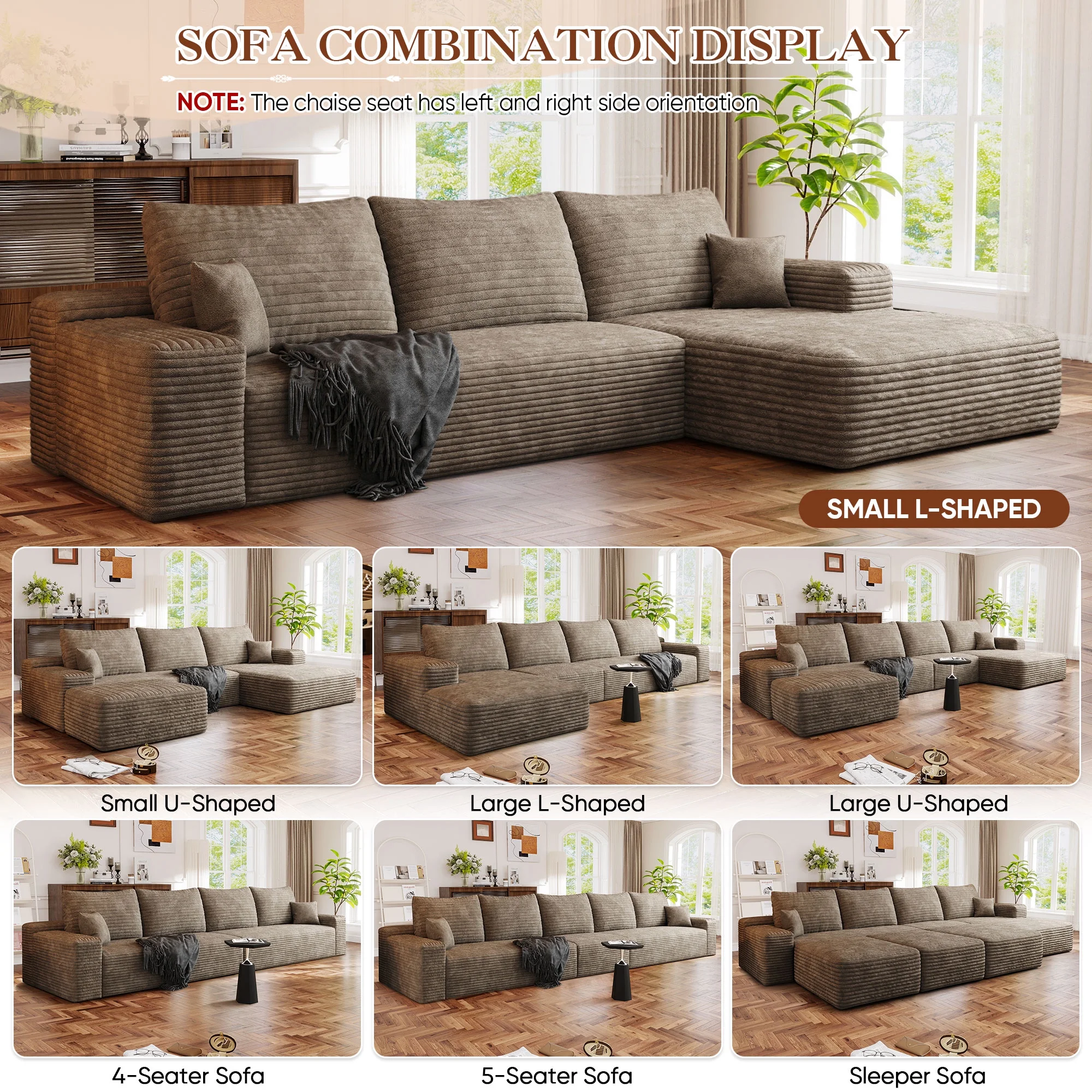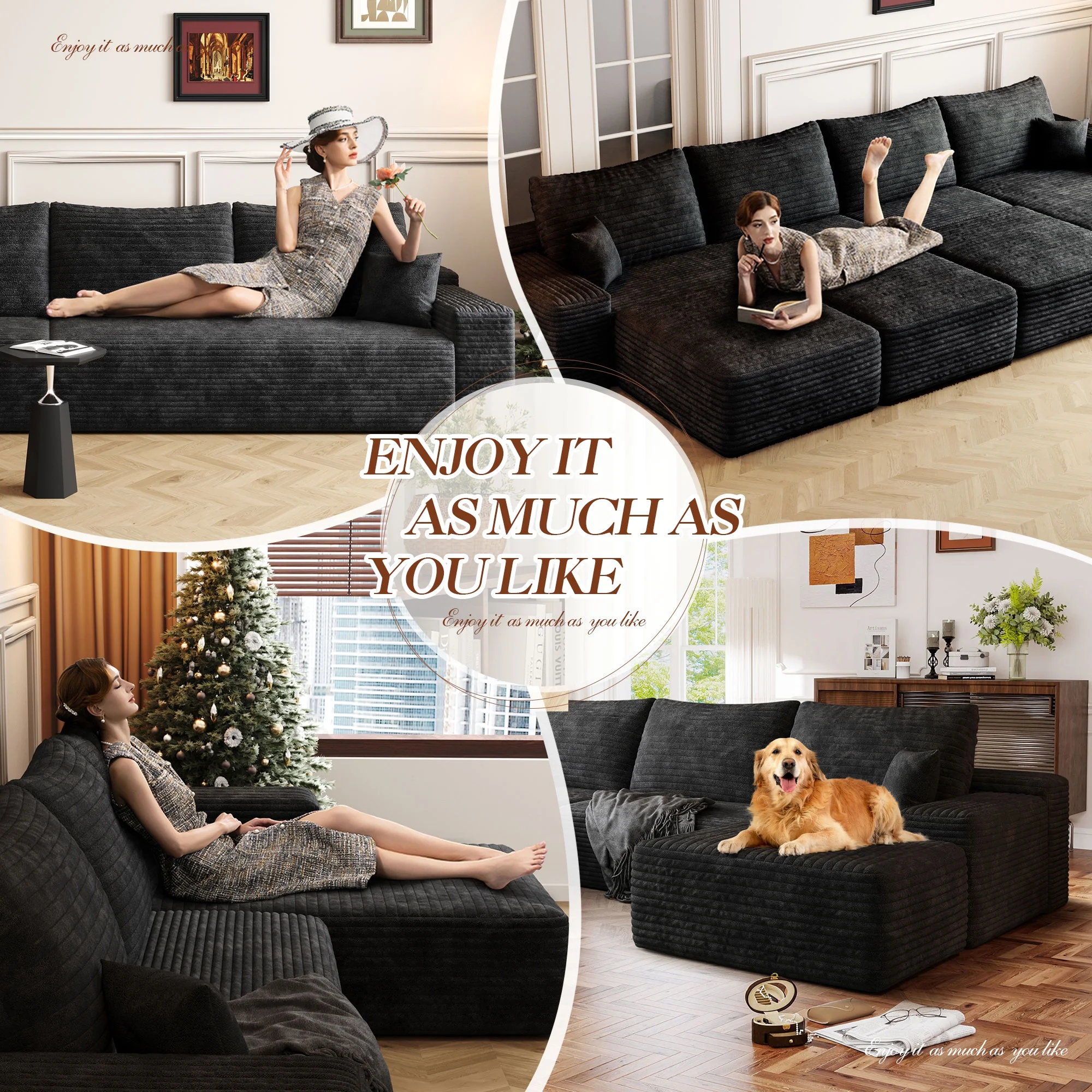 Ditch assembly stress��unbox your modular sectional sofa and dive into cloud-like comfort! This U-shaped sofa features plush corduroy fabric with a silky feel that resists daily wear and tear. It is made of full high rebound foam. Its modular design allows you to take it apart or use it in combination at will, making it superior to traditional sofas.