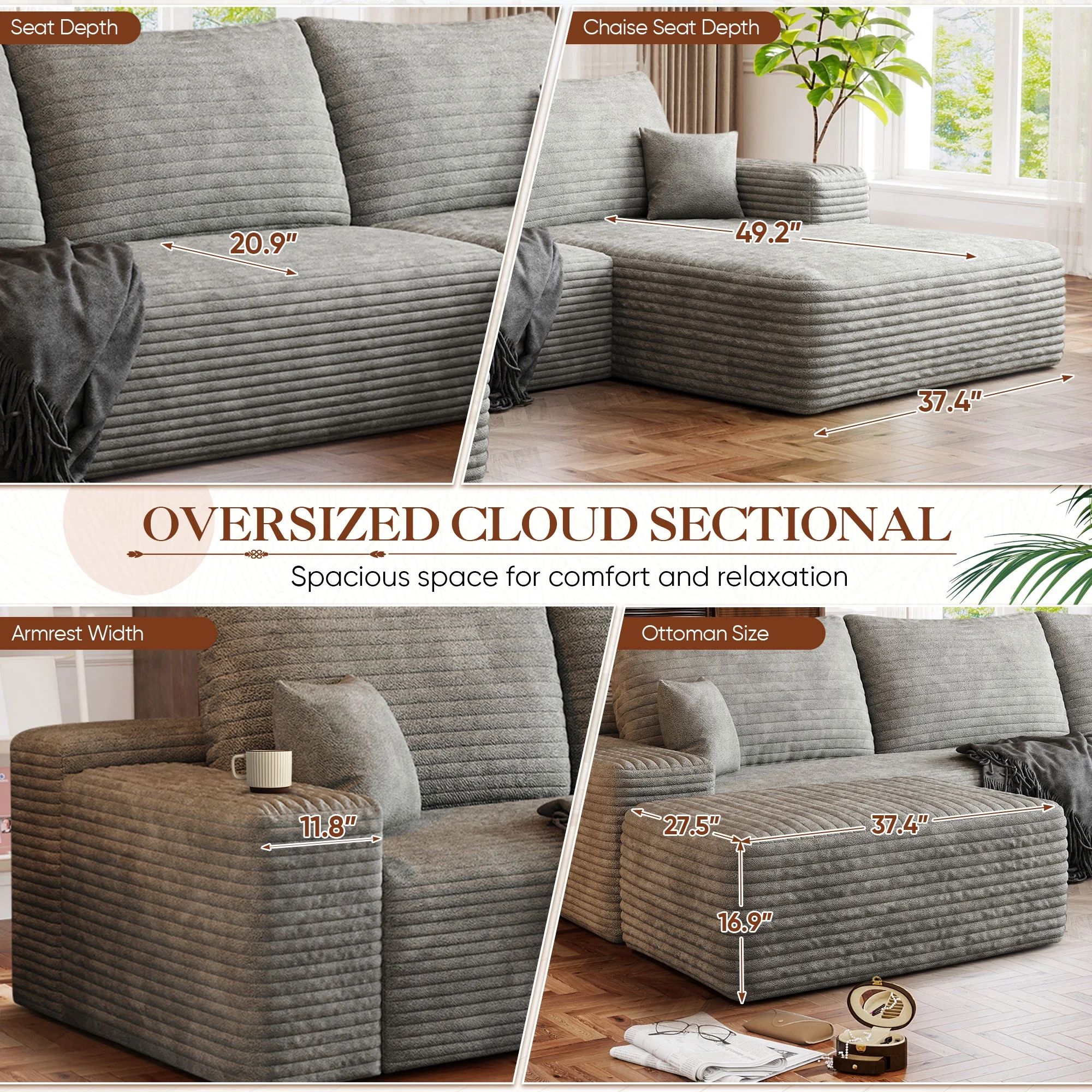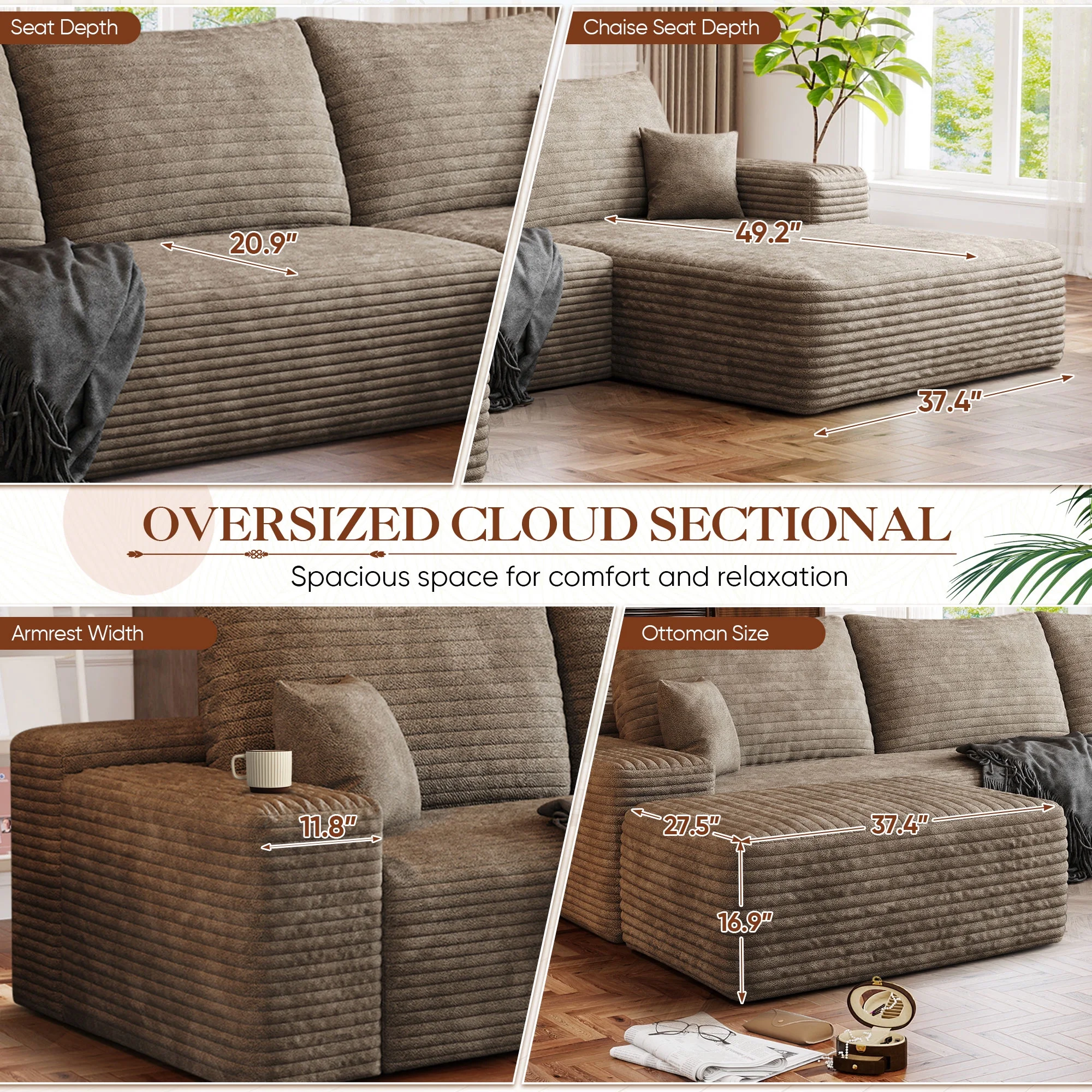 - The combination of soft corduroy fabric and high rebound foam padding delivers cloud-like comfort all day long. The fabric��s unique texture enhances this cloud sectional sofa��s elegance, pampering you in everyday luxury.
