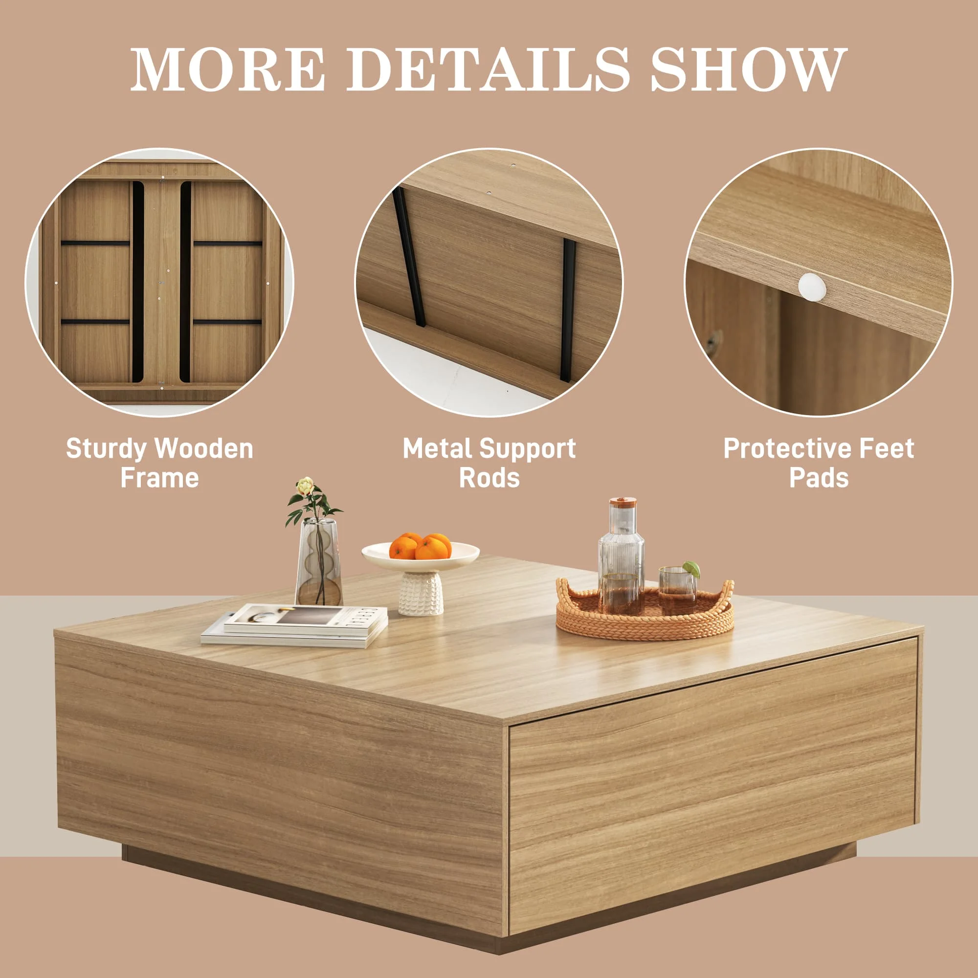<p>With 2 Spacious Drawers, Blotout multifunctional coffee table can store daily needs, pretty and practical. Minimalist wooden style combines simple appeal with a clean modern design, Blotout square coffee table adds a touch of elegance to your living room space.</p>