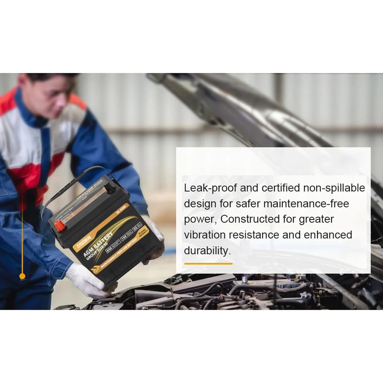 - Advanced AGM Technology: Features absorbent glass mat design for leak-proof, maintenance-free, and vibration-resistant durability.