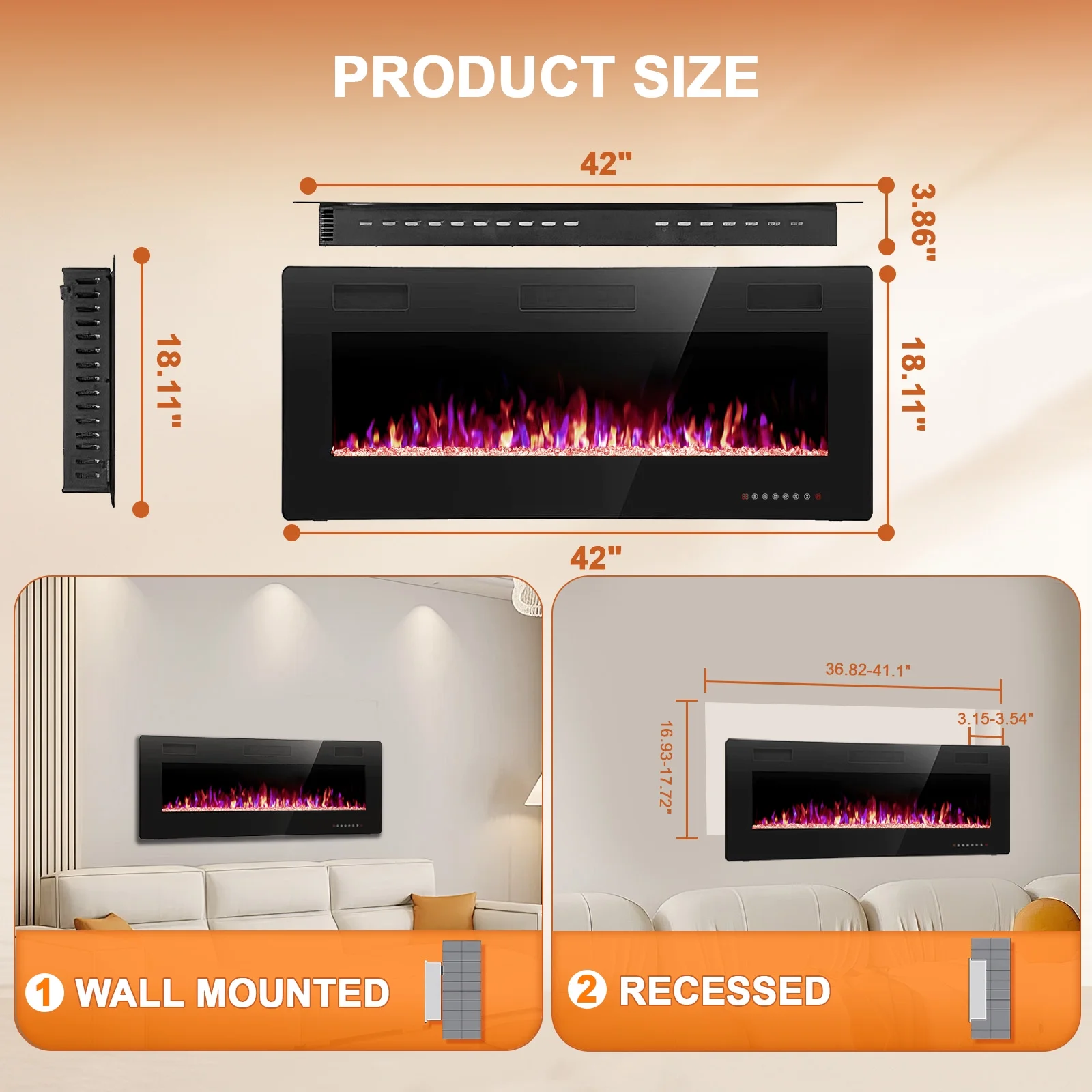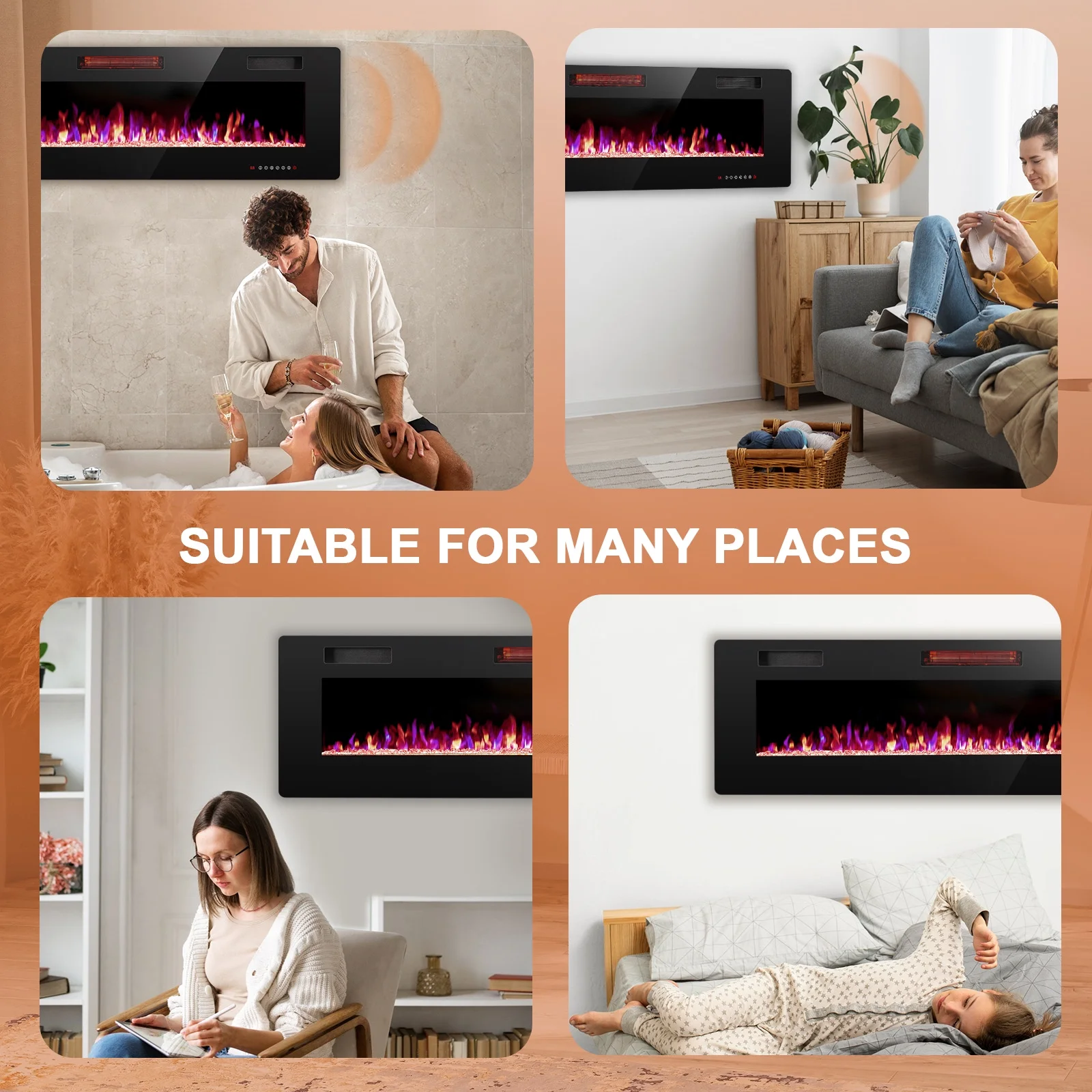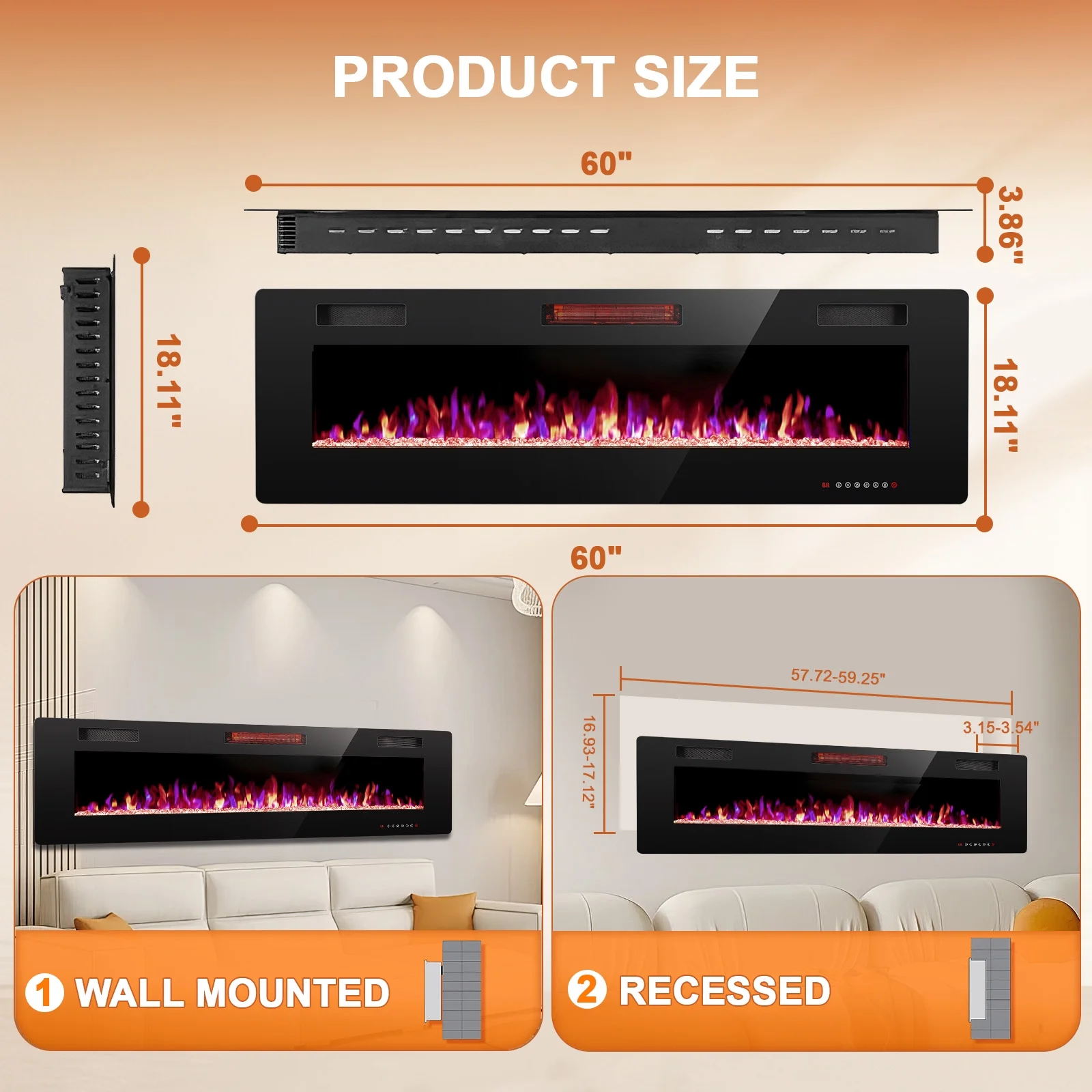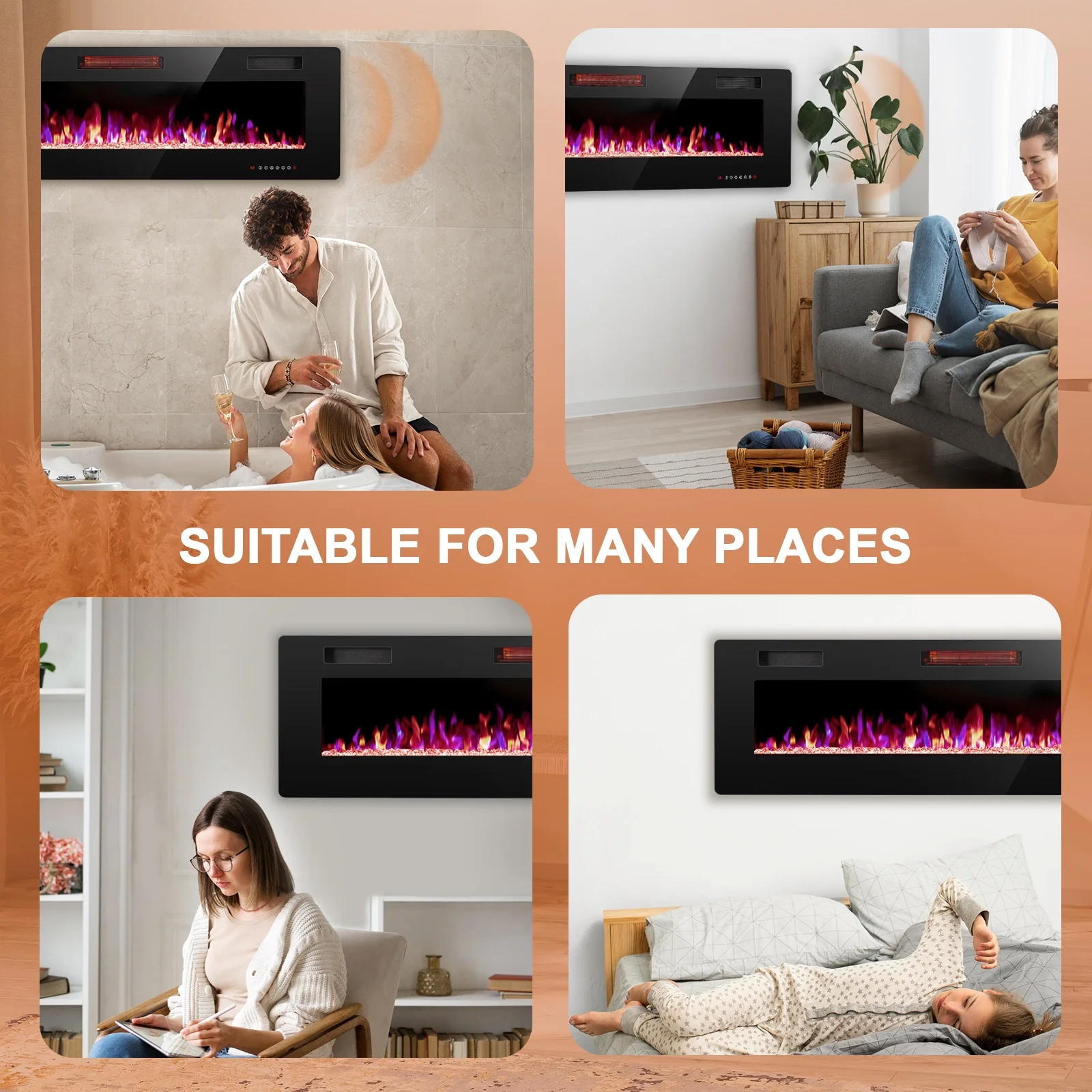 The 5th flame brightness level allows you to control the changes of light and shadow at will. Equipped with a remote control, you can easily operate on the sofa. ETL certification and overheating protection ensure safe use. Black glass appearance with timer function adds modern beauty and convenience to the home.