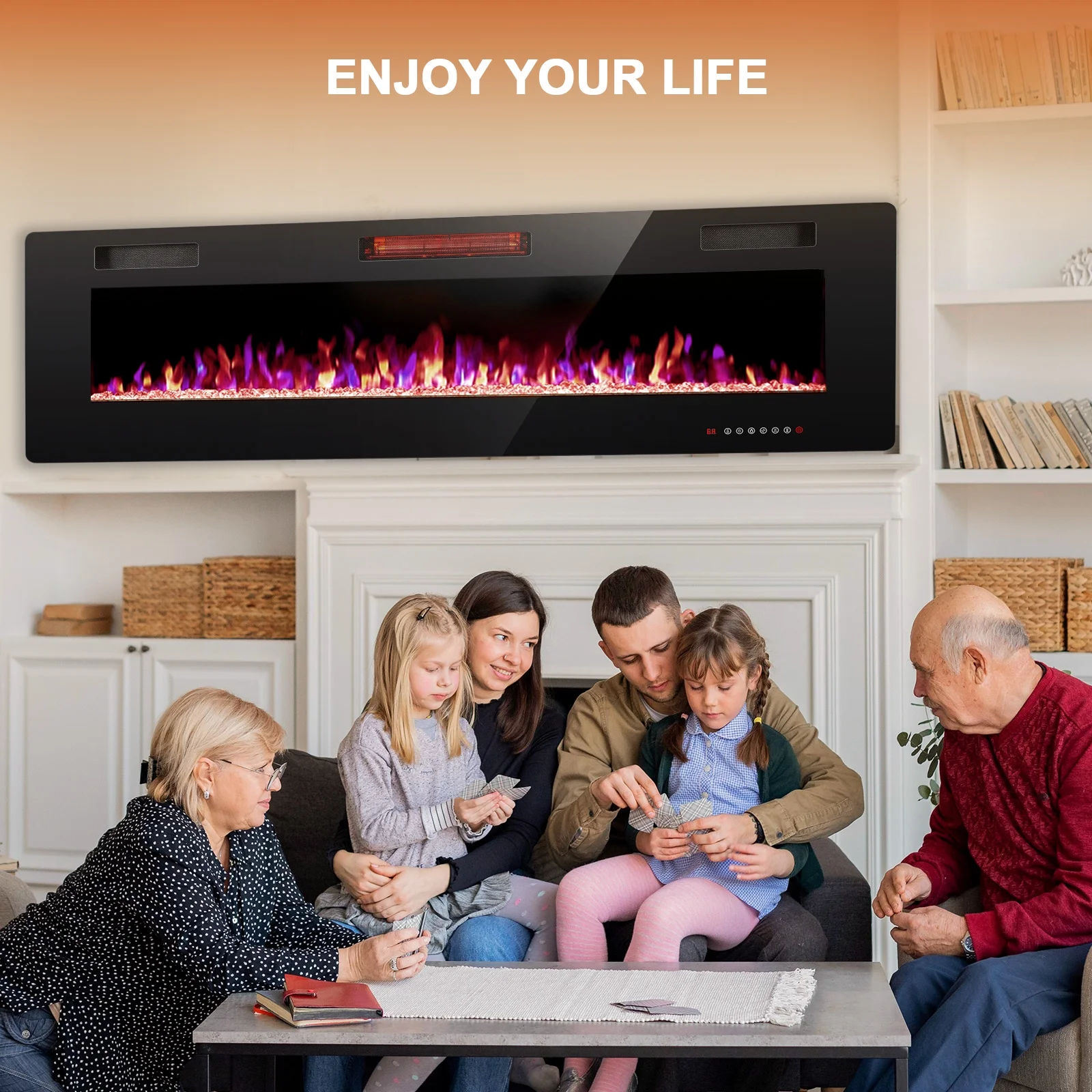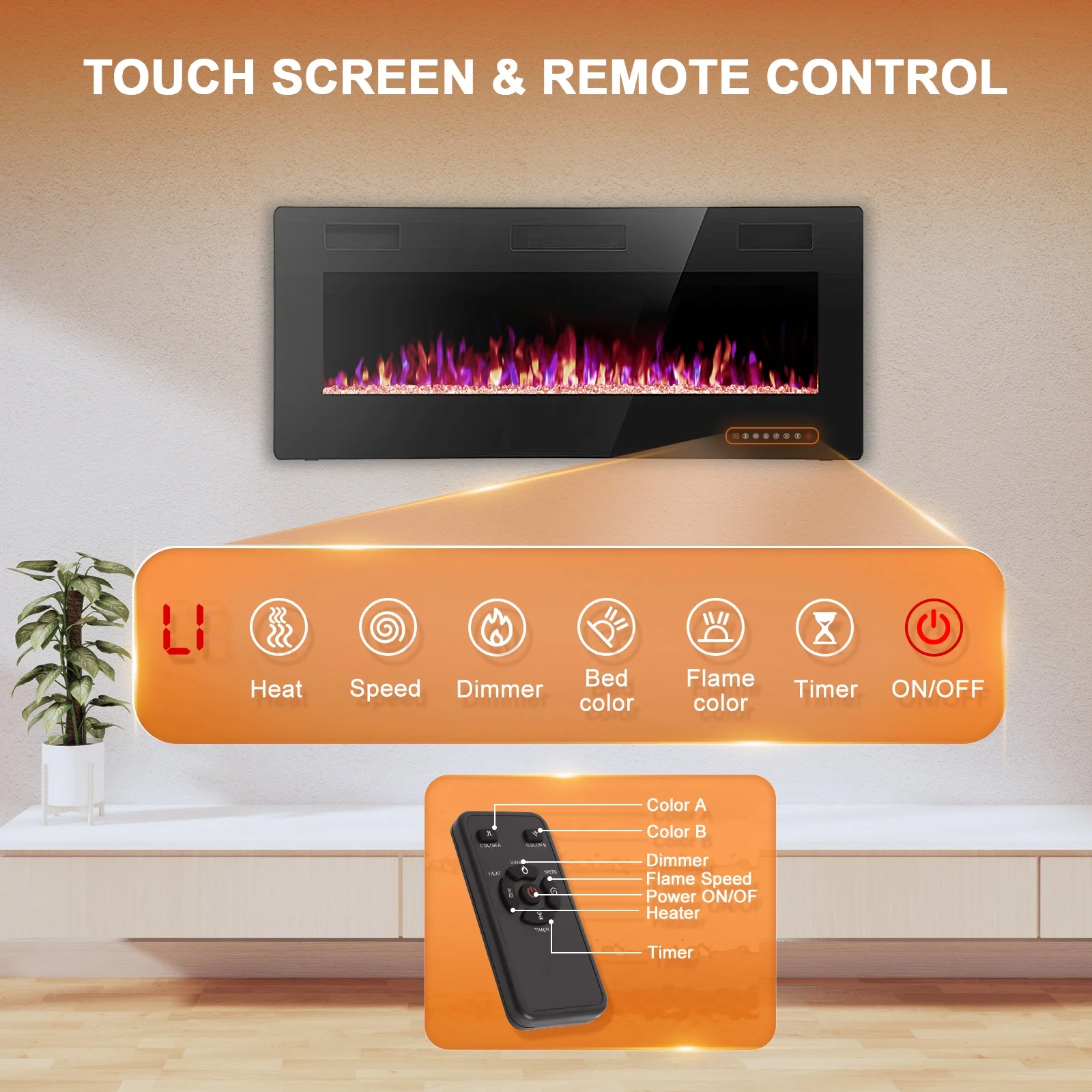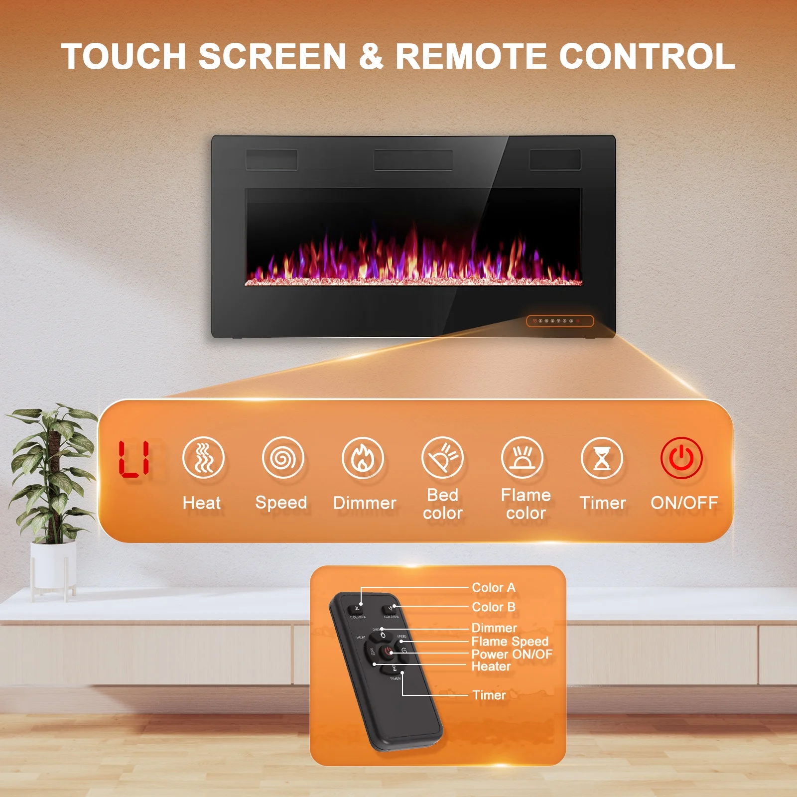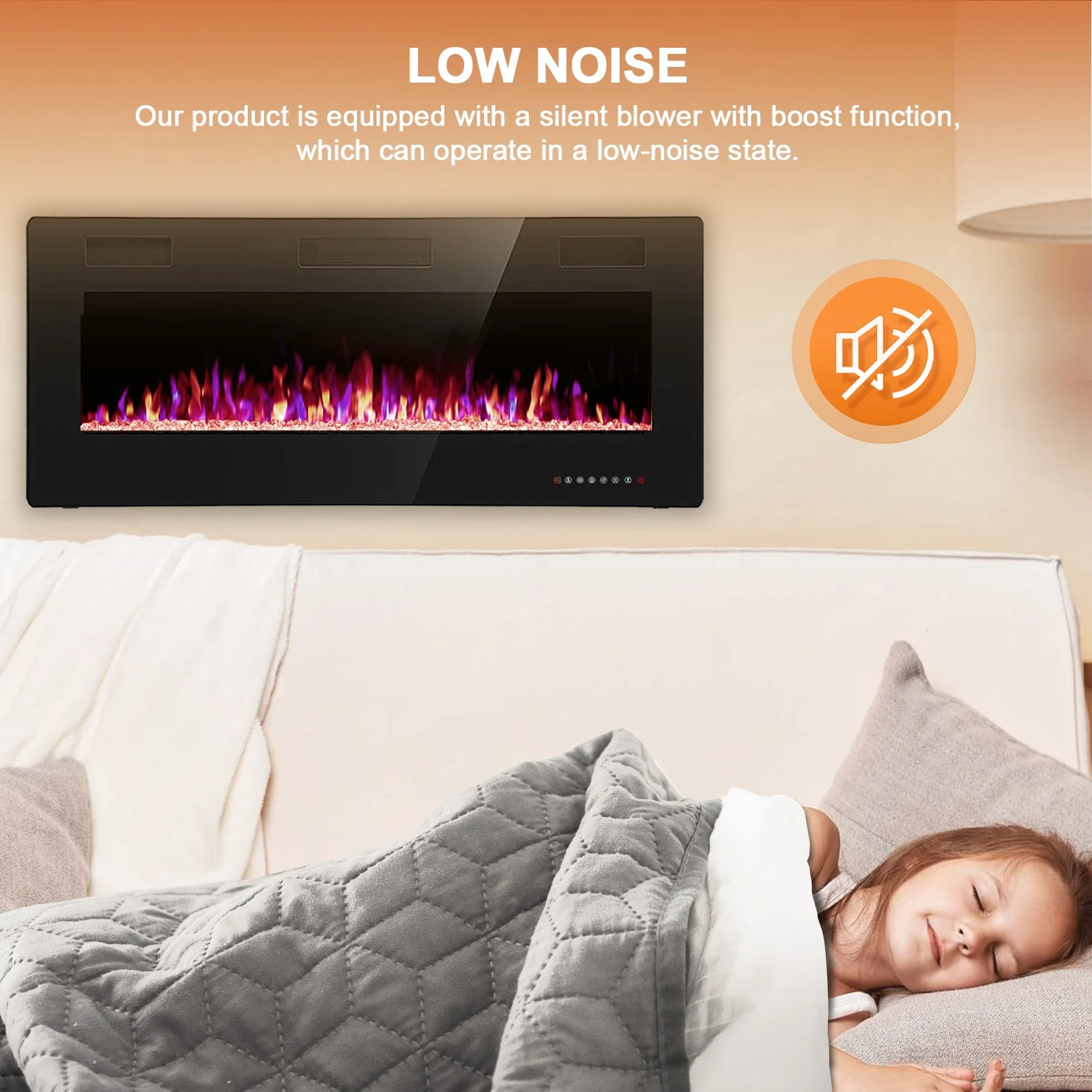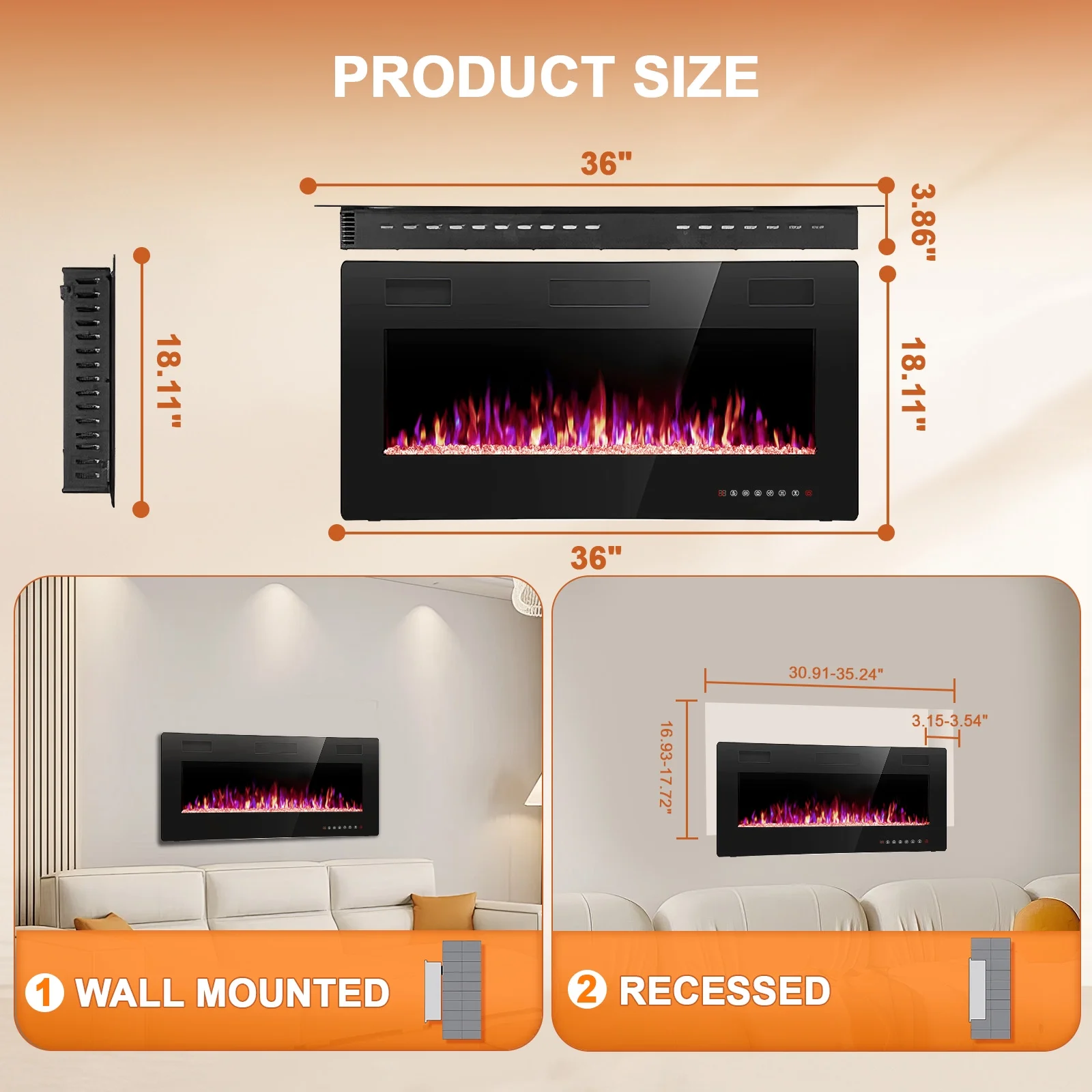 The 5th flame brightness level allows you to control the changes of light and shadow at will. Equipped with a remote control, you can easily operate on the sofa. ETL certification and overheating protection ensure safe use. Black glass appearance with timer function adds modern beauty and convenience to the home.