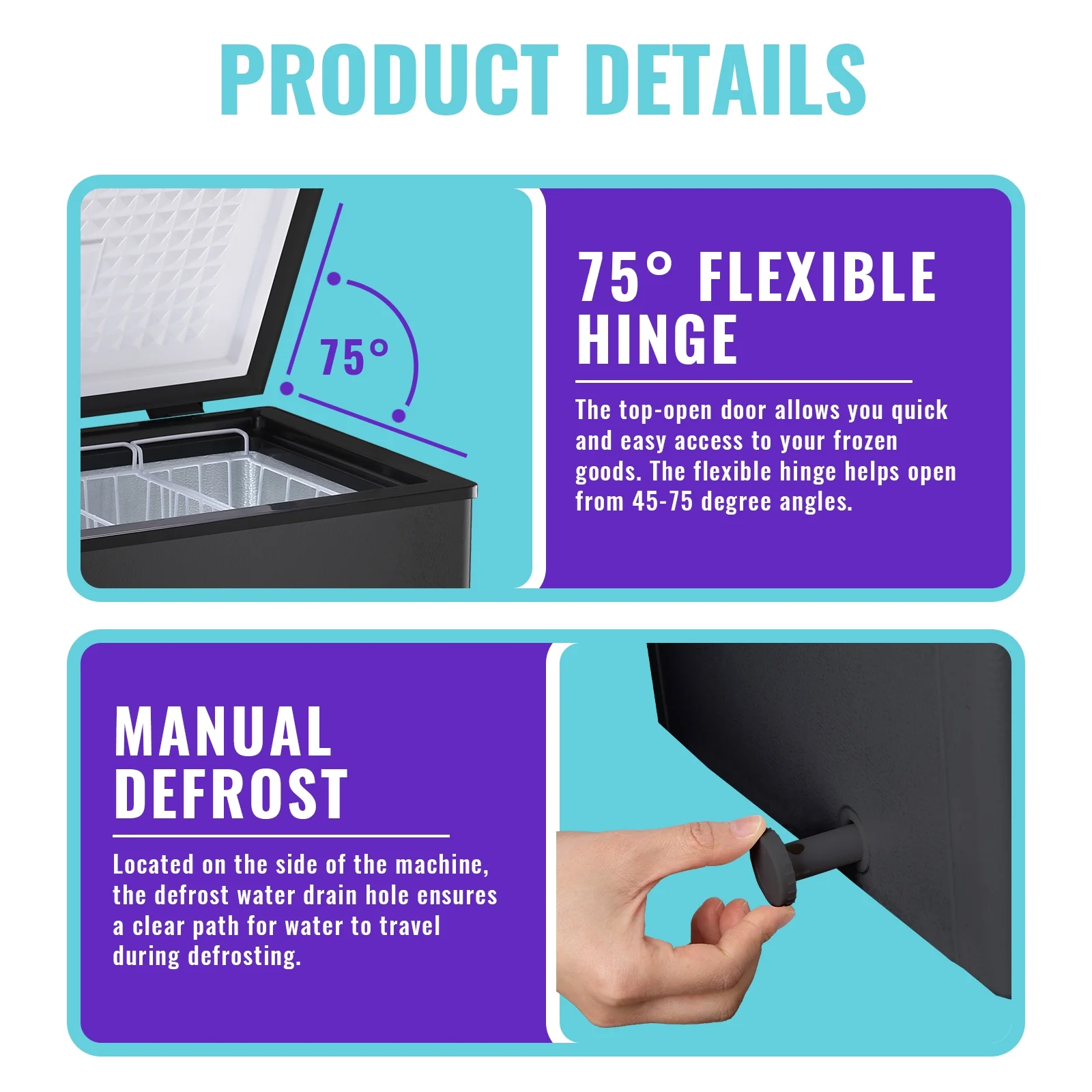 - ??[Efficient Refrigeration System] Using R600a compressor, built in D-shaped cooling tube, ensuring a 360 �� cooling no dead angle inside the freezer. No temperature difference inside the freezer. Don't worry about food preservation! The freezer only needs 0.47 KWH of electricity every 24 hours.