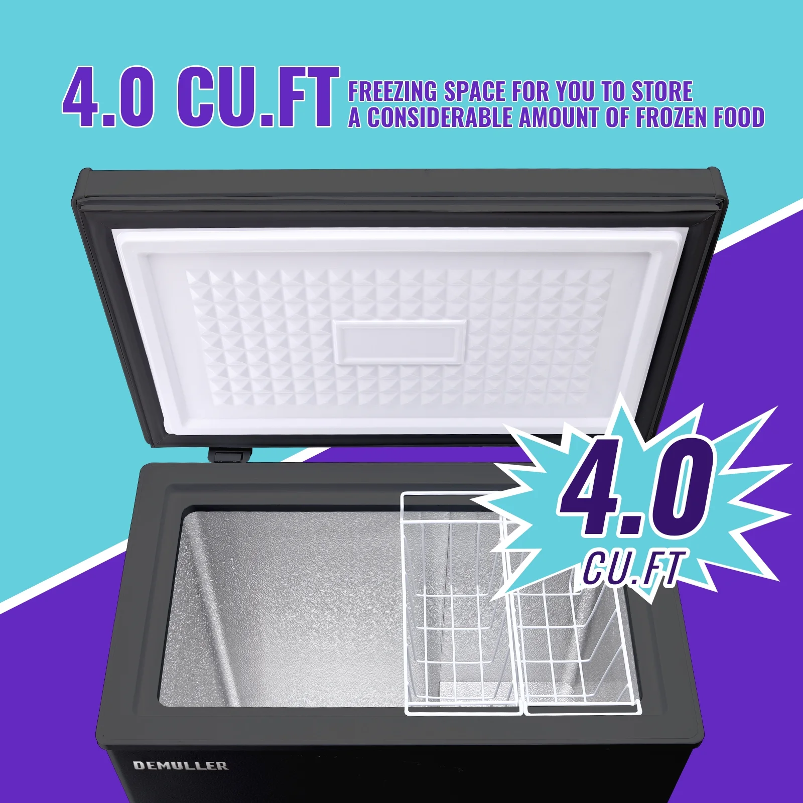 Black 4.0 Cu. Ft capacity provides you with the spacious storage for your frozen food needs. Our chest freezers combines modern style and advanced refrigeration technology, suitable for any home and scene.