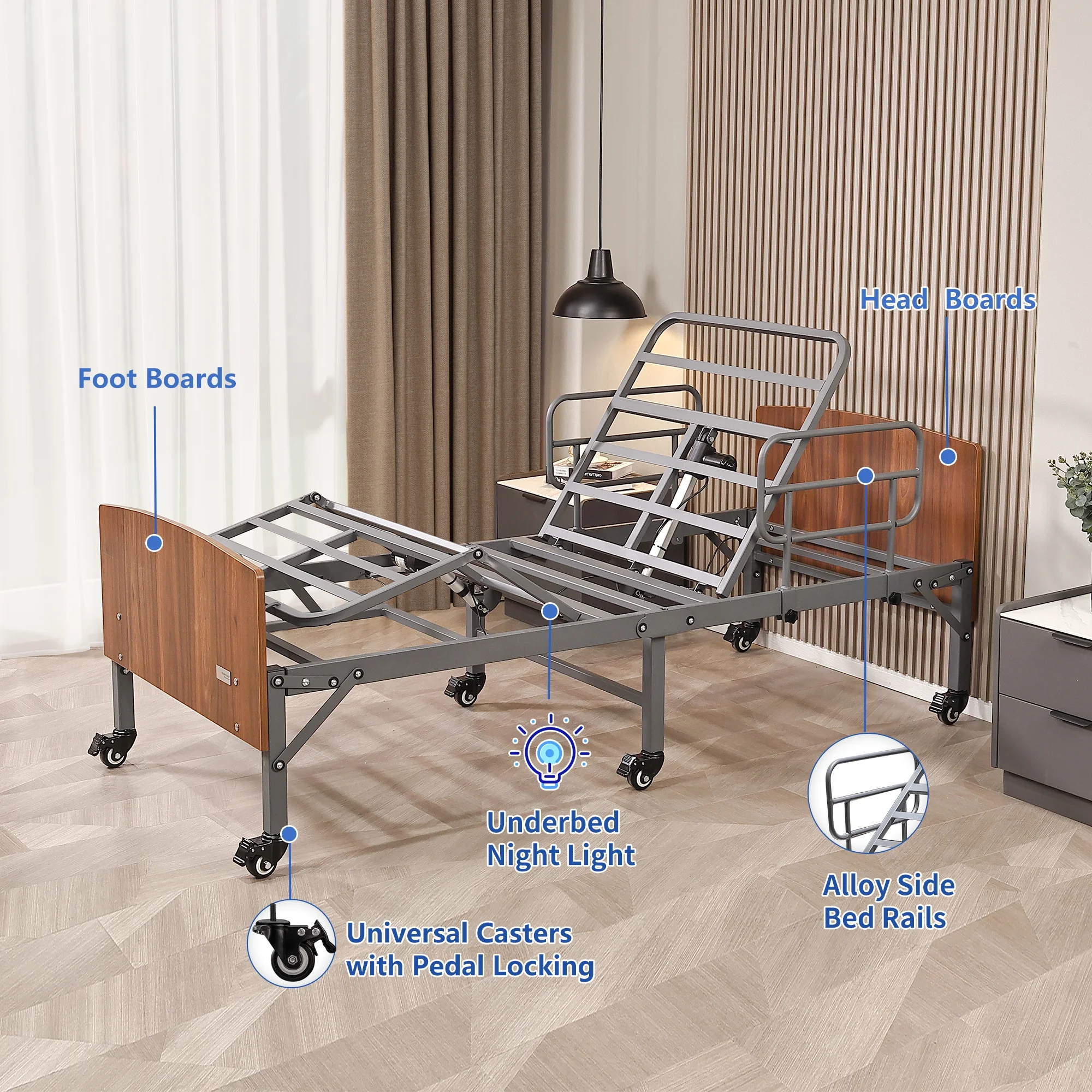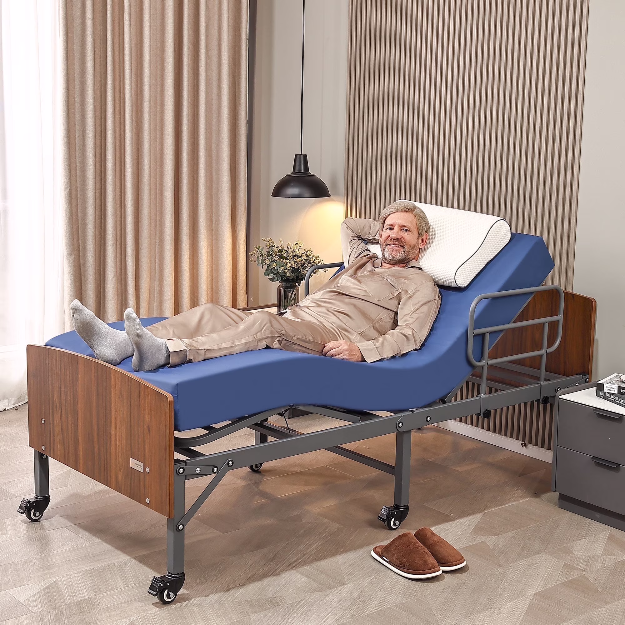- Durable Design with 2.5�� Wheels �C Equipped with grab rails, under-bed night light, and adjustable legs with 2.5��wheels for easy mobility. Designed to offer superior nursing support and make daily activities more convenient.