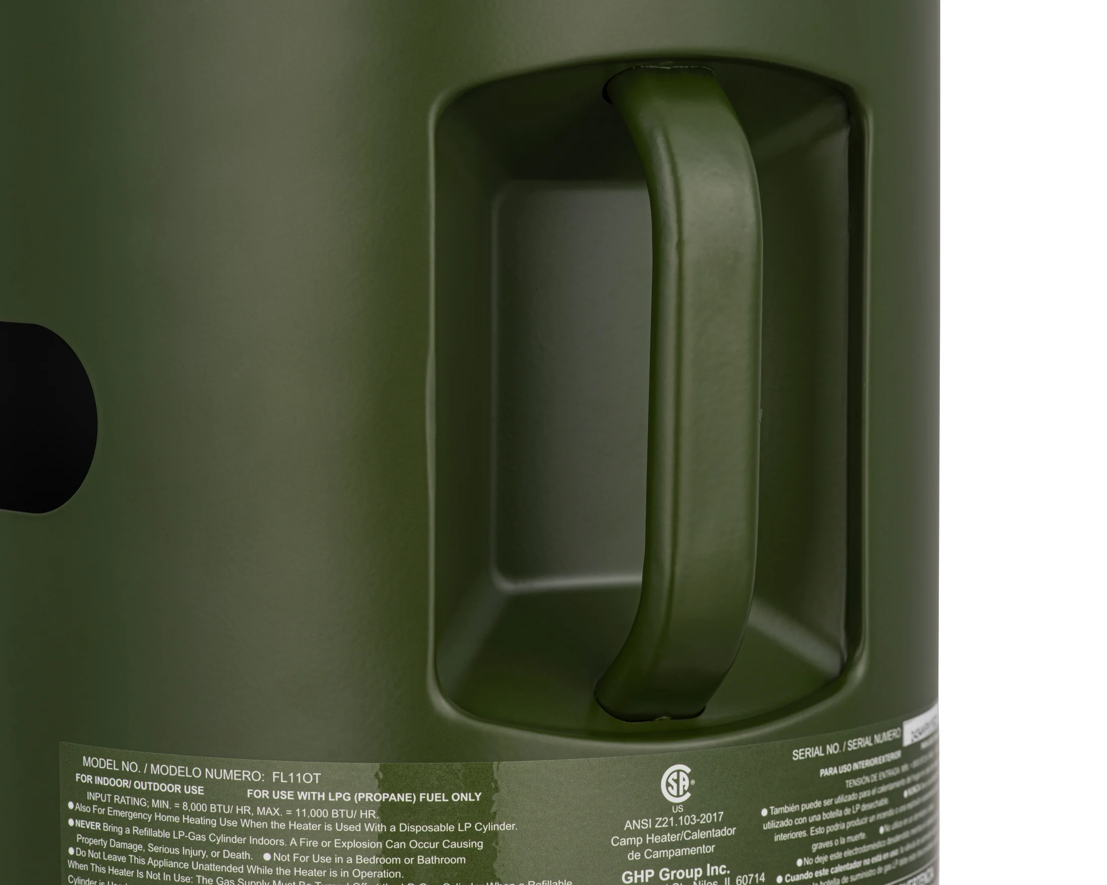 - Tip-over safety switch shuts off propane heater if unit is knocked over