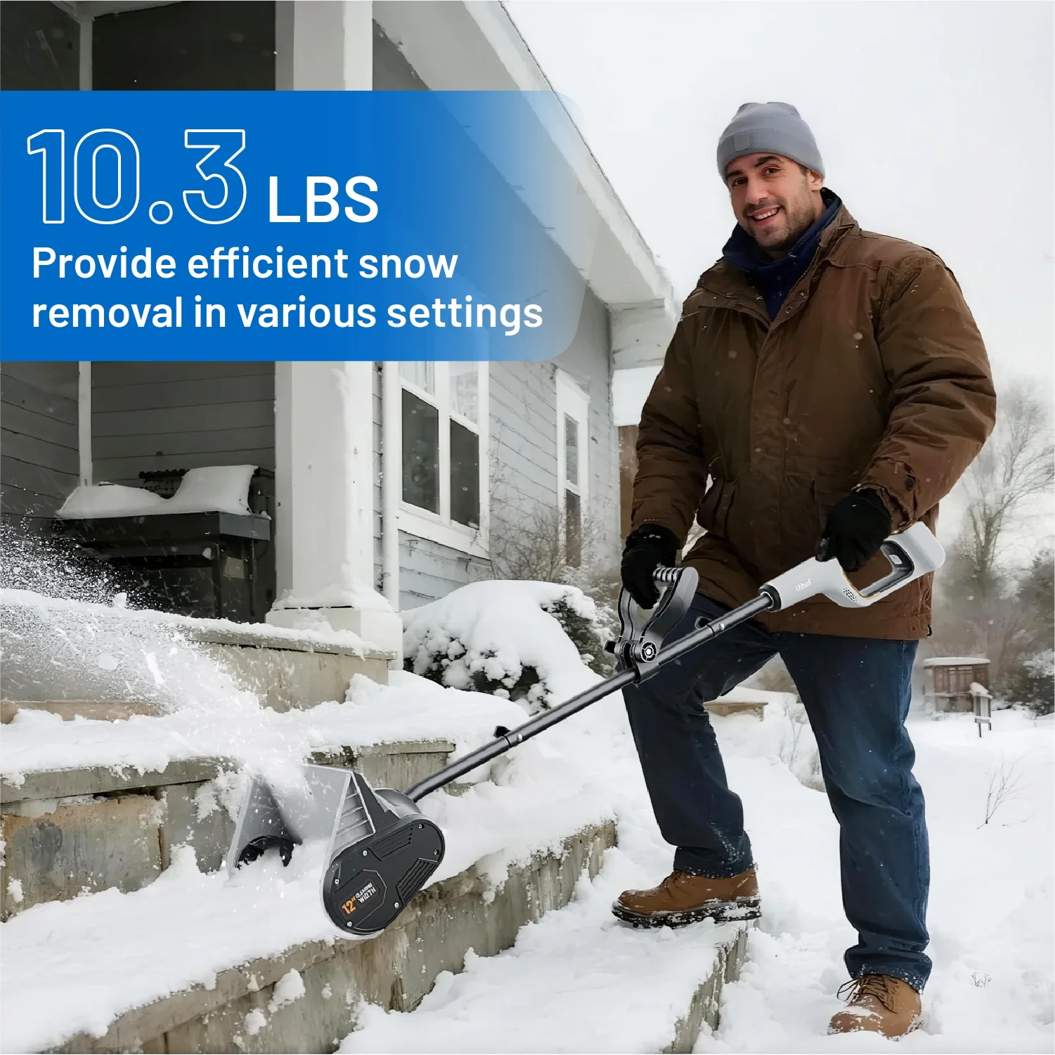 ��Lightweight & Maneuverability��The weight of 10.3 lbs (4.7 kg) enables it easily clears driveways, walkways, and tight spaces. Offers homeowners reliable, user-focused snow removal.