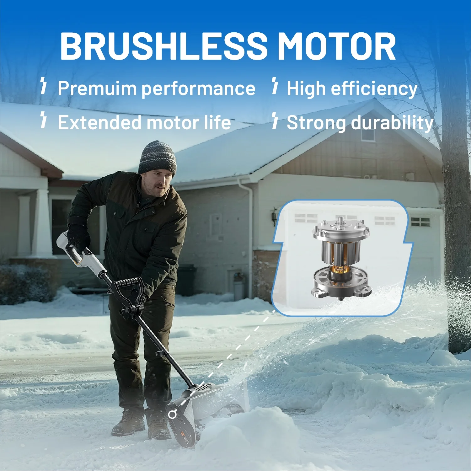 ��Powerful Brushless Motor��Provides powerful, quiet operation with minimal maintenance. Reduces physical strain for quicker snow removal versus traditional ones.