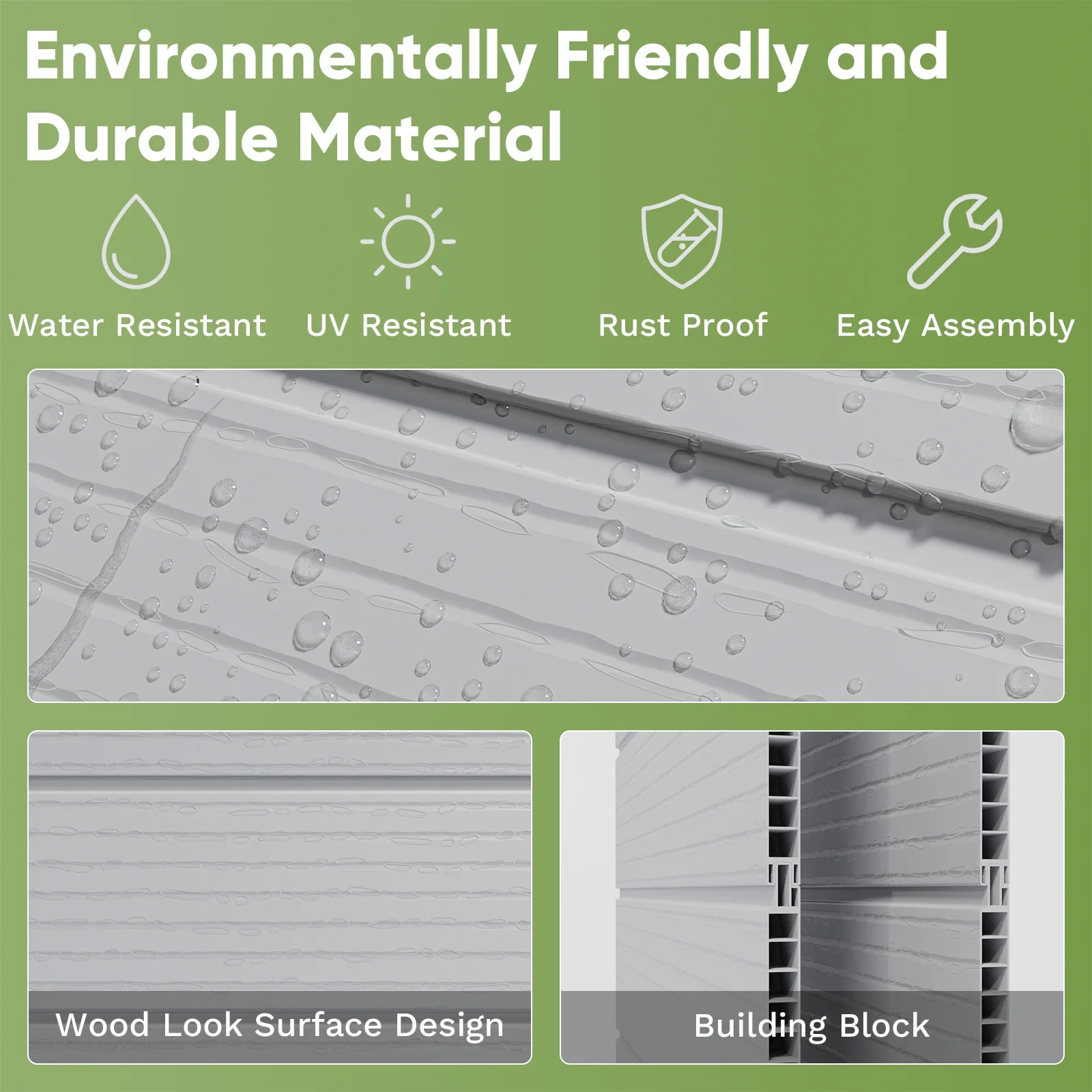 - Decorate Your Yard: Featuring a neutral color palette and a sleek, modern design, this storage shed seamlessly blends into any outdoor setting. Whether placed in your backyard, patio, or garden, it enhances the aesthetic appeal while serving its practical purpose.