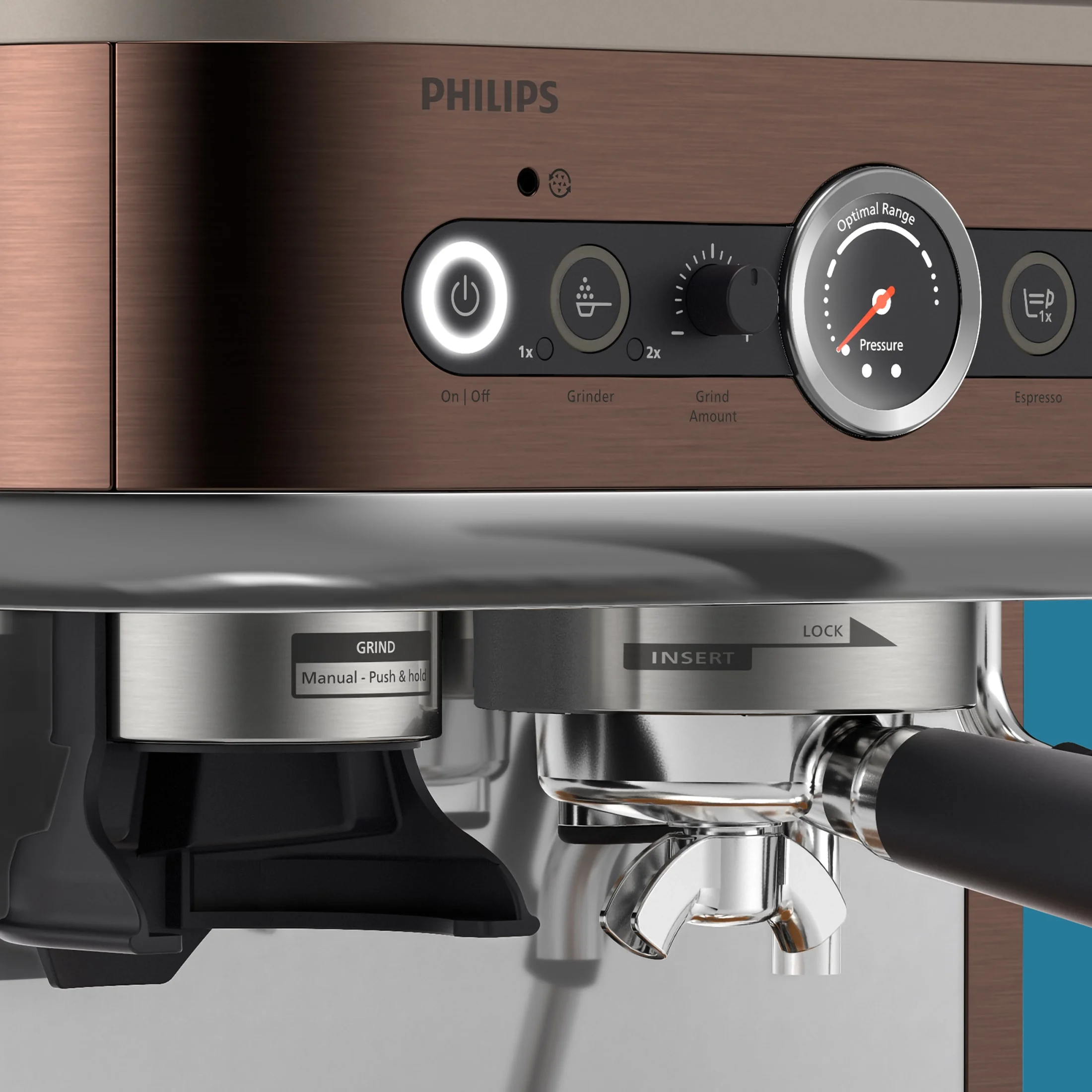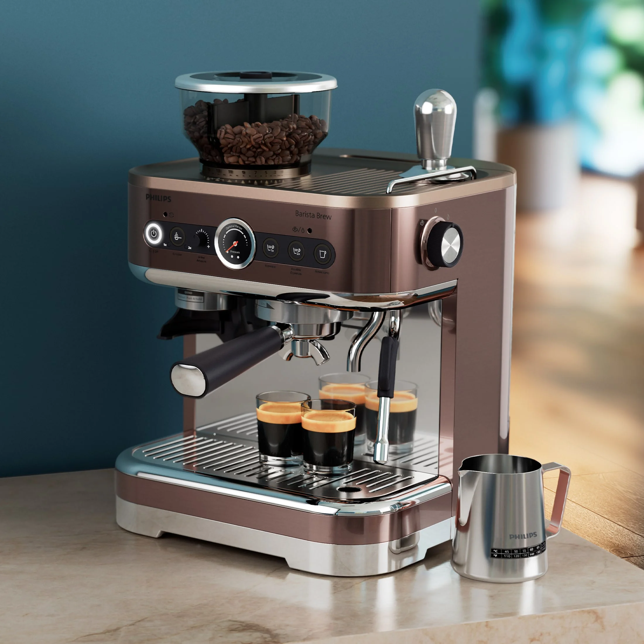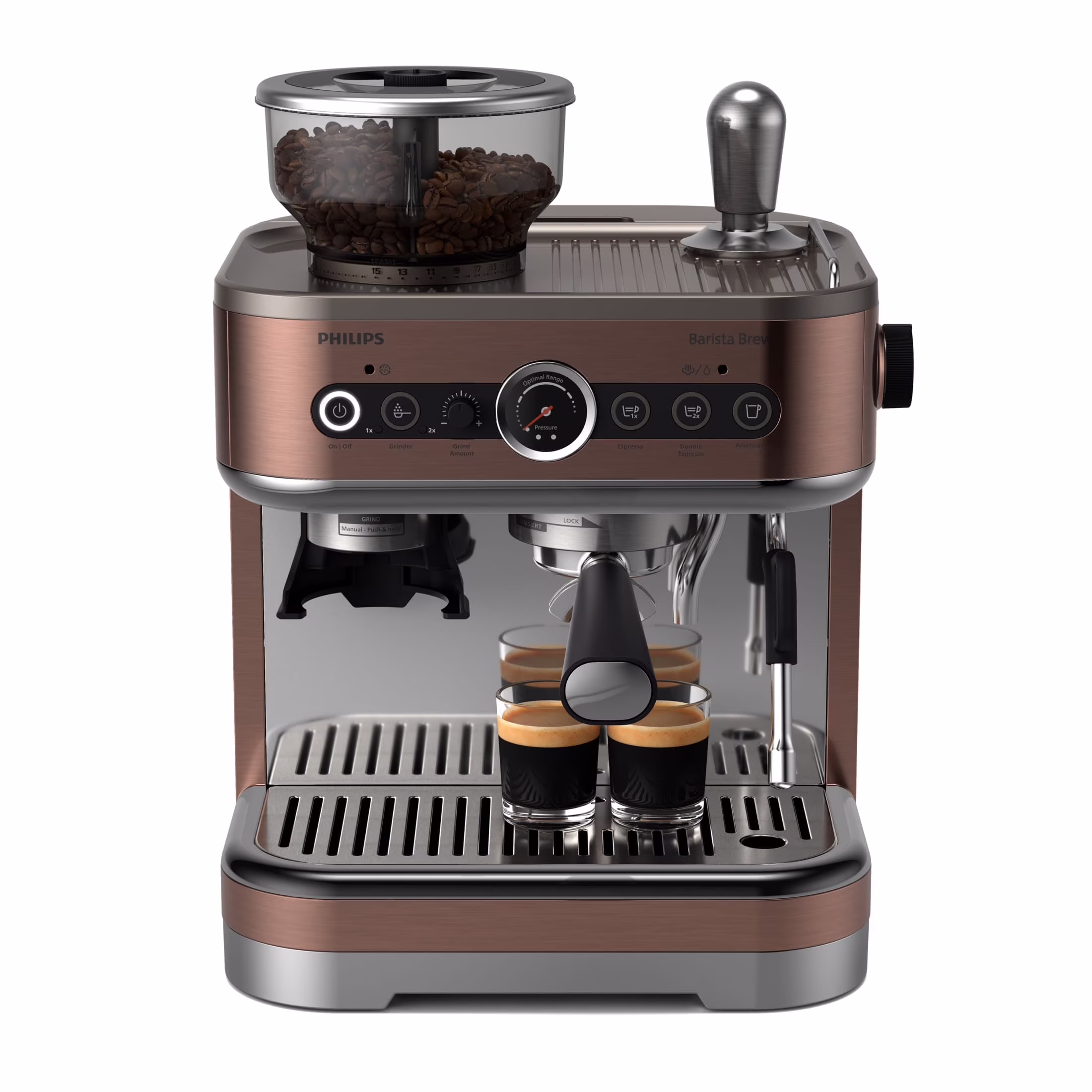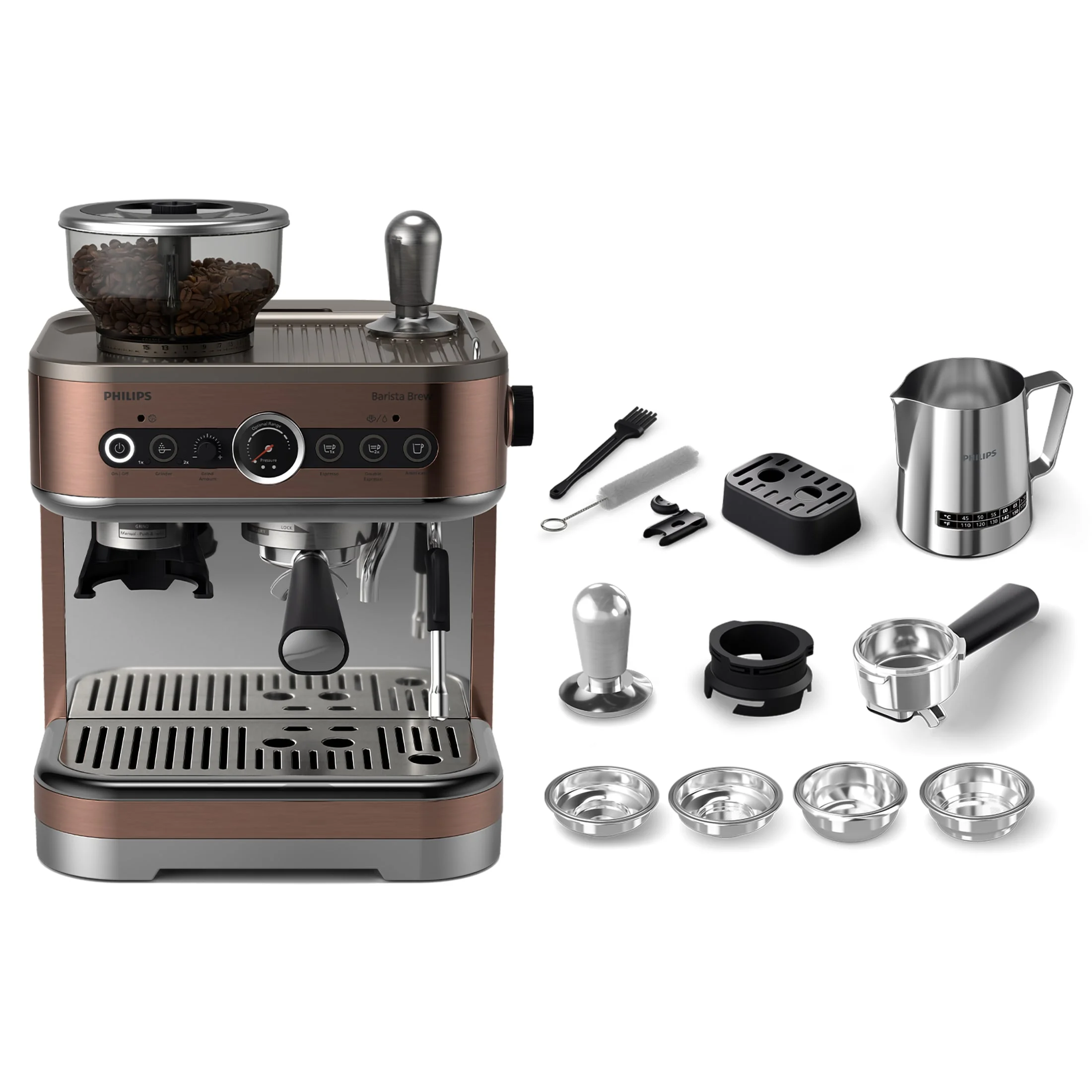 - BREW LIKE A BARISTA: The Philips Barista Brew Espresso Machine empowers coffee enthusiasts to create barista-quality brews with tools like the 58mm portafilter and single & dual walled filter baskets.