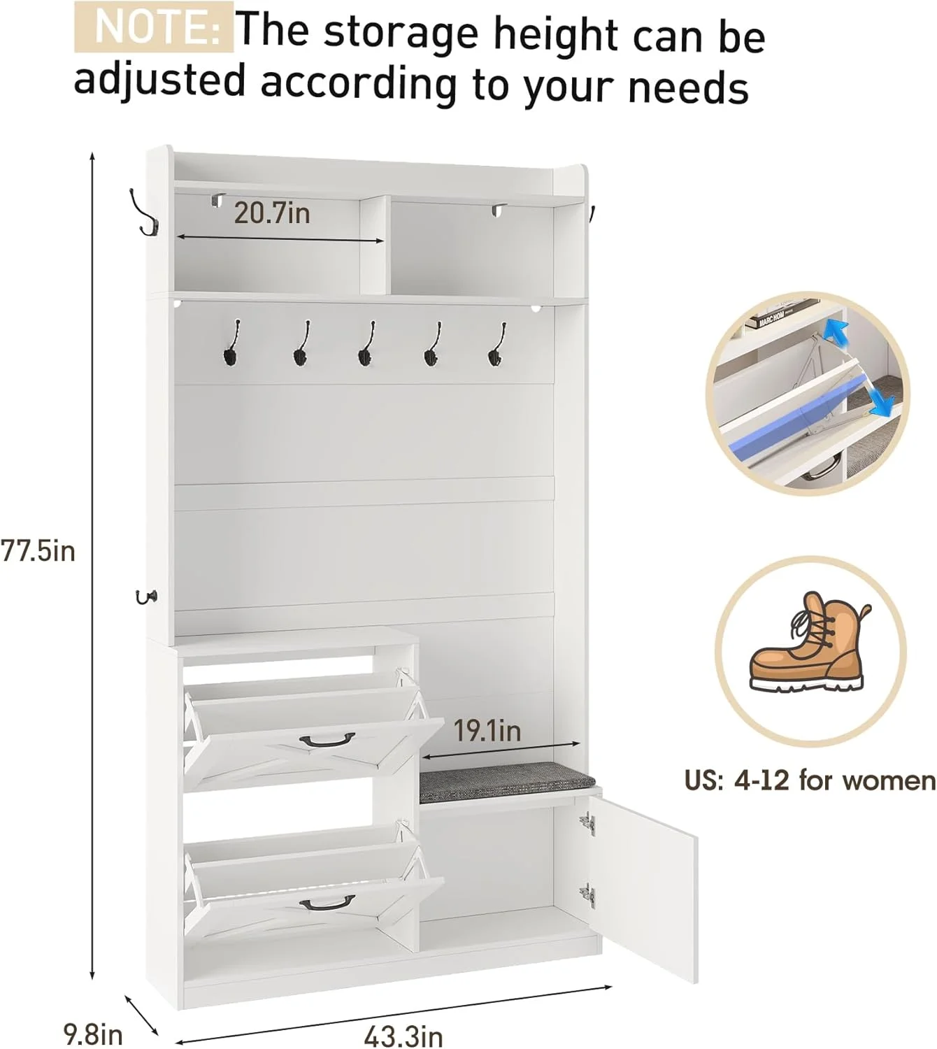 The hall tree has two flip drawers with adjustable dividers for shoes, nine hooks for bags and coats, and closed storage to keep mail dust-free. The top open compartments are perfect for decor or plants. - ??��Sturdy And Durable��
