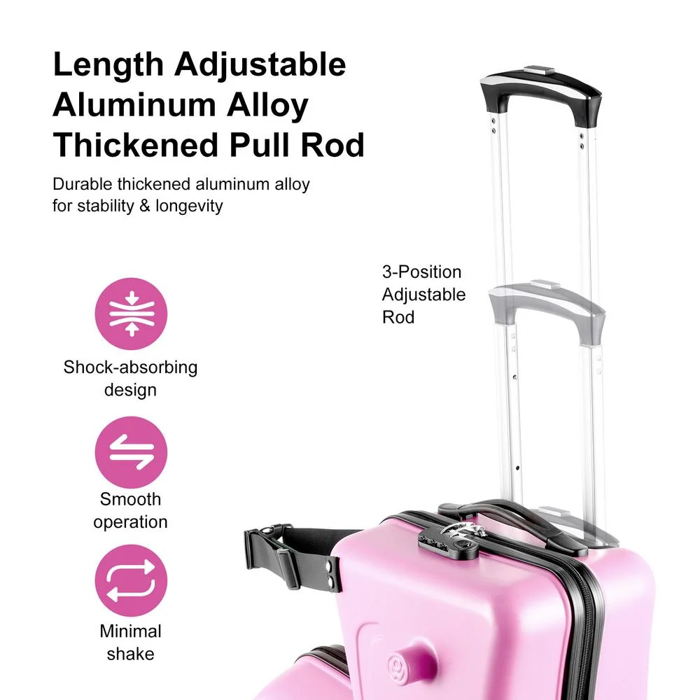 - Novel L-shaped Design: Embark on an enjoyable adventure with your children using our ride-on kids luggage with an L-shaped design. Equipped with safety belts, handlebars, and pedals, it reduces their fatigue and ensures safety when going out. An ideal companion for family travels