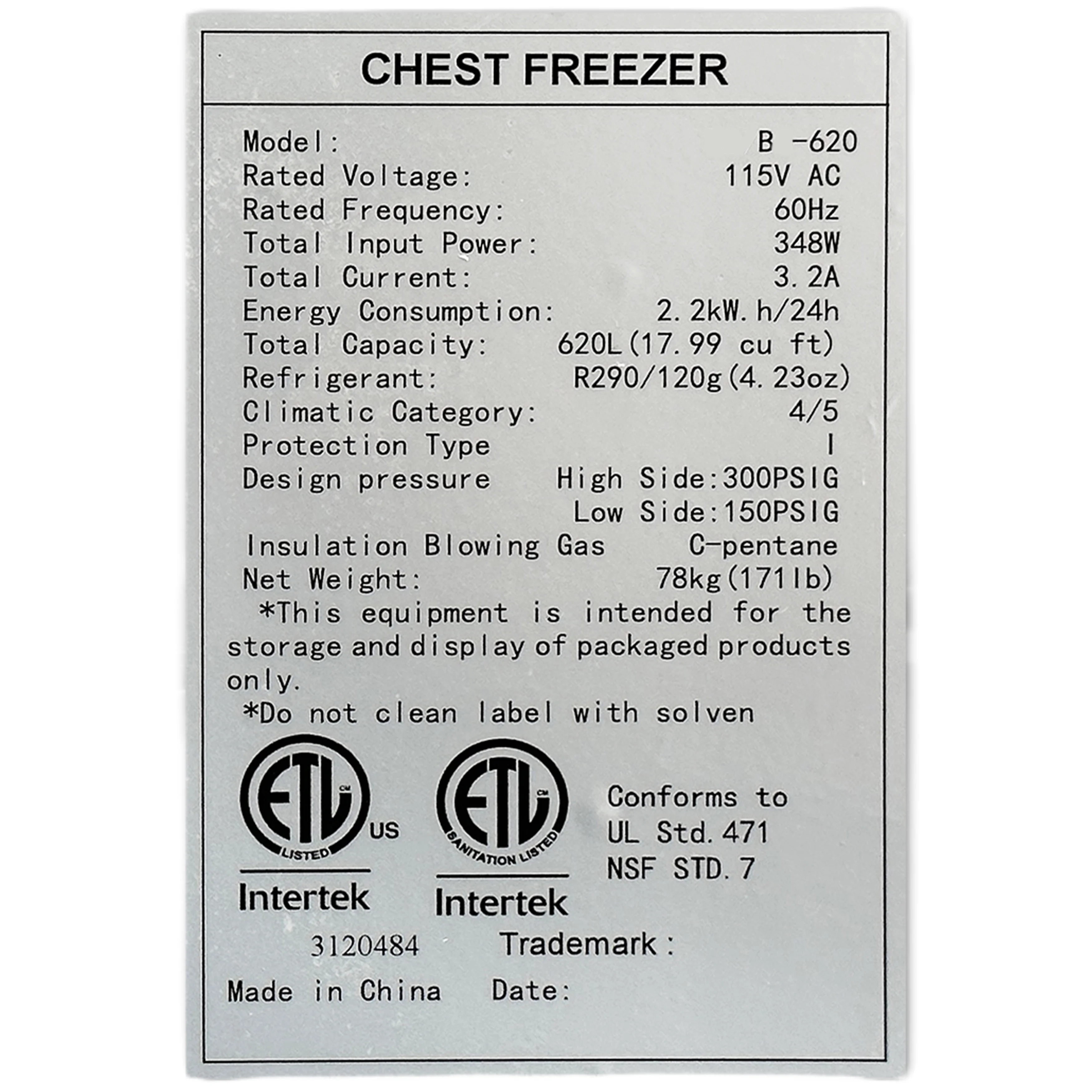 - Certifications & Safety ETL Listed & ETL Sanitation Listed. Conforms to UL Std. 471 and NSF Std. 7 for commercial use. Insulation Blowing Gas: C-Pentane for superior efficiency.