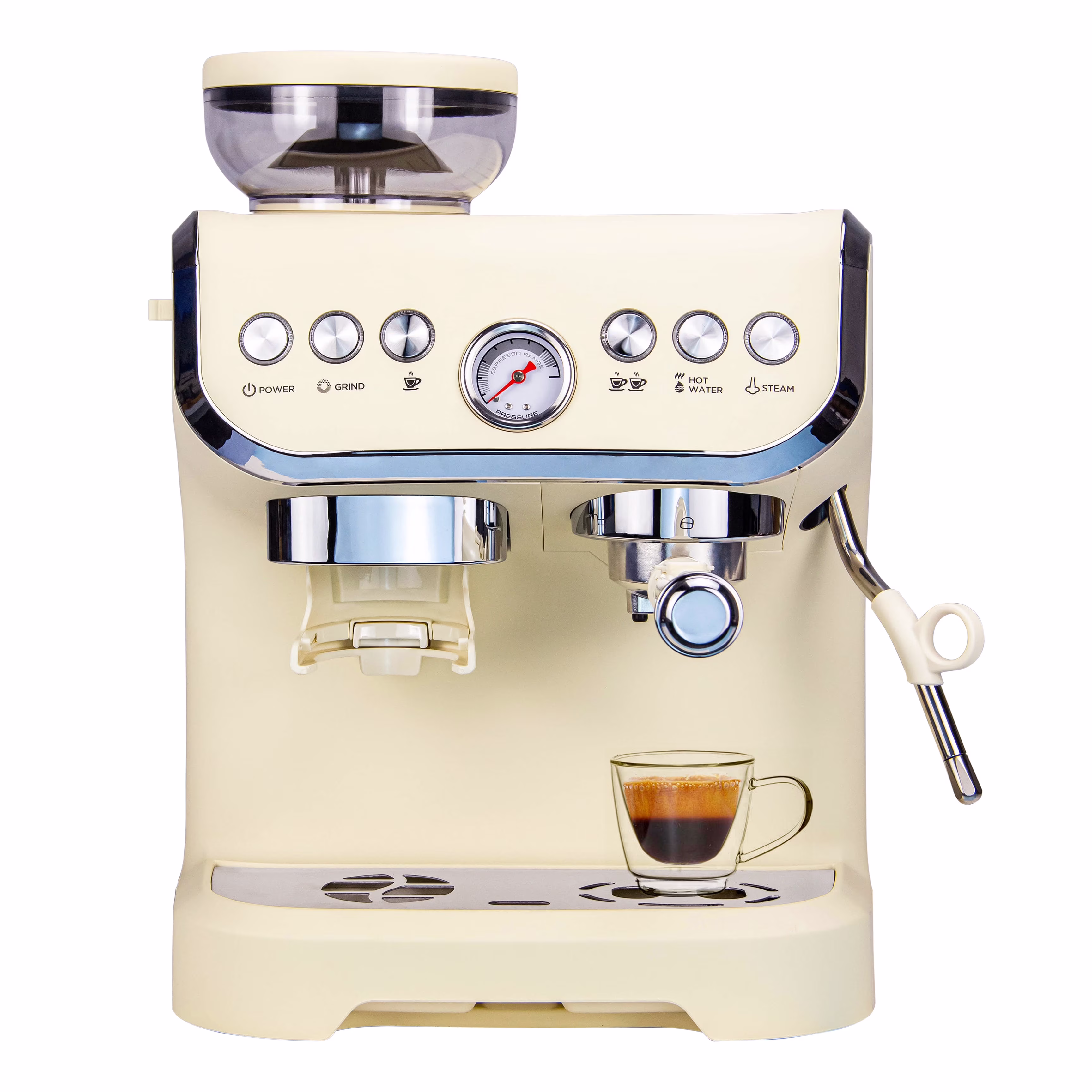 - ��EASY TO USE��This espresso machine offers an all in one espresso machine with an integrated grinder, has a power of 1450W, which can convert coffee beans into espresso in just one minute. And the latte maker cappuccino machine has 15 precision grinds to adjust, a manual removable magnetic tamper, and an extractable feedback pressure gauge. The entire coffee machine only requires simple button control.