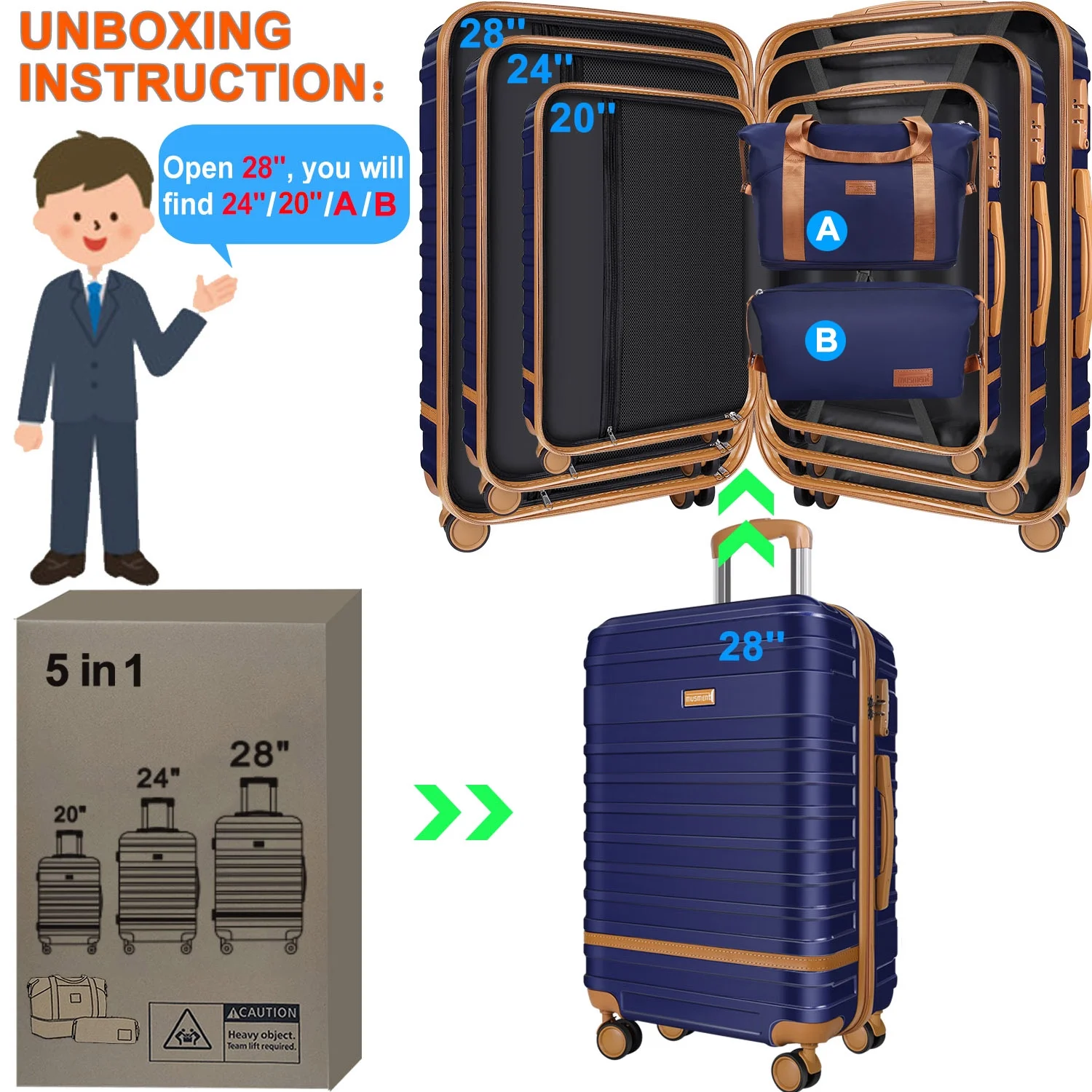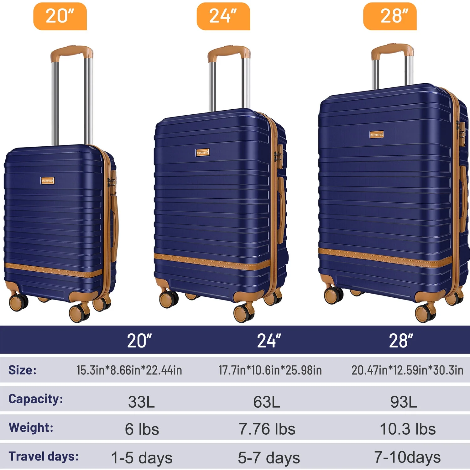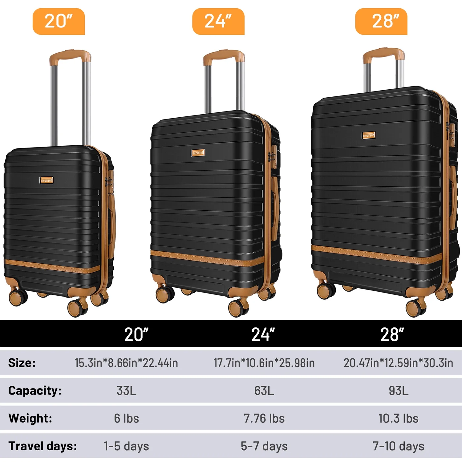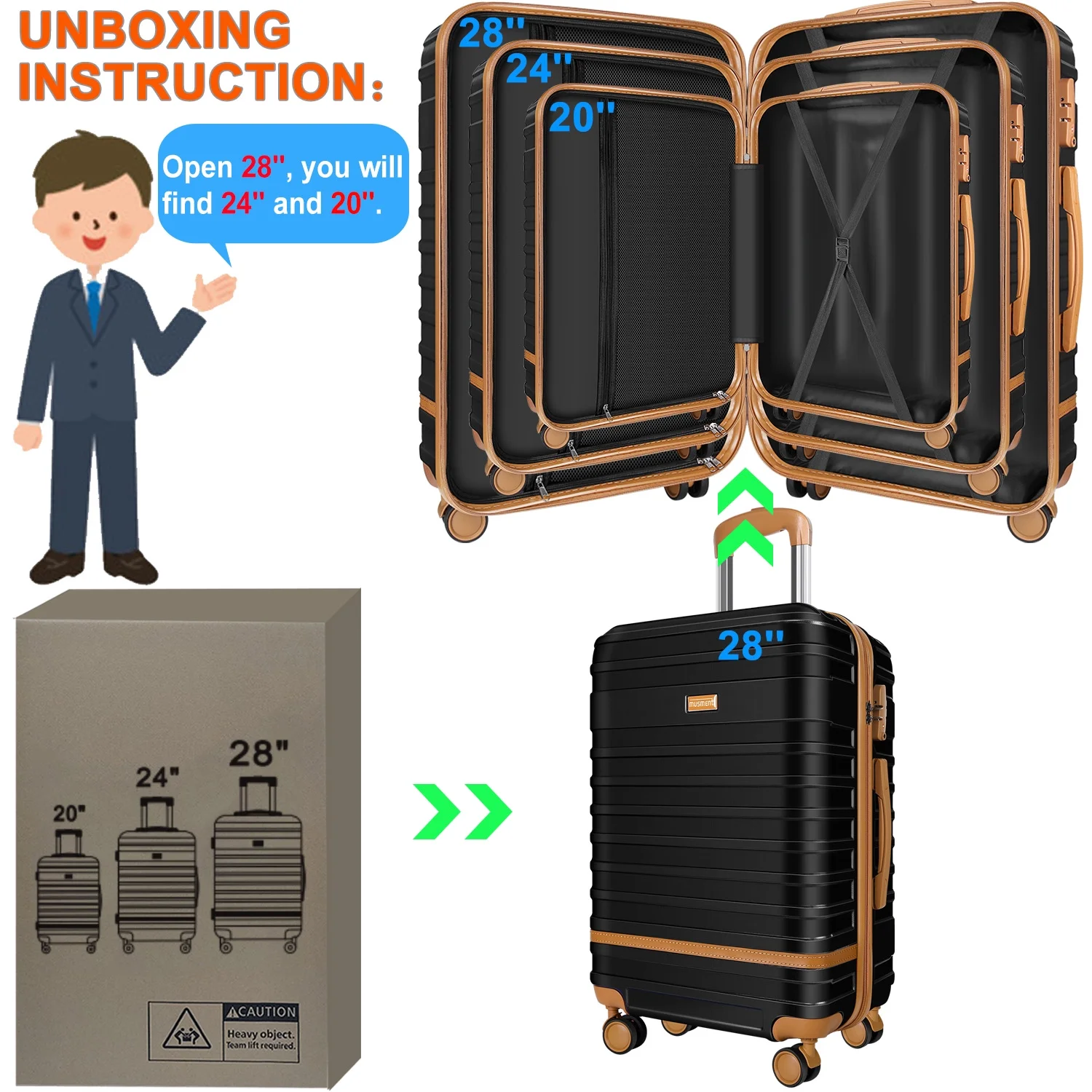 - ?? [3 Piece Luggage set] Set includes 20" carry on (Meets carry-on size restrictions for those traveling domestically and looking to stay light) and 24"/28" spinners (Maximize your packing power and the ideal checked bags for longer trips). Each set is shipped with each suitcase inside one another to save space for your convenience.
