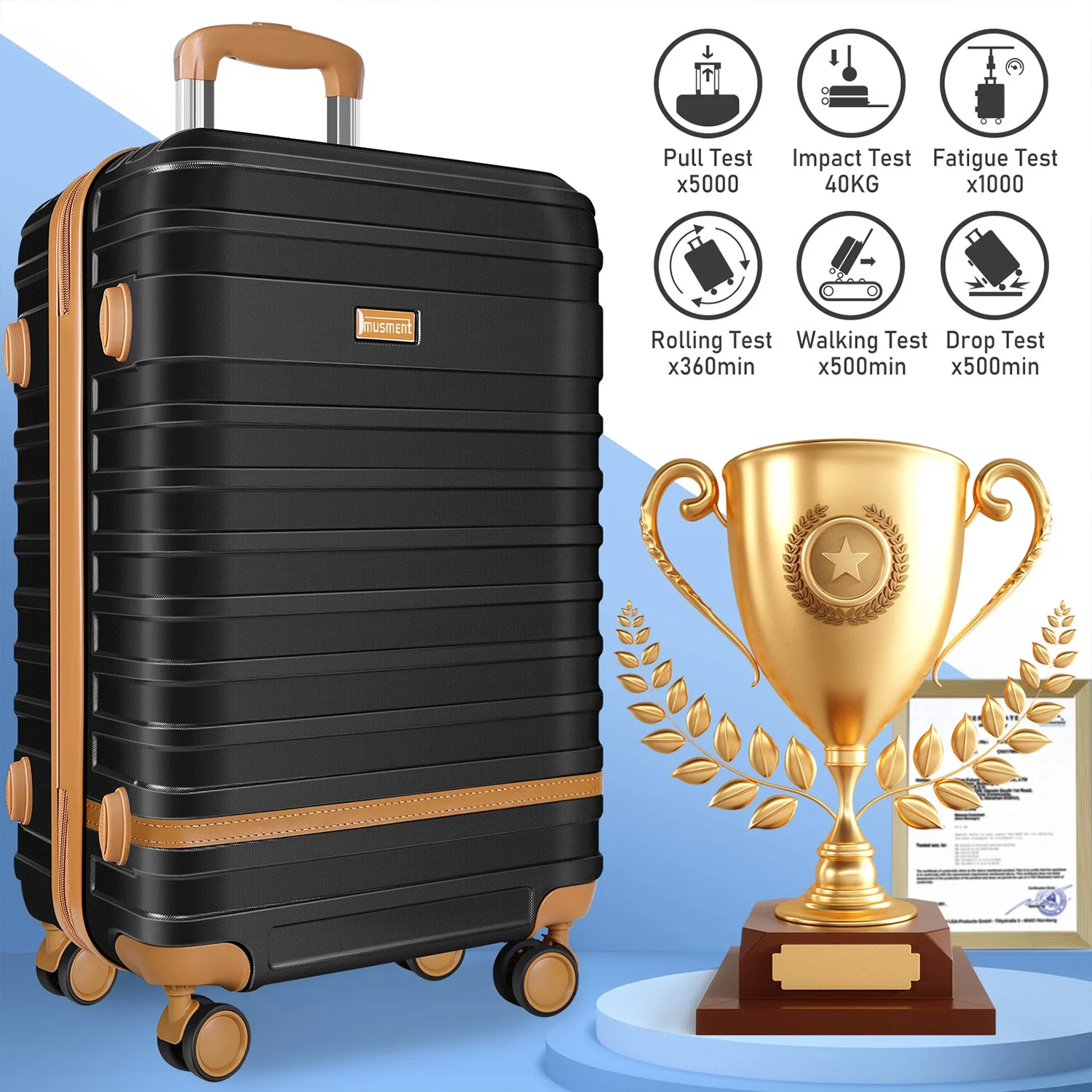 Musment committed to providing high quality and affordable luggage sets and Satisfy customers service, Professional fashion designs and bright colors make suitcase stand out in the crowd. Durable lightweight, and water-resistant ABS hardside shell, adjust freely handle, smooth 360��double wheels, TSA lock, and large storage space design help you bring easy, convenient and happy travel life.