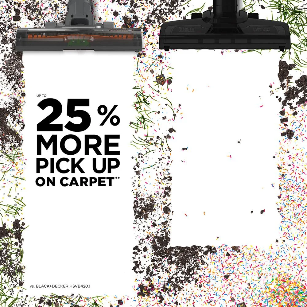 - Up to 25% more pickup on carpet**
