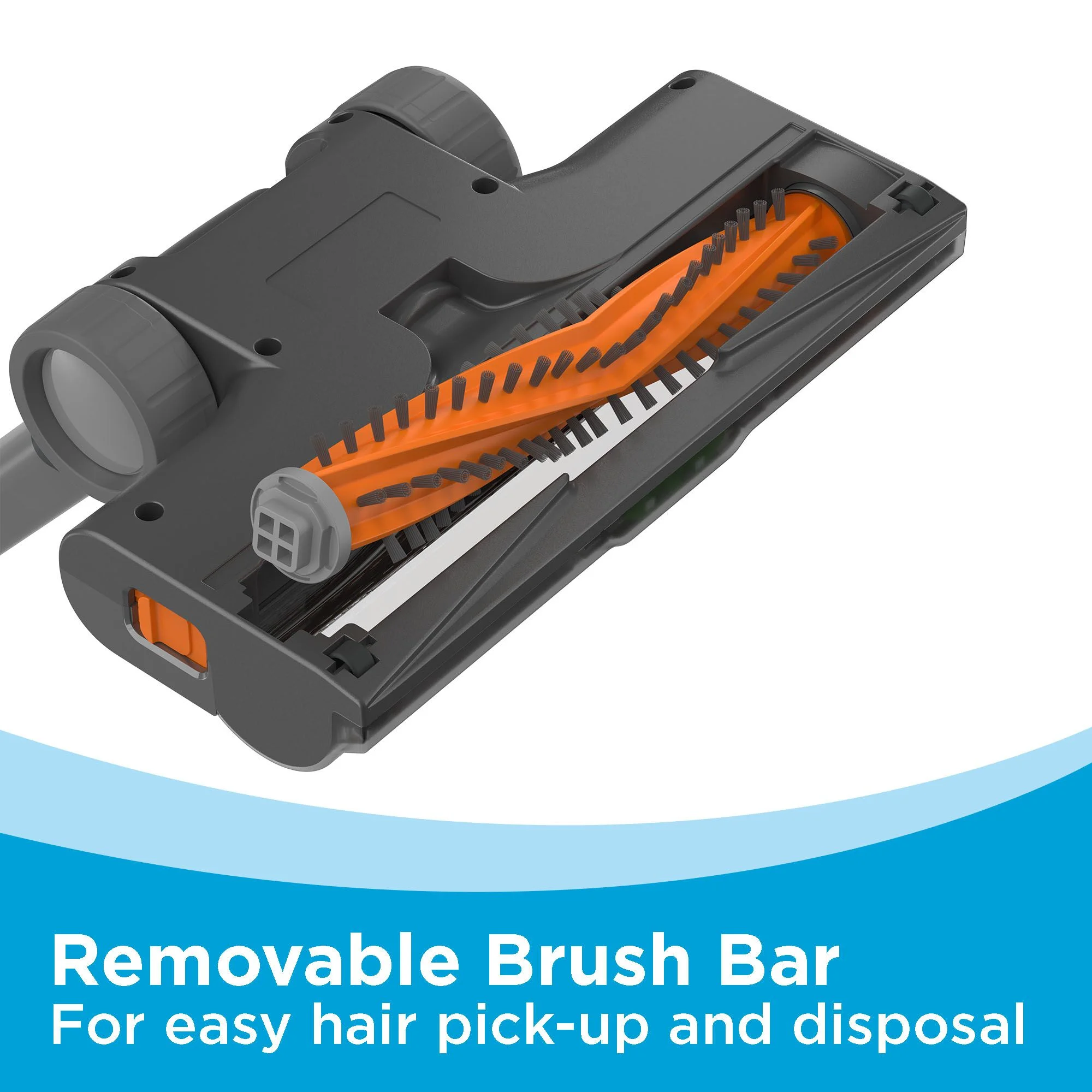 - Anti-tangle brush bar: for easy hair pick-up plus removal