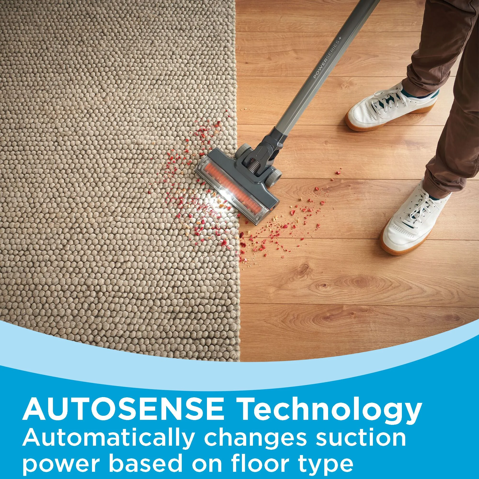 - AUTOSENSE? technology: automatically changes suction power based on floor type, optimizing runtime